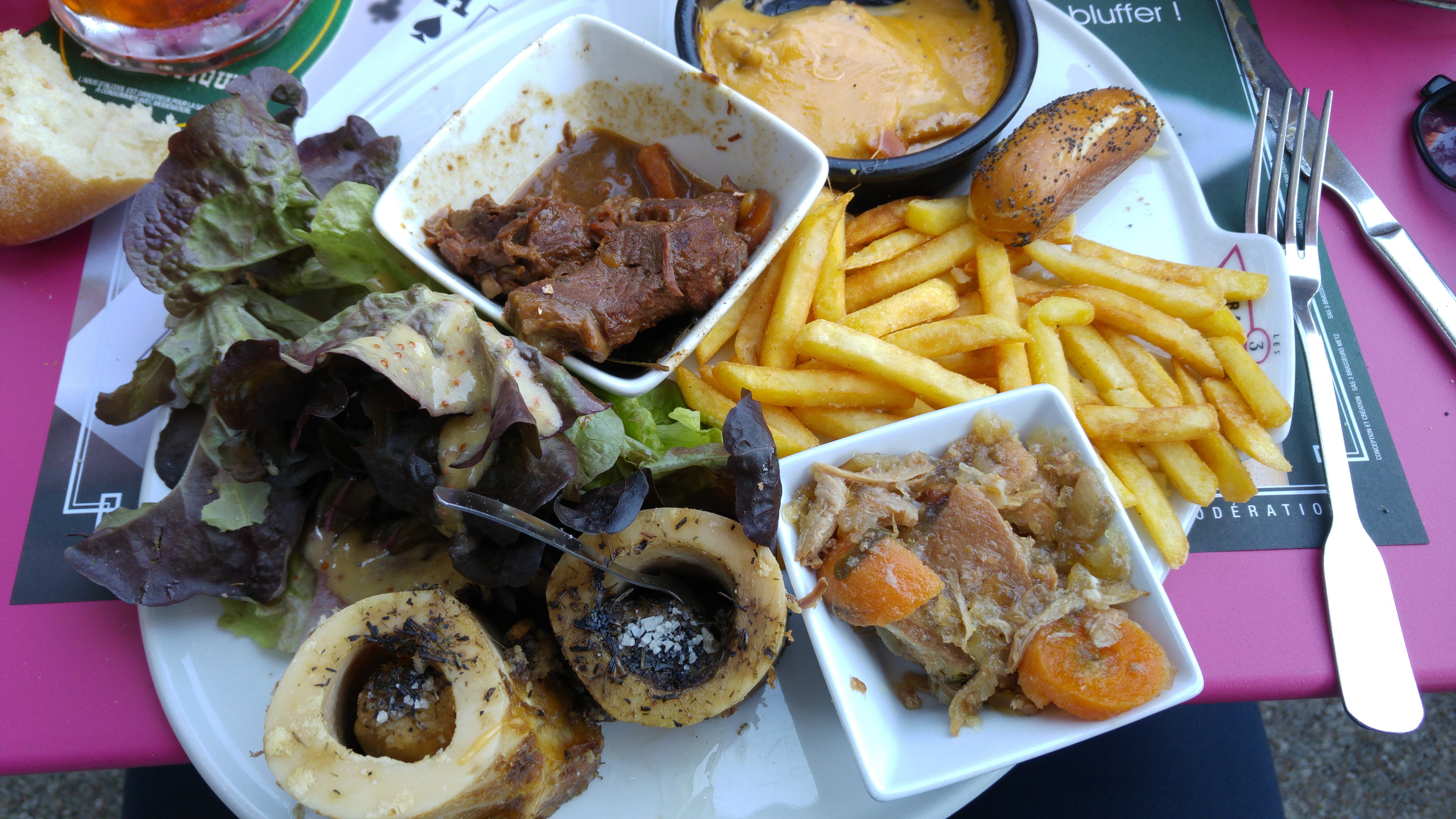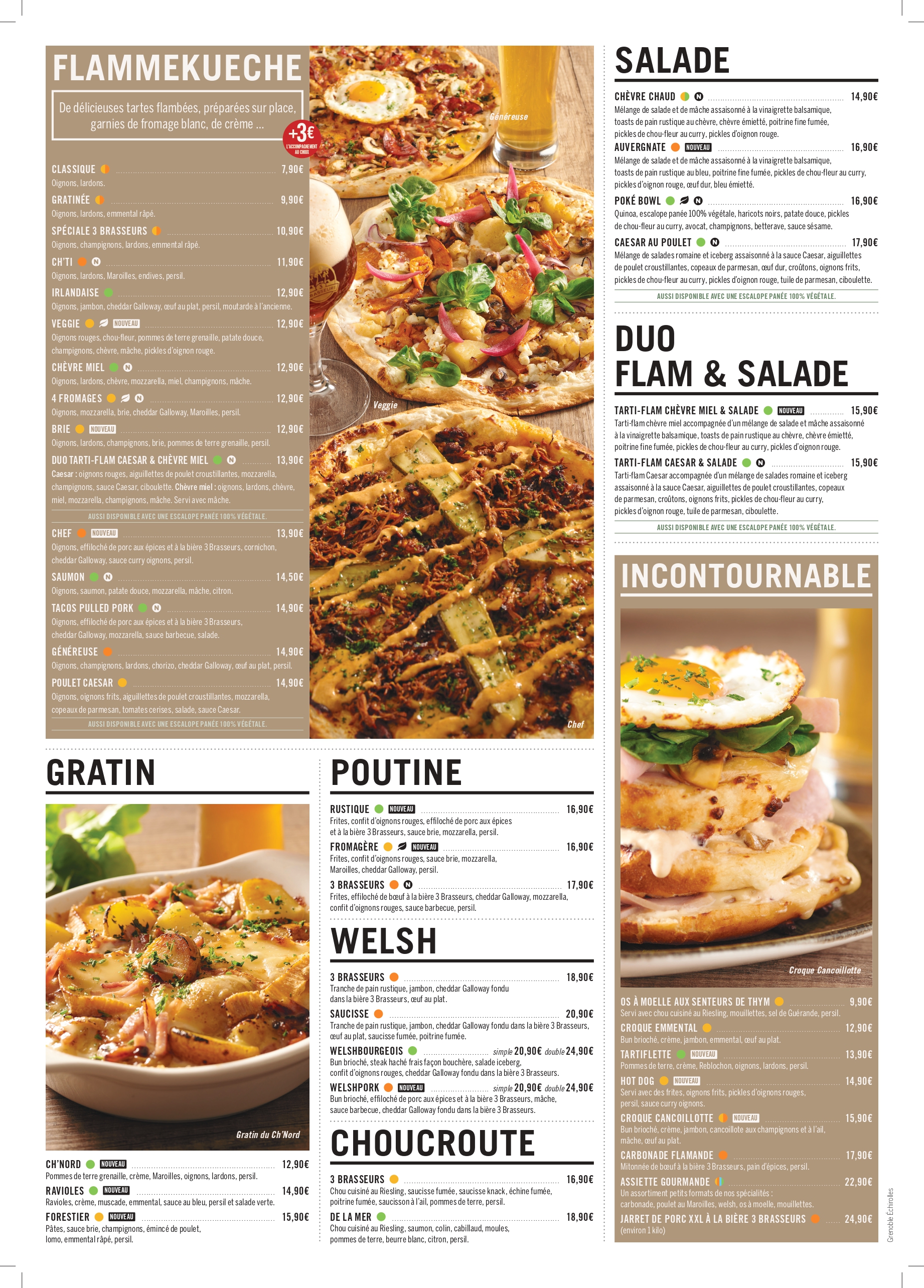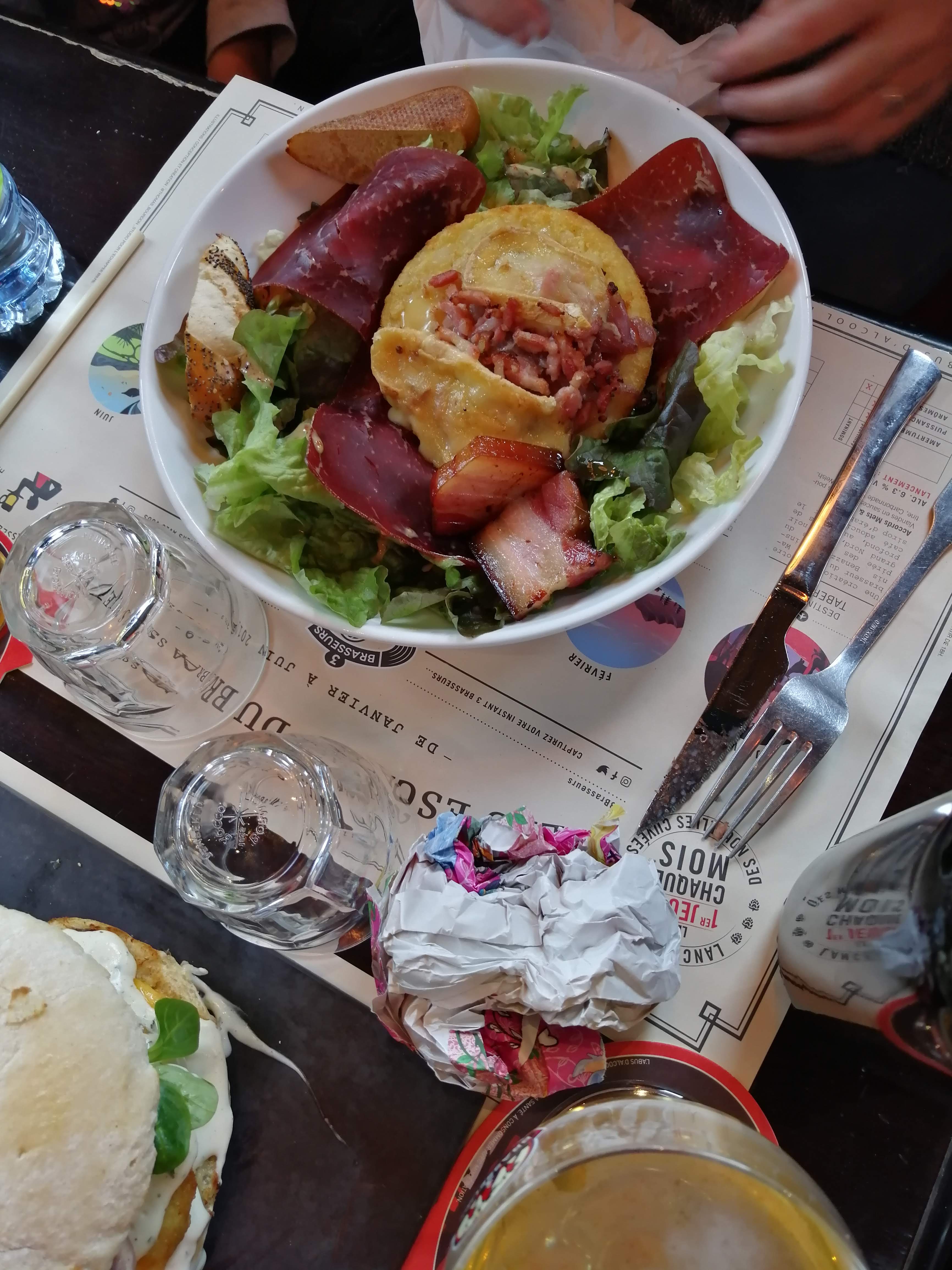 Toujours pas déçu... J'ai pris une assiette gourmande avec Carbonnade, potjevleesch, welsh et os à moelle.... Une tuerie.... Et en dessert un Merveilleux. Le service est top aussi. Dommage qu'il n'y ait pas plus de 3 Brasseurs en France... 2019 : Carte variée. J'ai pris une salade d'automne : une vraie tuerie... C'est super bon.