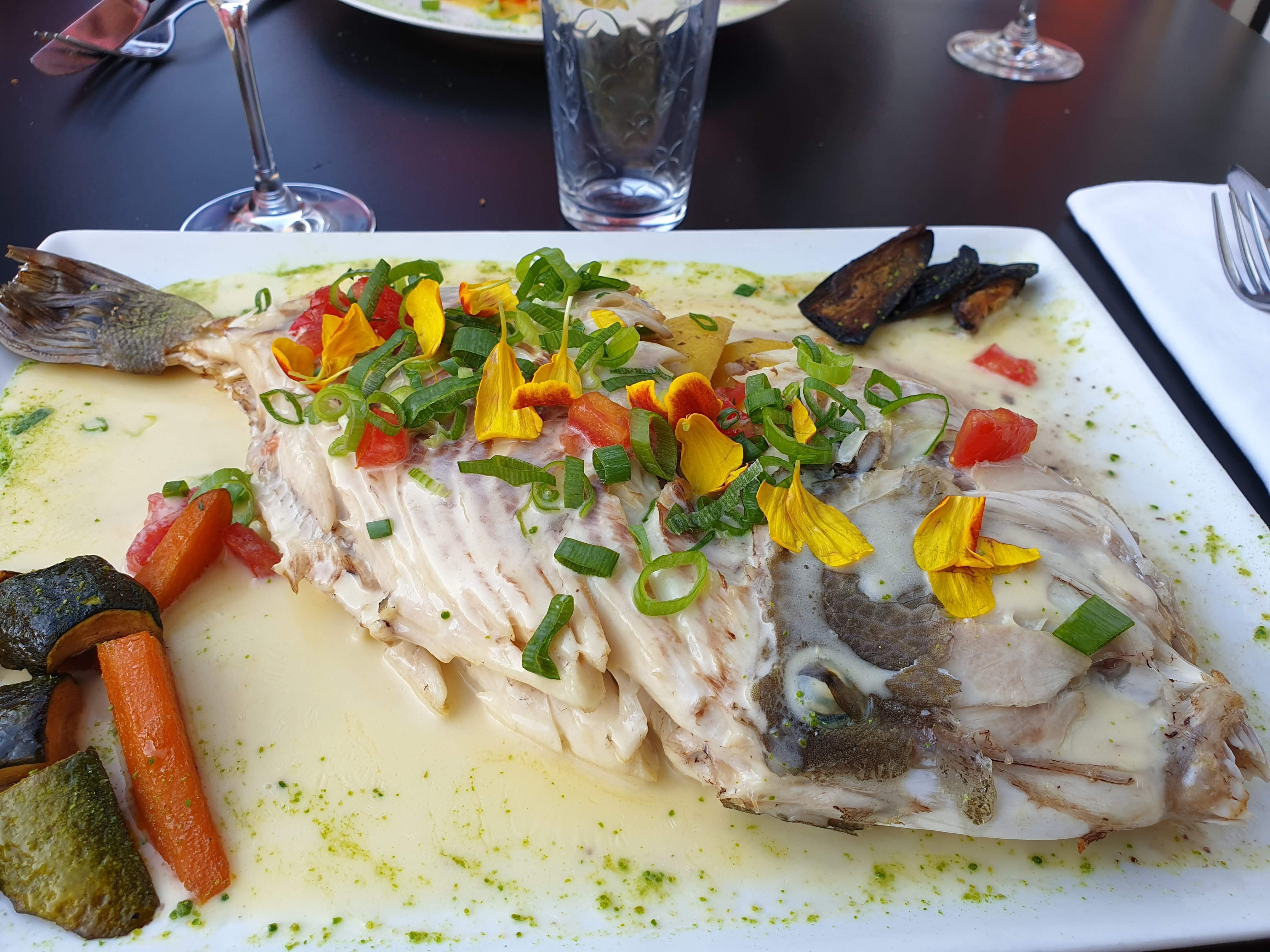 Poisson succulent et très bien cuisiné. Une carte de vin mirobolante.