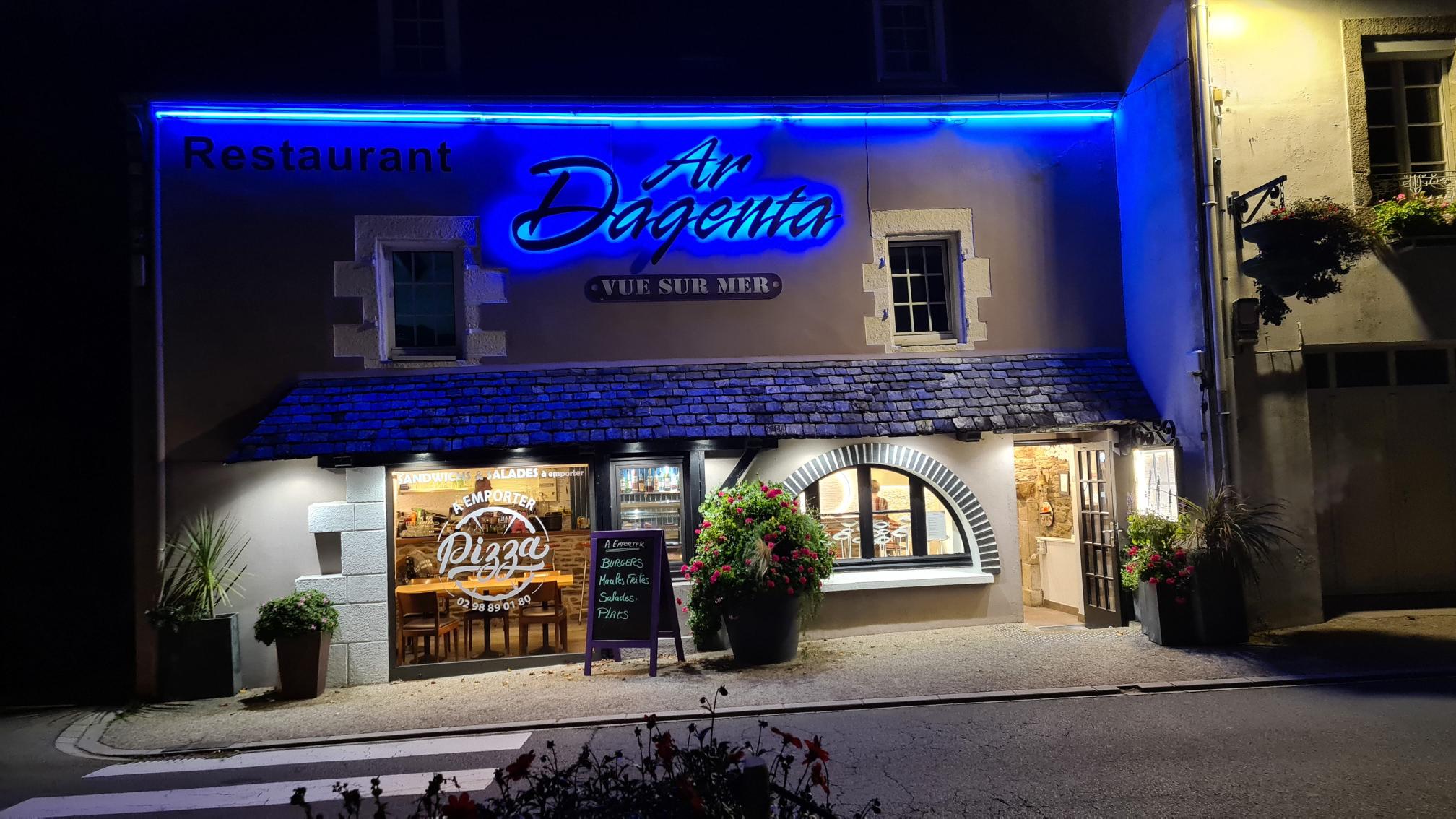 J'aime beaucoup Ar Dagenta bar restaurant et snacks. Les patrons sont gentil et personnel agréable belle déco. Nous sommes de Brest et j'adore ce restaurant car nous mangeons très bien, de bon repas élaborés de l'entrée au désert on ce régal . Belle vue mer .Côté snacks pizza et sandwich à emporté .