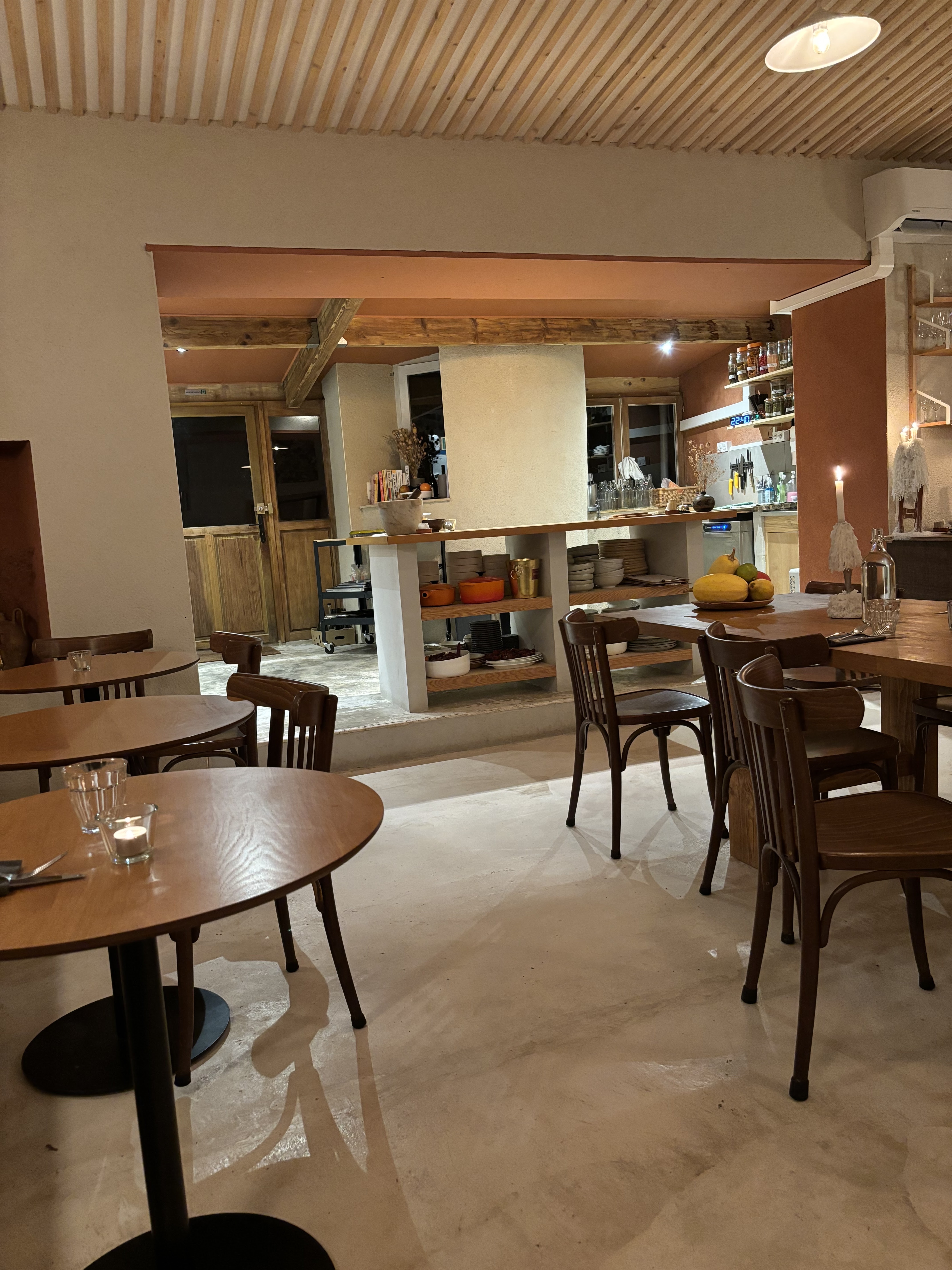 Une excellente surprise Produits majoritairement locaux, préparés avec goût, assaisonnement parfait avec herbes et aromates locaux Service aimable et très efficace Une majorité de vins naturels originaux et très variés