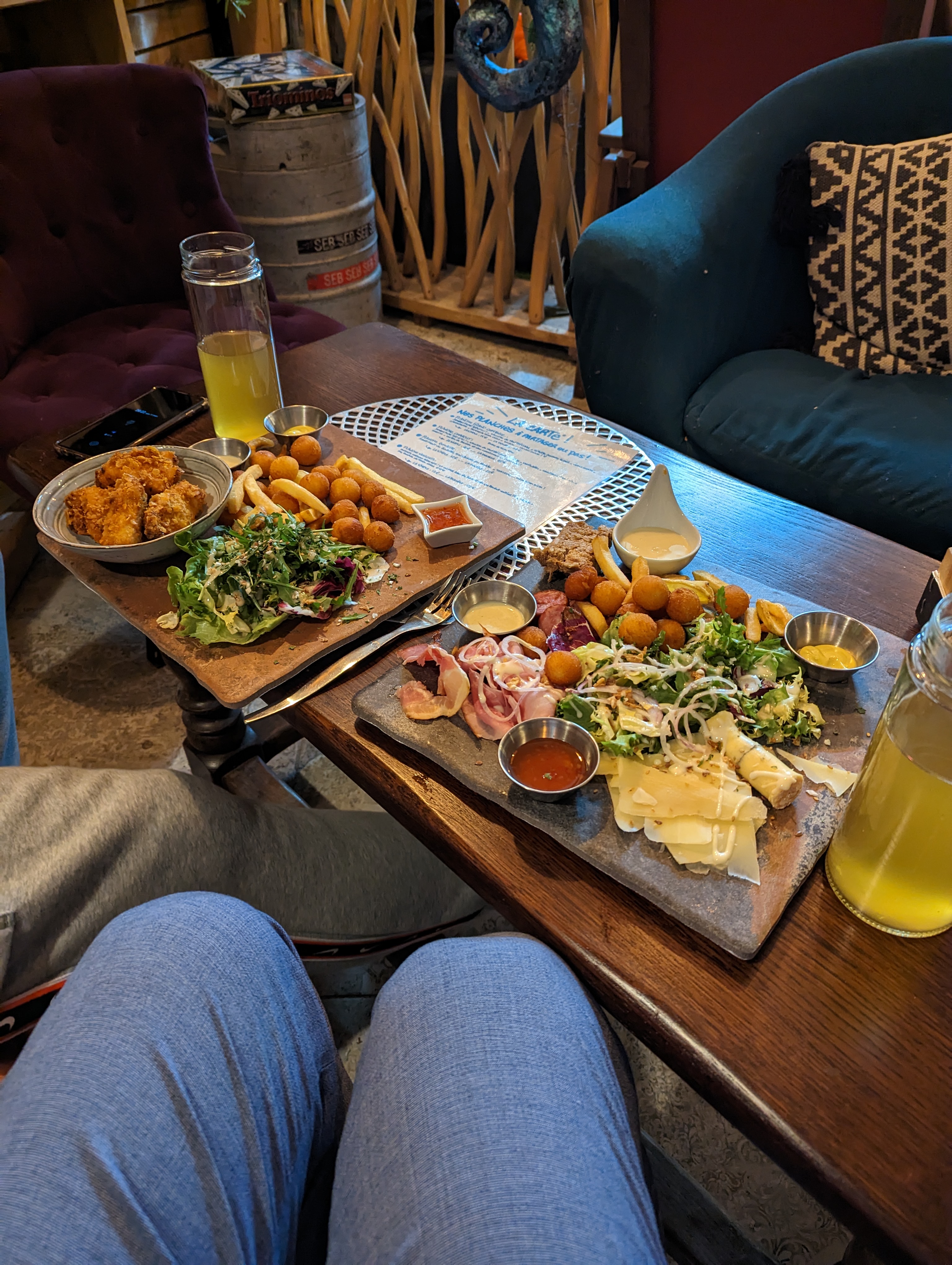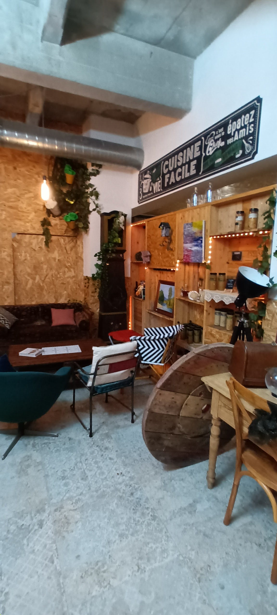 Lieu décalé mais absolument a tester!le décor est soigné, cosy et décontracté. Les planches sont copieuses et succulentes!! On a terminé par jouer à un jeu de société. Toute la famille a adoré !!