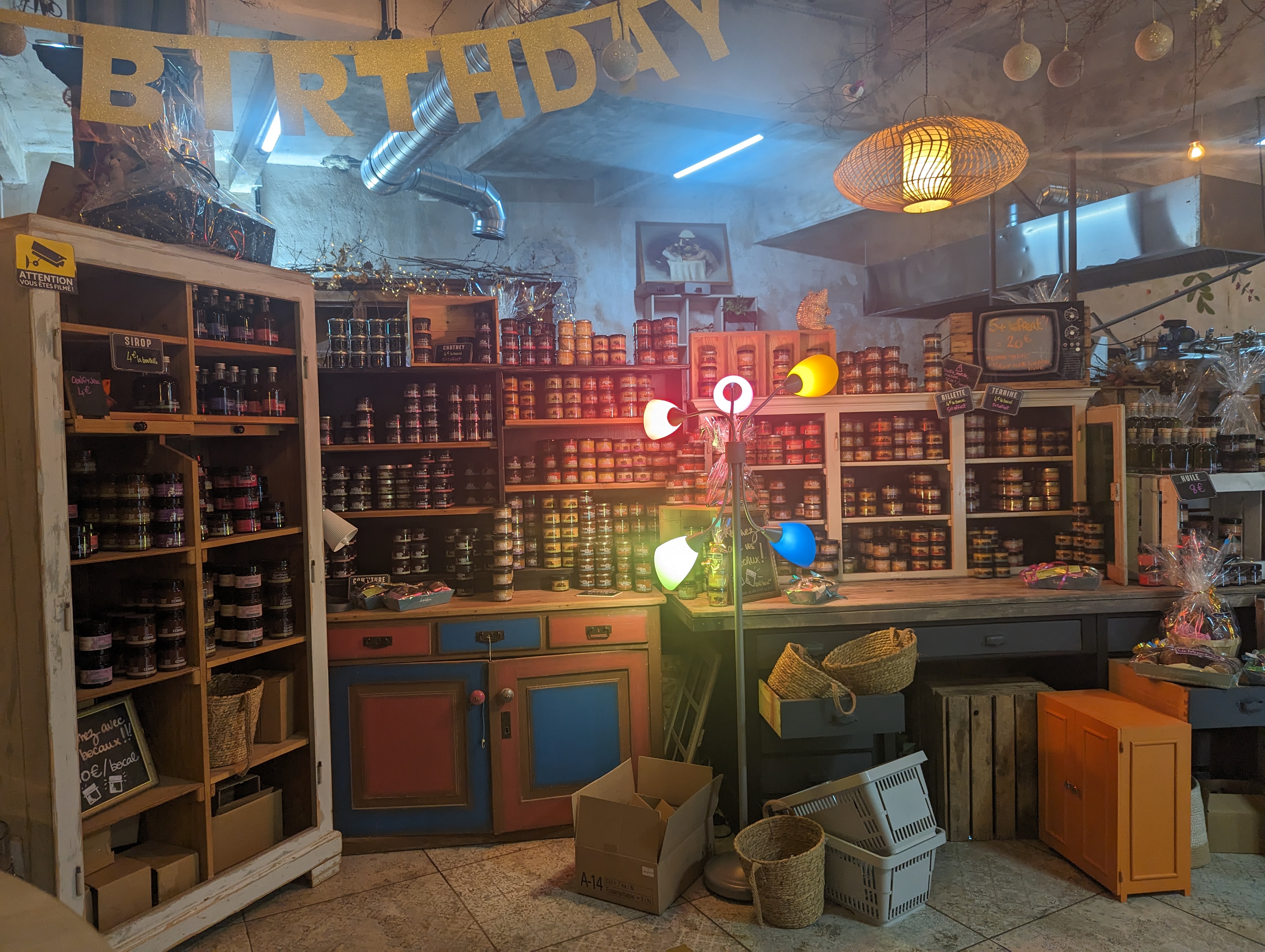 Lieu atypique au niveau de la déco, j'adore. J'y suis allé pour acheter des pots de tartinade, super choix acceuil au top et le tout avec humour simplicité et sourire 😃 je recommande. J'y retournerai avec plaisir pour un apéro entre amis. Et tip top pour les cadeaux de Noël de dernière minute je vais faire un heureux merci et à bientôt. 😉😉😉