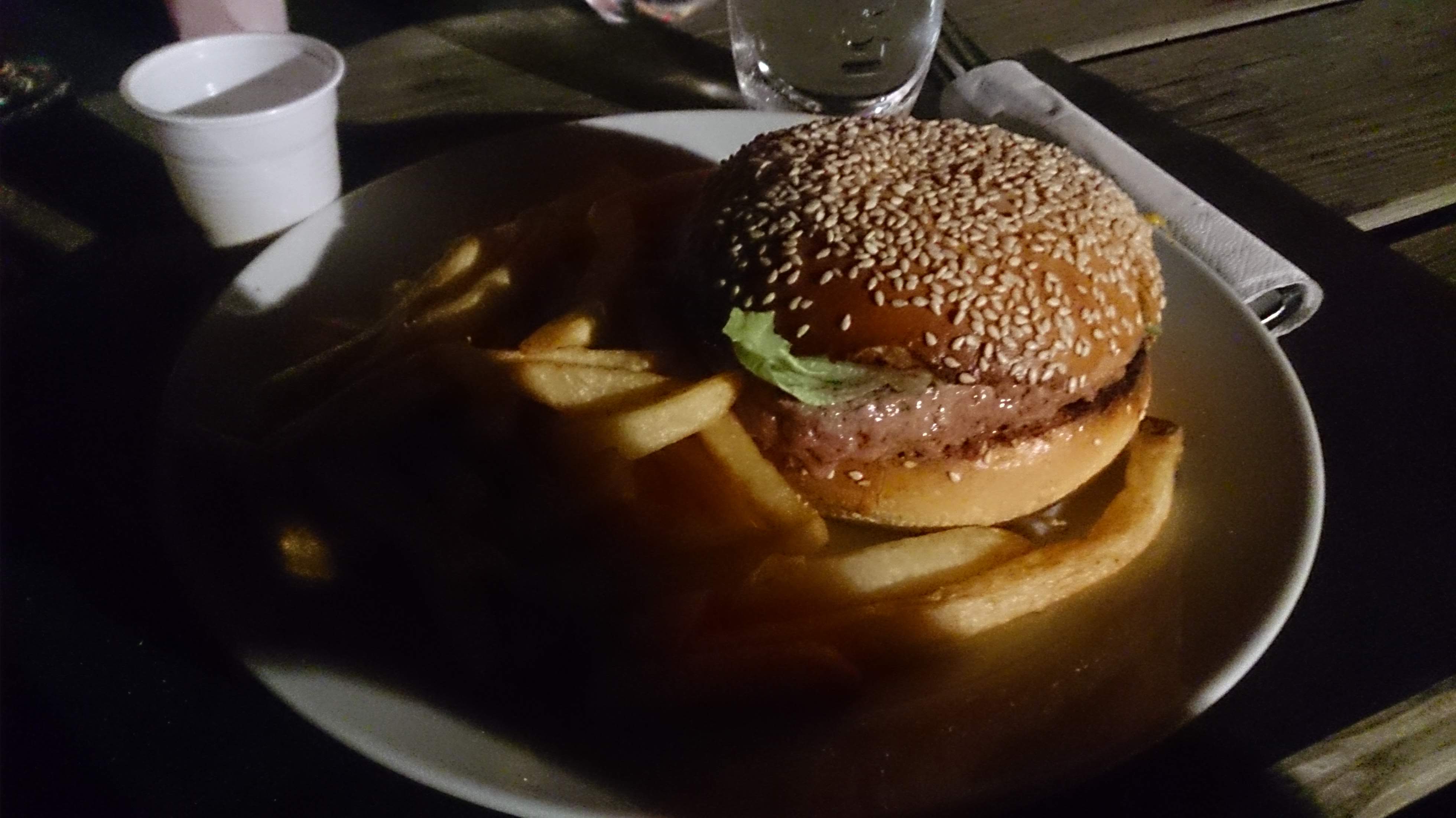 Tres bon hamburger, pres de la piscine ecologique au bord du lac, convivial