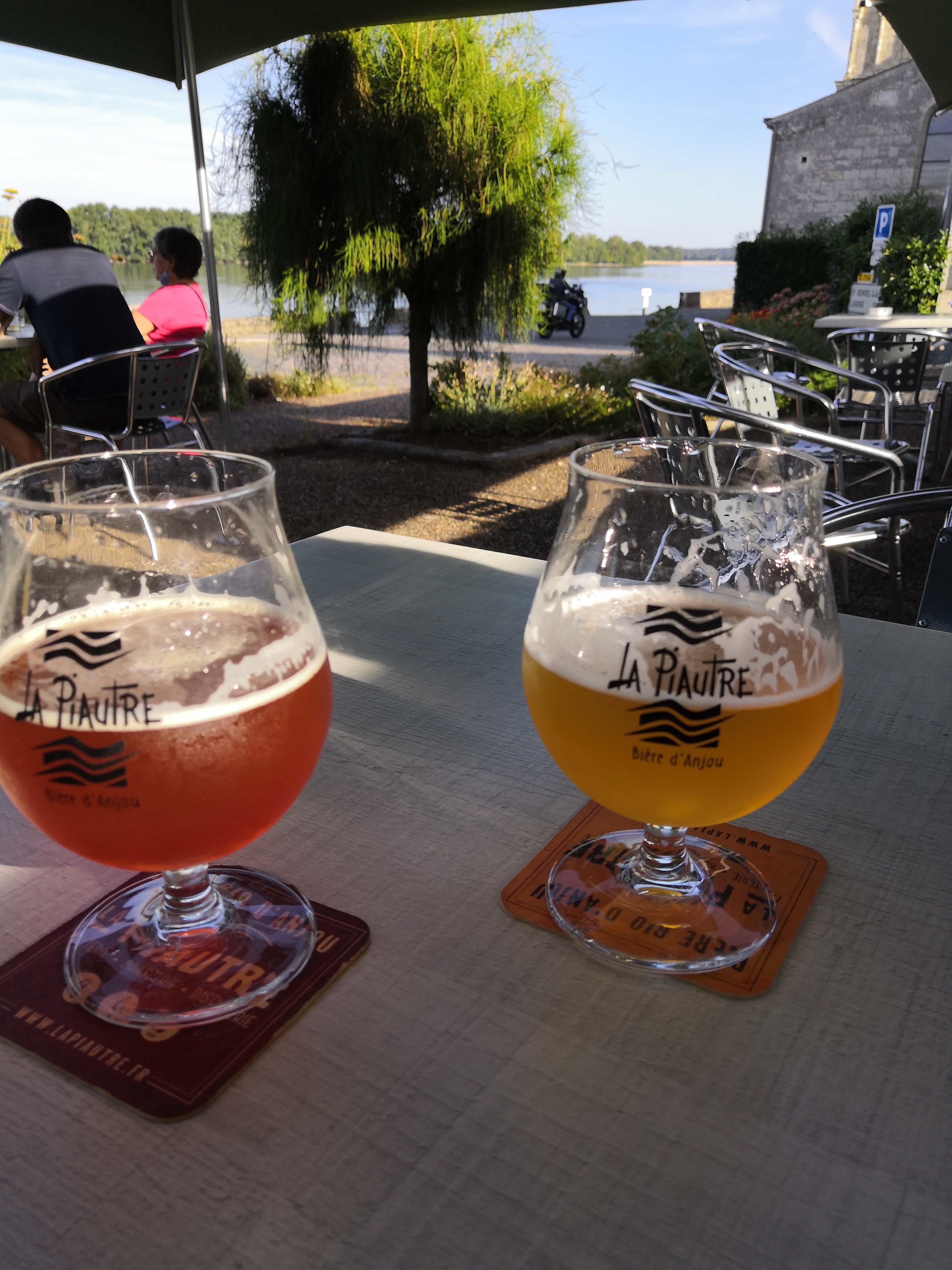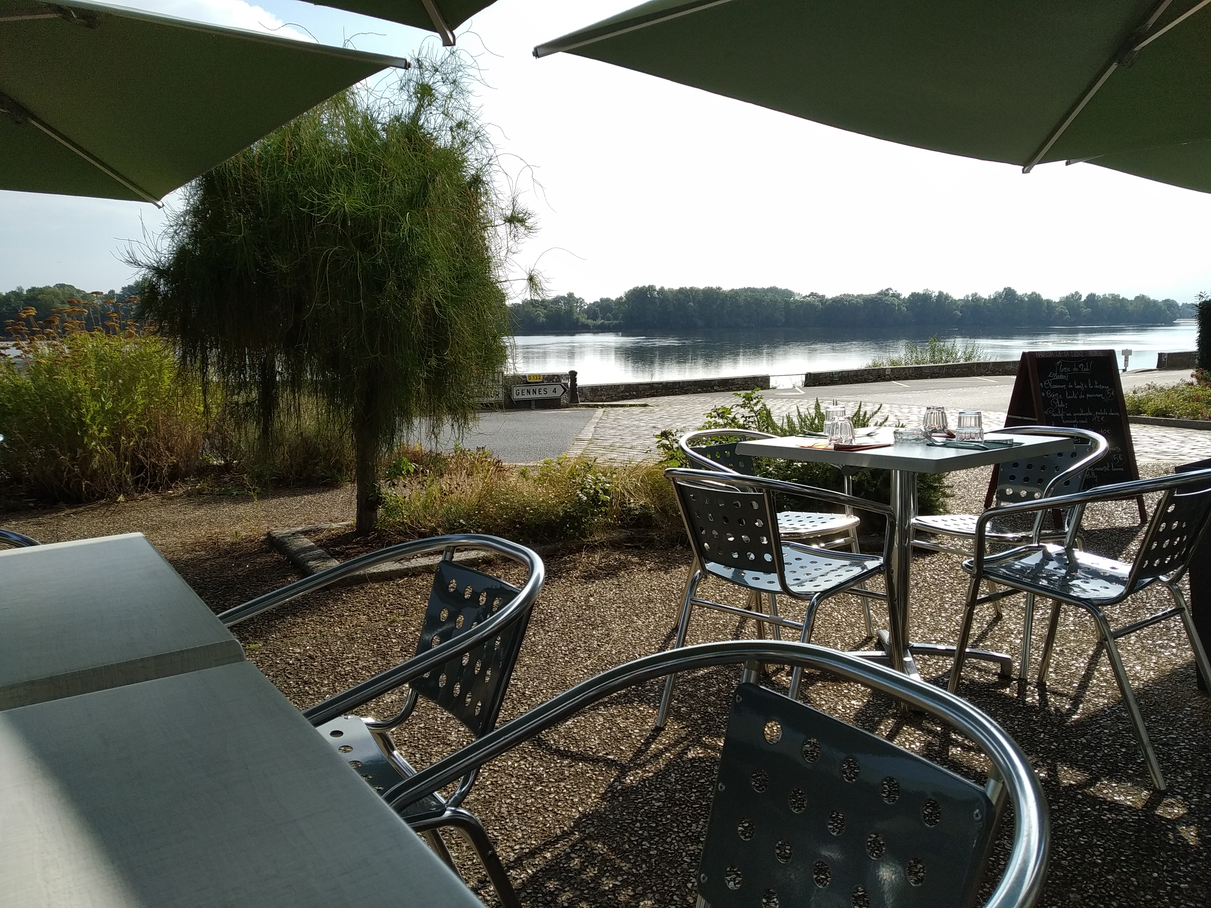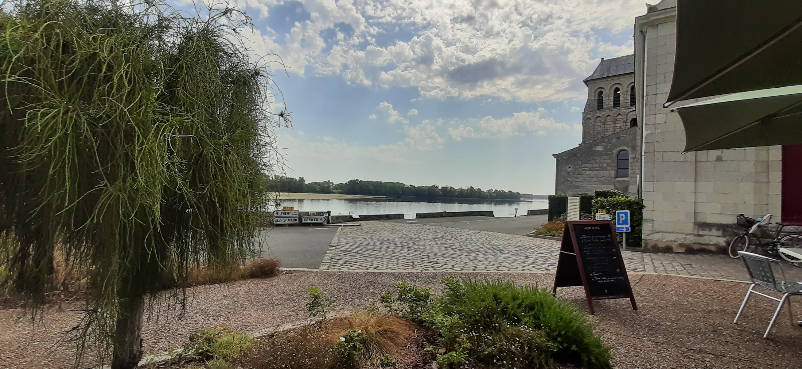 Belle terrasse (enfin ouverte) face à la Loire et à côté de la belle église du Thoureil ! Sympa