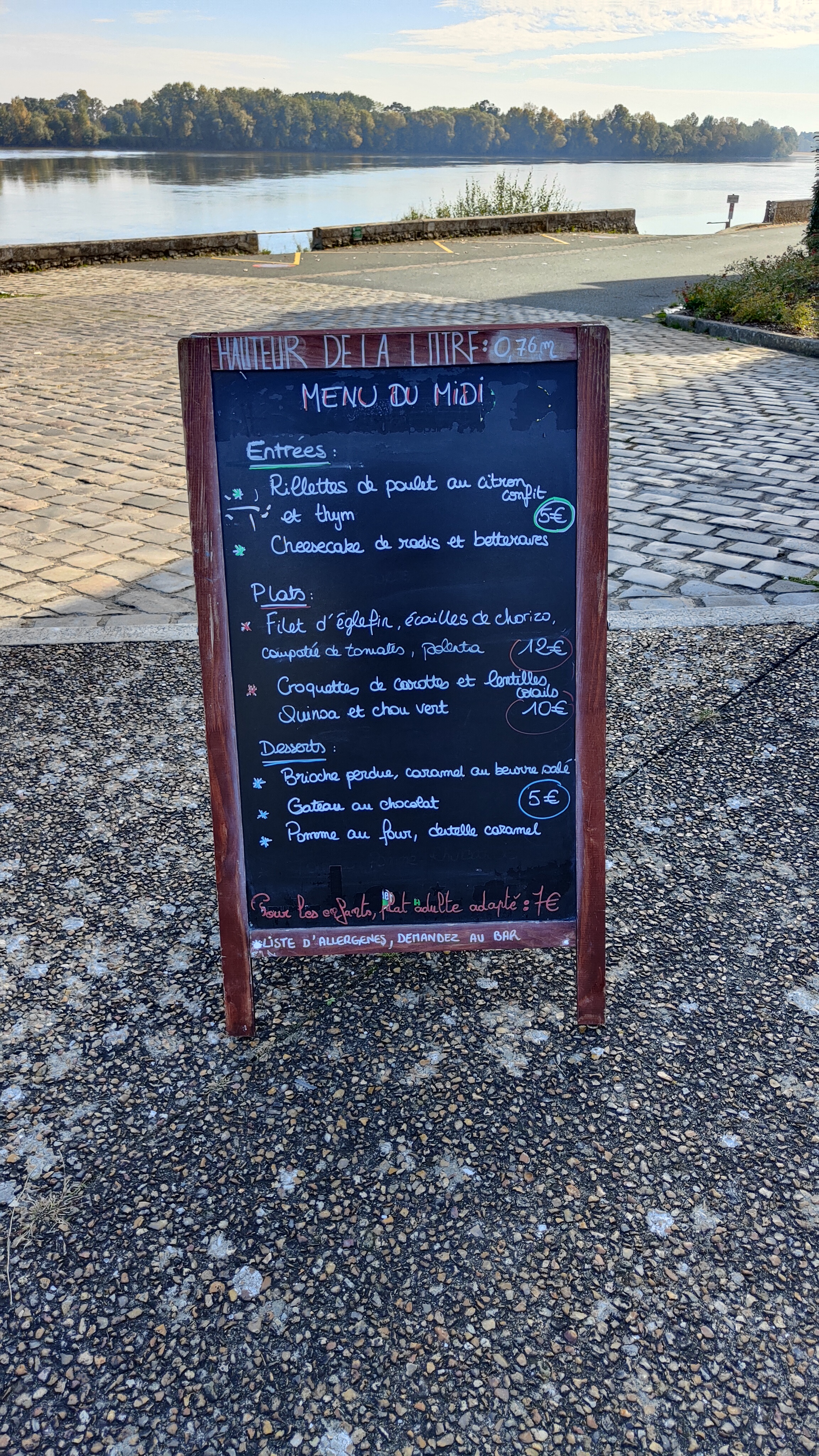 Très bon rapport qualité-prix, peu de choix mais produits frais, de saison. La vue sur la Loire est imprenable.