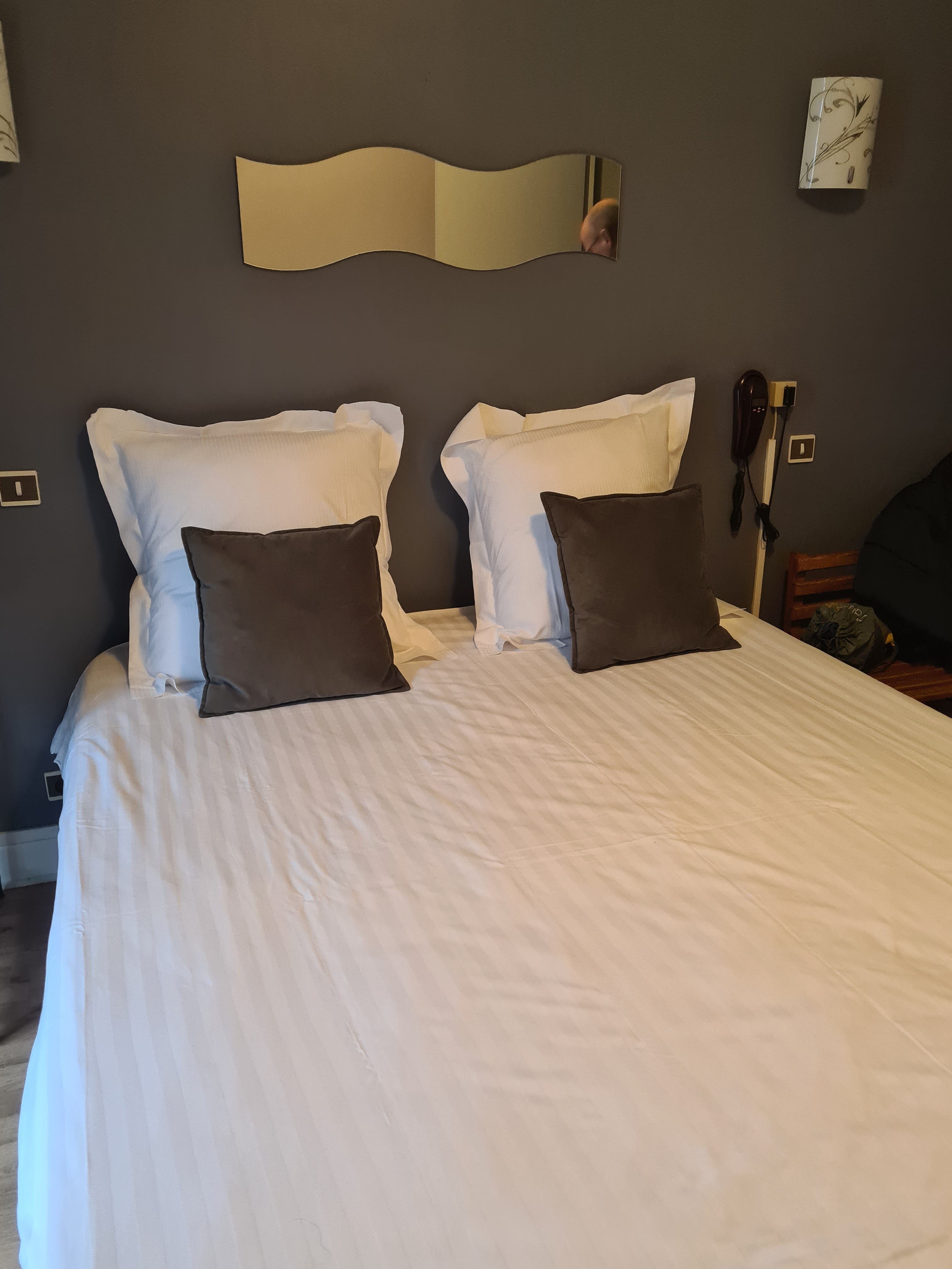 Petit hôtel familial très sympathique. Adepte de la propreté pas de déception 👍 J'ai passé 2 nuits en prenant les petits déjeuners ainsi que les dîners qui sont simples et efficaces...rien à redire. Moules frites le vendredi soir très bien 😋 Petits parking devant l'hôtel mais possibilité de se garer juste à côté. Je reviendrai si l'occasion se représente. Idéalement situé pour la pratique du vélo de course même si je connaissais déjà la région.