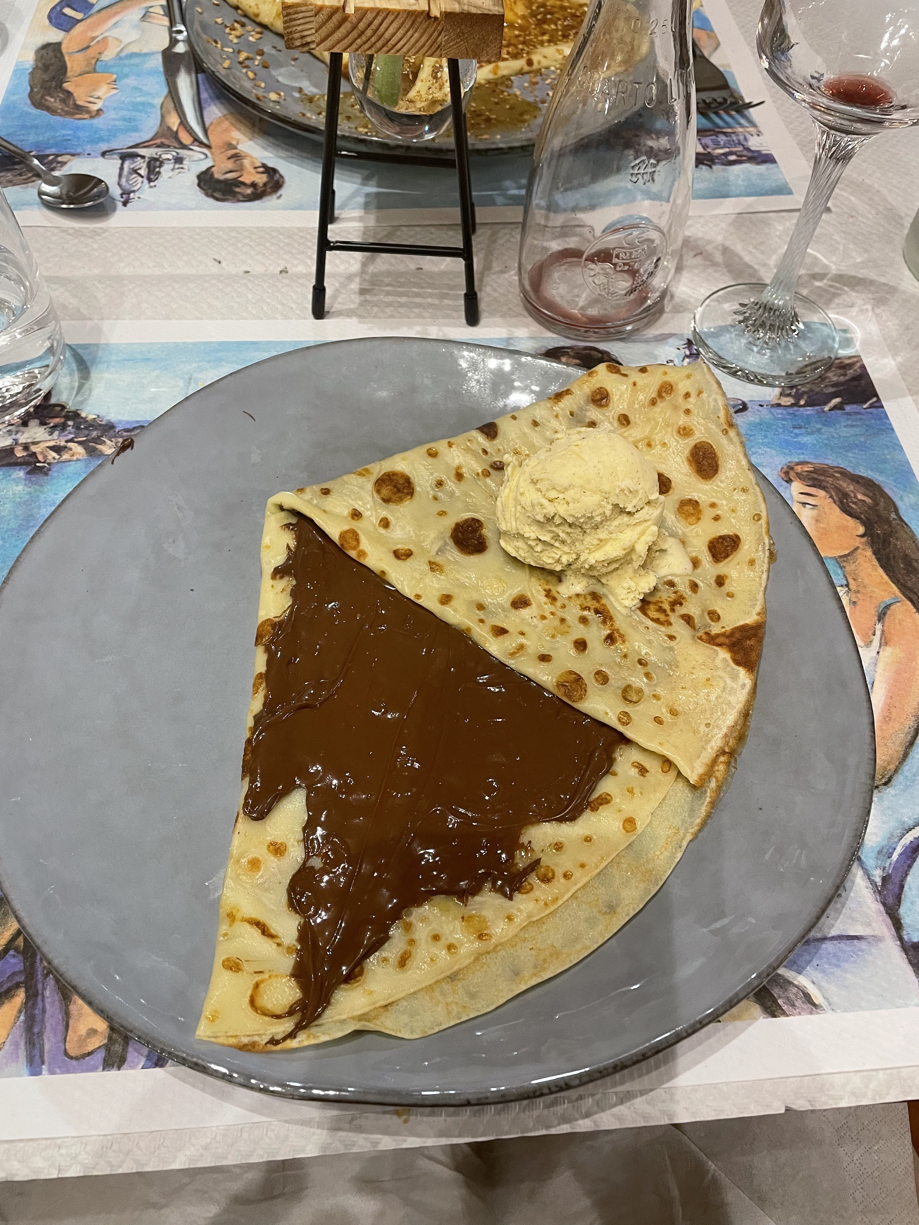 Nous sommes allés à la crêperie, j'ai été agréablement surprise des saveurs de ma crêpe autant la salée que la sucrée, vraiment excellentes, mon amie Lili s'est vraiment régalé, j'y reviendrai avec grand plaisir...