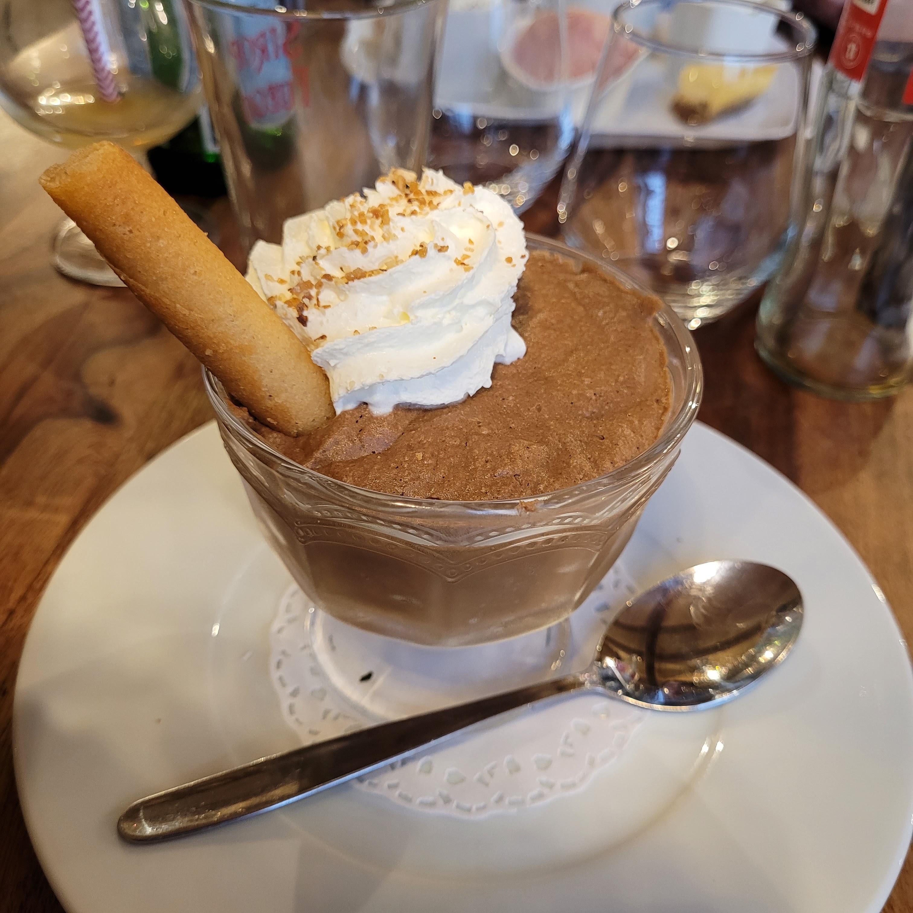 Posté le 18/05/2024 à 06:57"Soirée horrible !!! Samedi dernier, c'était notre troisième fois dans ce restaurant. La première fois, c'était avec des amis venus de Suisse, c'était bien. La deuxième fois, c'était avec des amis venus du Luxembourg, c'était déjà moins bien. Et cette fois-ci c'était avec des amis du sud de la France. Tous avec l'envie de manger des produits locaux. A notre arrivée, il y avait 2 grandes tablées (une au rez-de-chaussée et une à l'étage) et nous étions 5 ou 6 tables individuelles. A l'étage, il existe un espace jeux pour les enfants, pourquoi pas tout le monde sait que rester trop longtemps à table n'est pas simple pour eux. Tout le long du repas, les enfants jouant à l'étage ont été extrêmement bruyants hurler, courrir sachant que le sol à l'étage est un plancher bois, je vous laisse imaginer !!!! et que sais je encore puisque tout à coup nous avons entendu un grand boum qui a déclenché l'intervention des personnes de la tablée à l'étage probablement excedées mais rien n'y a fait. Ces enfants faisaient partie du groupe au rez-de-chaussée et les parents ne sont quasiment pas intervenus..... En ce qui concerne le repas, nous avons pris des os à moelle. Comme les fois précédentes, 3 assiettes avec 2 os et 1 avec 1 os. Pourquoi 1 ? La réponse est comme il est gros, soucis d'équité..... Ma question est pourquoi ne pas mettre 1 gros dans chaque assiette ou 2 pour tous les convives ! Mon mari a été très déçu par la tête de veau, plat qu'il connaît bien et qu'il apprécie beaucoup, très peu de beaux morceaux quasiment que de la gélatine. Quand nous avons quitté le restaurant,en même temps qu'un autre couple que nous ne connaissions pas, de manière unanime nous avons tous poussé un ouf de soulagement en profitant du calme extérieur. Nos amis ne nous ont rien dit mais nous avons bien vu leur déception Pour nous en tout cas, il n'y aura pas de 4ème fois."