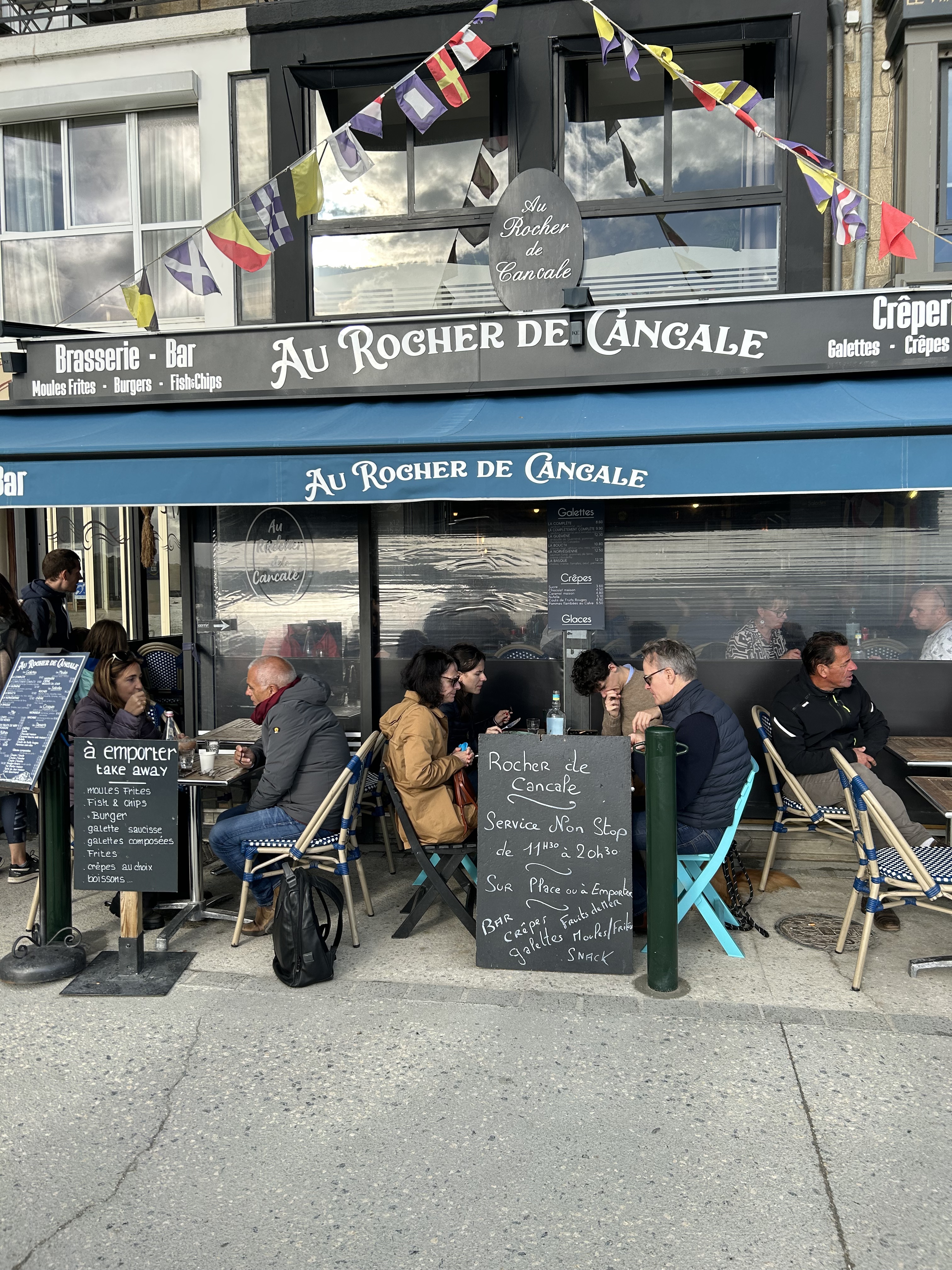 Très bon accueil de la part de toute l'équipe malgré le monde et la chaleur étouffante ! Des moules extras et que dire des crêpes ! Nous y sommes retournés deux fois et en plus ils acceptent les chiens ! Une bonne petite adresse le long du port de Cancale. Je recommande !
