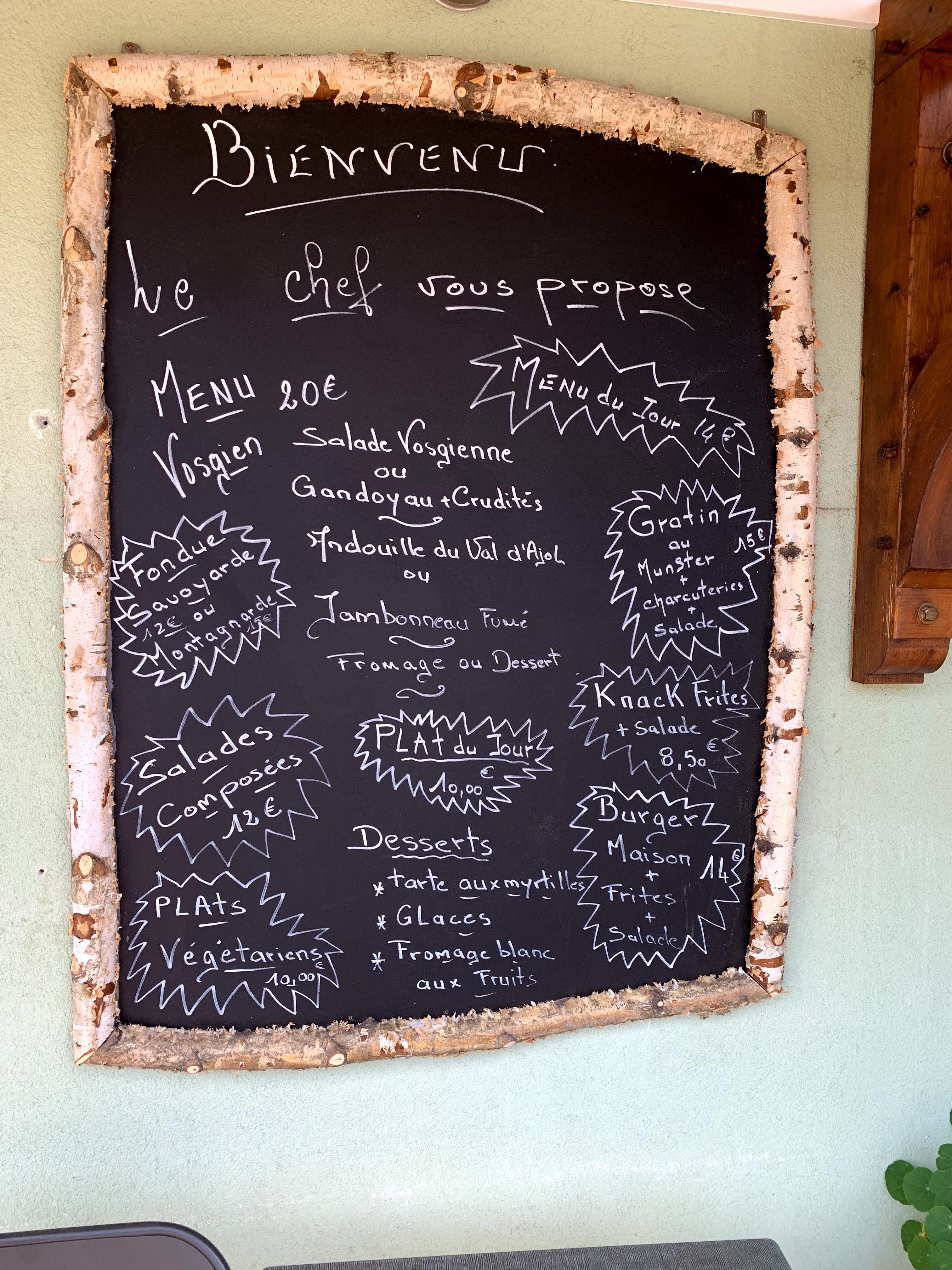 Arrivés en retard, 13h45 au lieu de 12h30, nous avons été très chaleureusement accueillis. La cuisine traditionnelle des Vosges était très bonne et les prix corrects. Merci pour tout 👍.