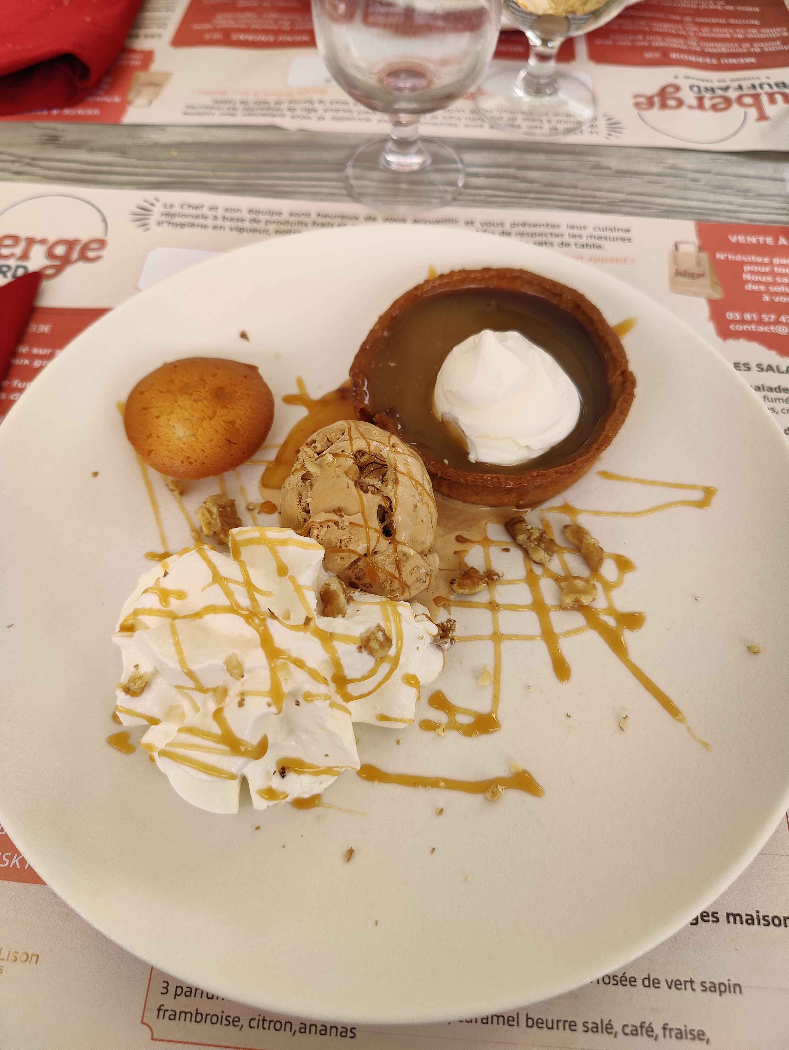Posté le 17/09/2022 à 19:04"Très mitigé… nuggets de poulet du menu enfant loupés. J’ai commandé une morbiflette résultat une salade lardons pommes de terres miettes de morbier et de morteau ! Tartelette chocolat caramel noyée sous coulis de caramel industriel. Alors j’ai le palais fin et je cuisine beaucoup… mais là vraiment j’ai trouvé les prix exorbitants pour les mets totalement standards ! Sacrée marge commerciale ! Accueil sympathique endroit propre dans joli village. Cela s’arrêtera là pour nous."