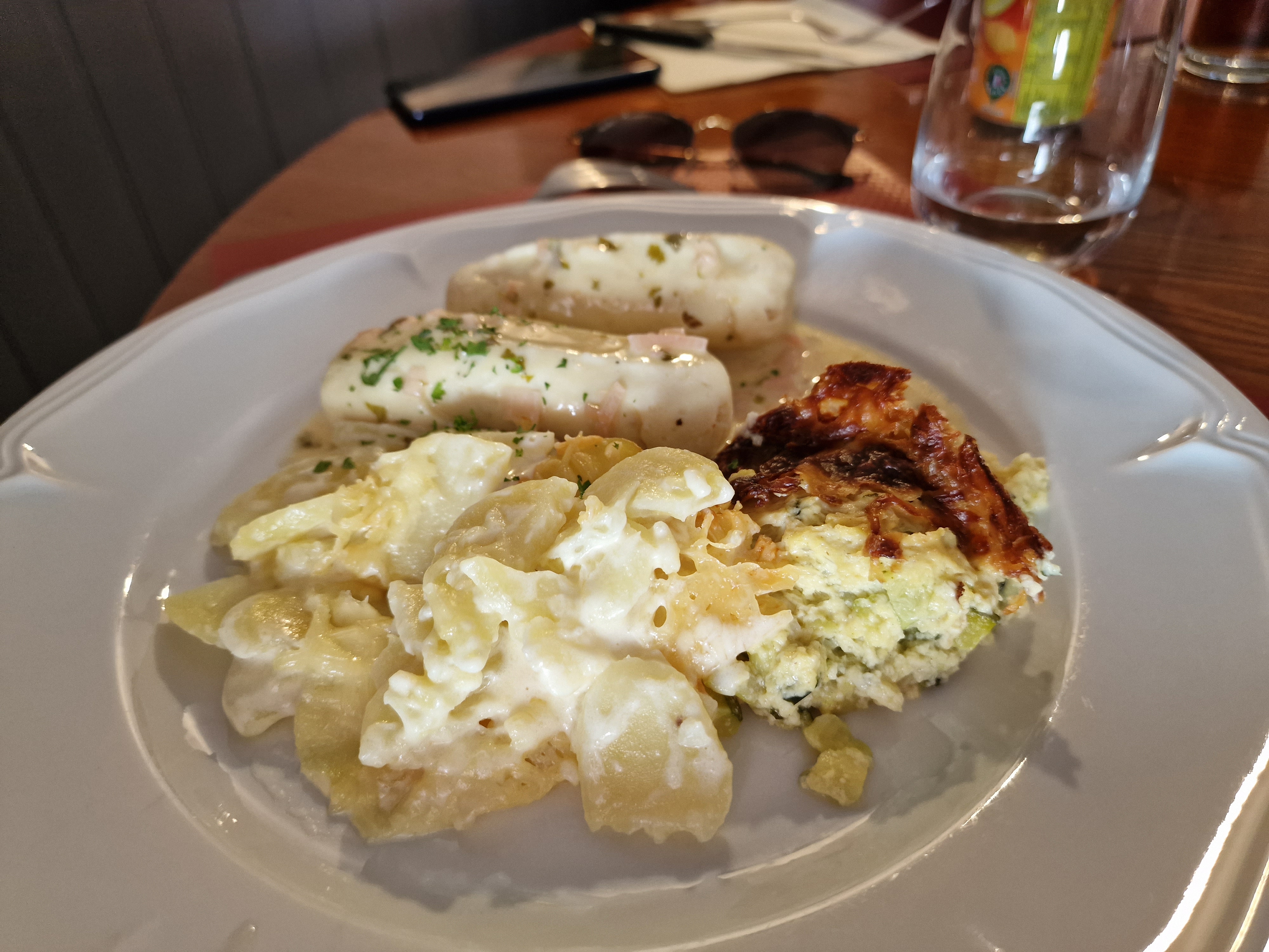 Personnel accueillant mais plat du jour très chère, dans les assiettes légumes différents de ceux annoncés sur le menu sans être averti ( flan de pomme de terre a la place de tagliatelles) . quantité pour petits mangeurs , dessert oublié pour 1 personne .