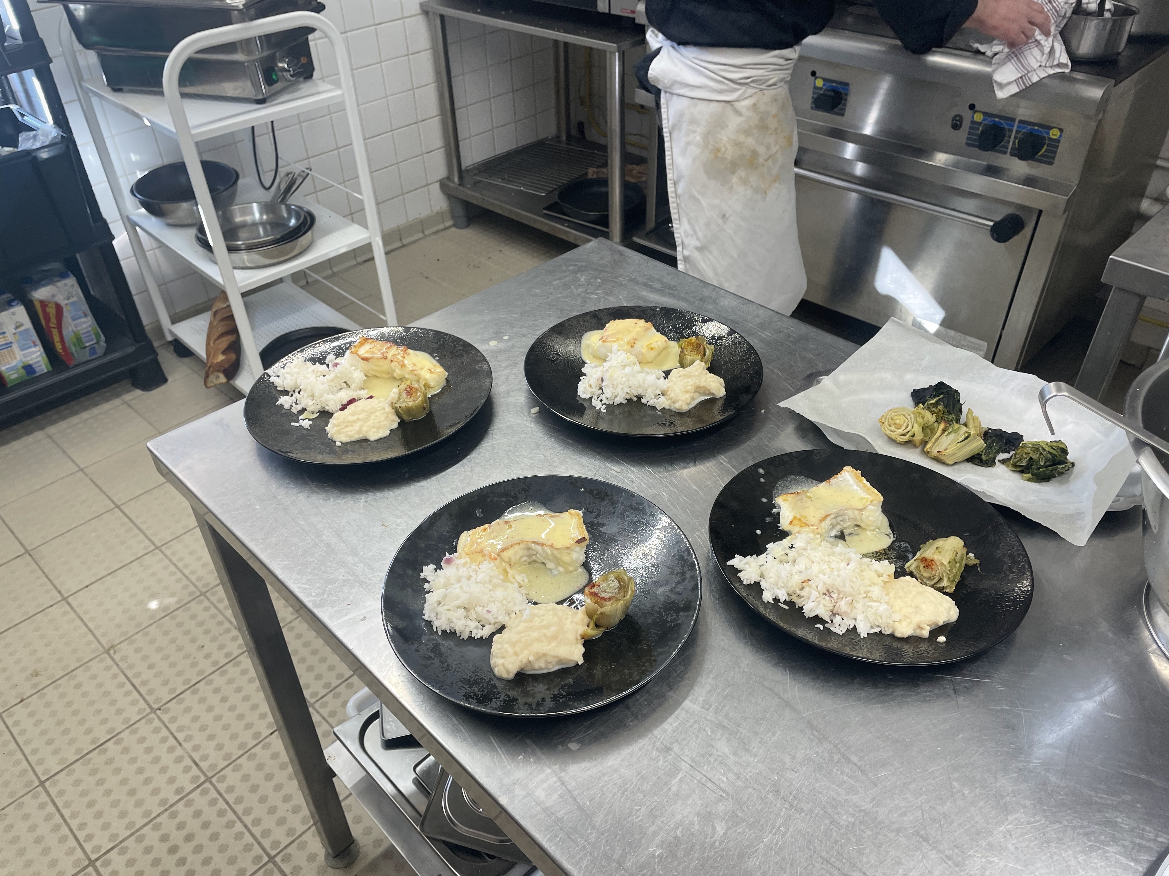 cuisine avec produits frais,a revoir (légumes boites)désert idem choux a la crème croute et garniture premier prix