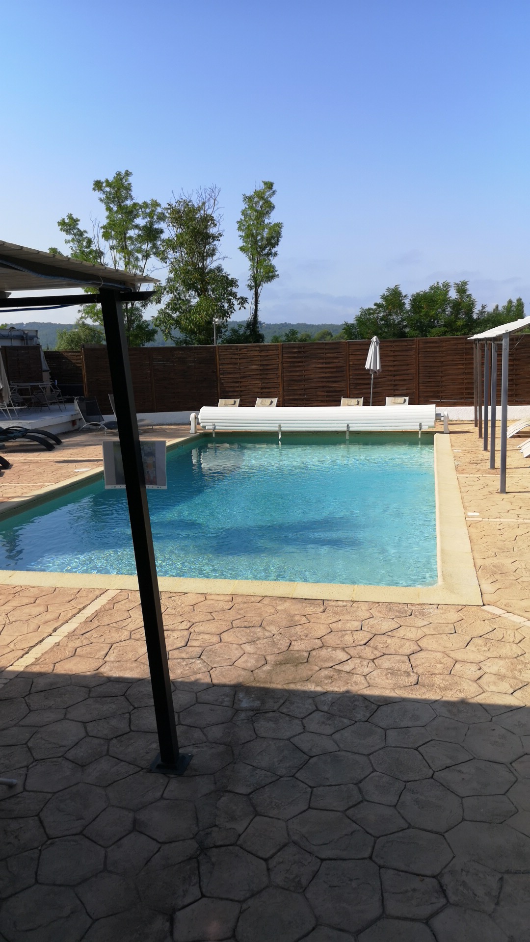 Équipé très sympathique. Bel endroit avec une piscine appréciable par cette chaleur.