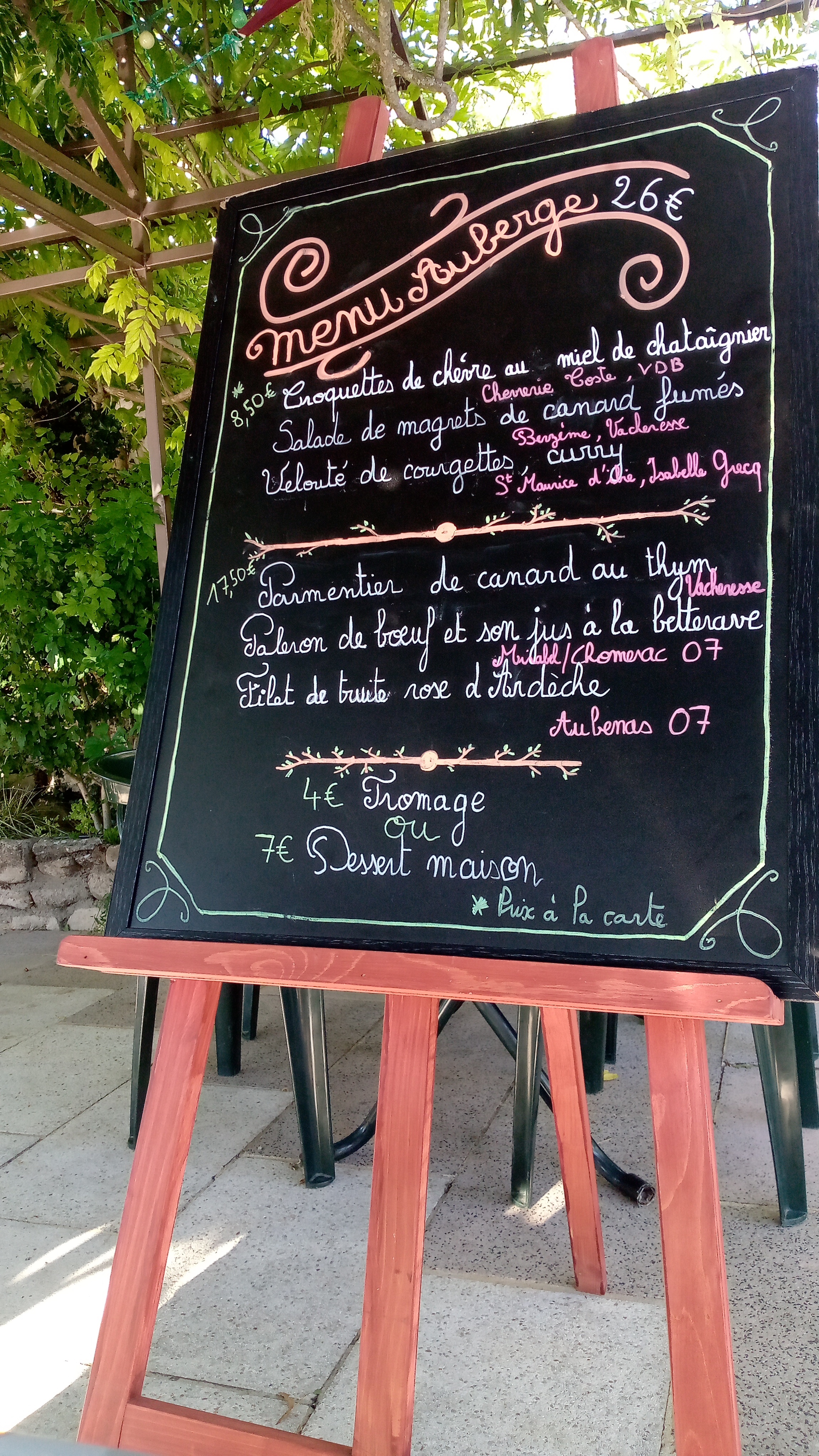 Posté le 26/08/2020 à 21:05"Pour y avoir dîner deux fois durant notre séjour en Ardèche, nous recommandons vivement cette Auberge !!! Des produits du terroir de qualité !"