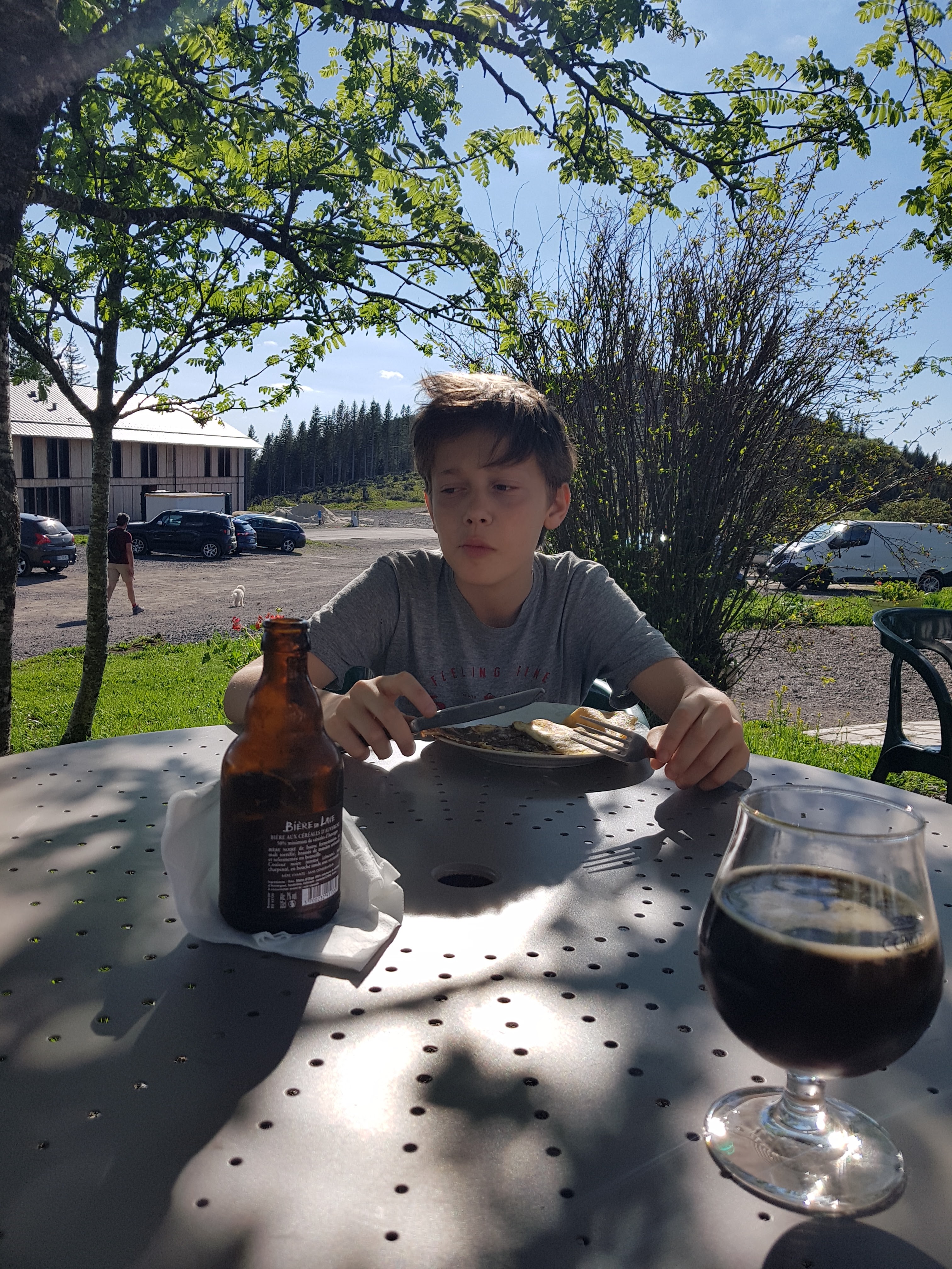 Nourriture locale très agréable - des trucs qui collent aux côtes !! - et de la bière artisanale. Lorsque les nuages ne sont pas bas, je suis sûr que la vue est spectaculaire. C'était pas mal aujourd'hui.