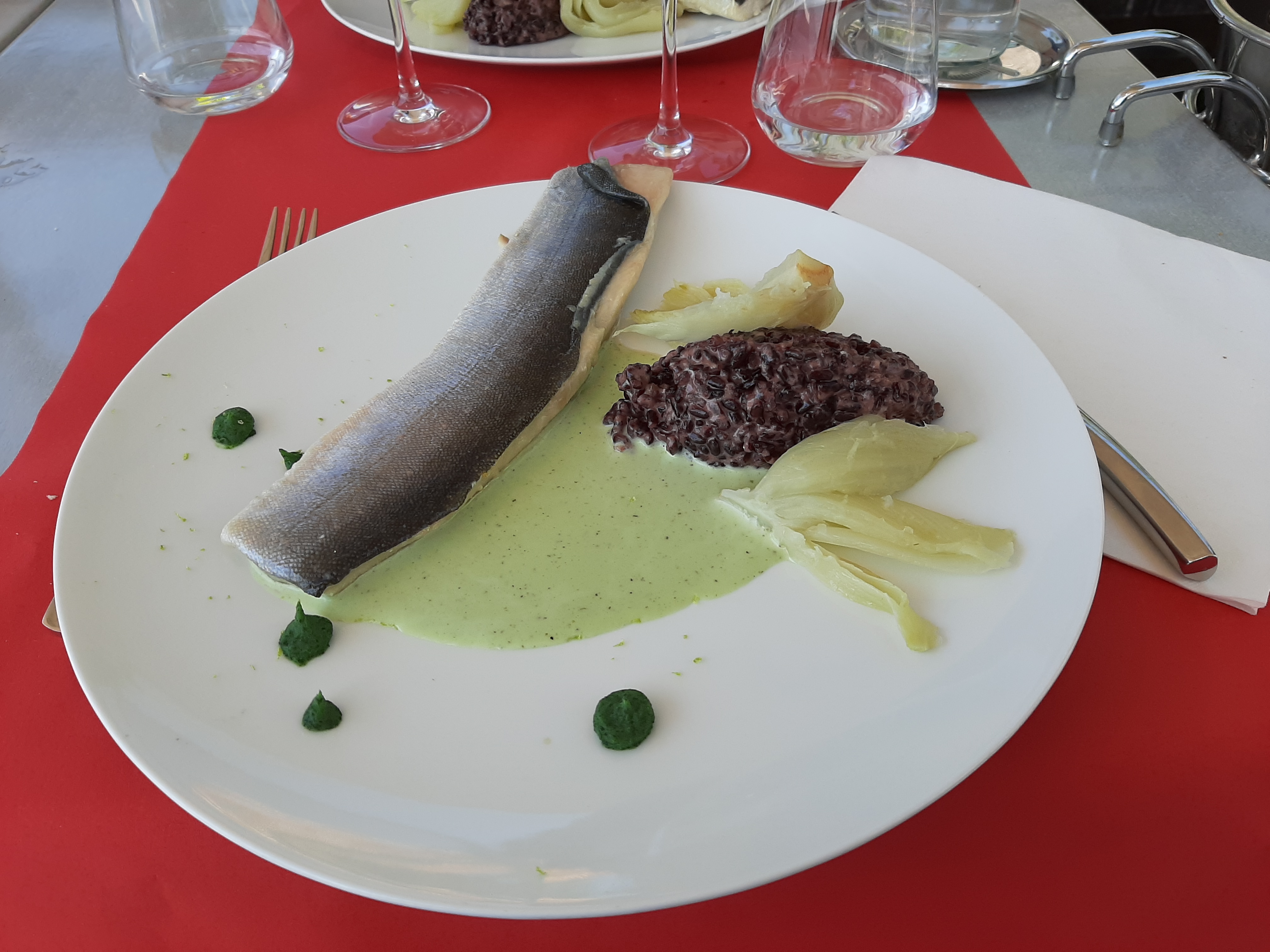 L'emplacement est le plus de ce restaurant, mon plat dont l'intitulé donné vraiment envie était fregola de Sardaigne avec un tartare d'omble chevalier qui était malheureusement quasi inexistant dans l'assiette (5 tout petits petits morceaux ) et pas vraiment de saveurs sur la globalité...dommage La présentation était jolie et la viande de mon mari parfaite.