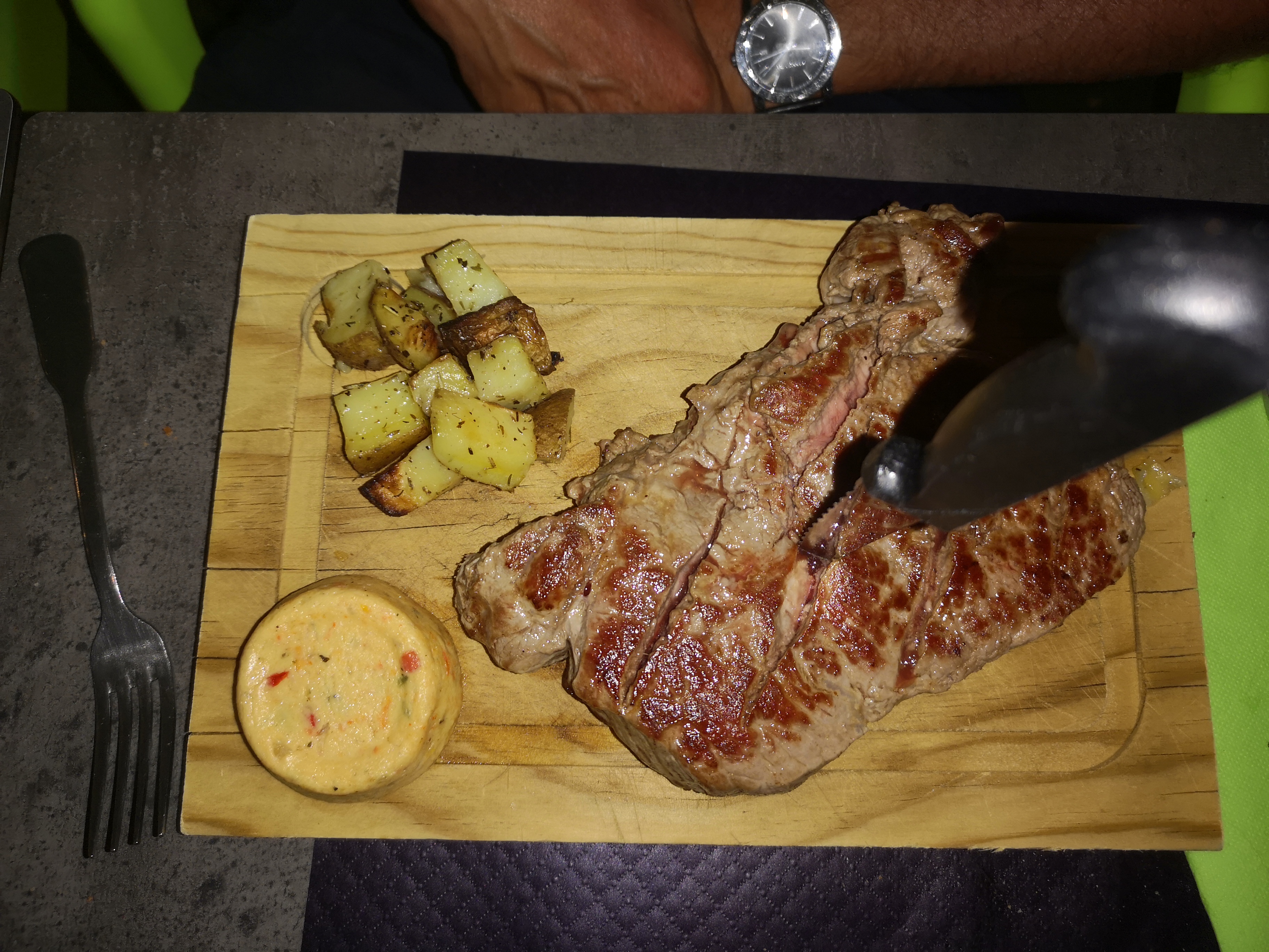 Belle terrasse,très bon plats et tout particulièrement le pain qui , dans la plupart des restaurants est basique,ici c'est du pain aux céréales ! La côte de bœuf veut le détour