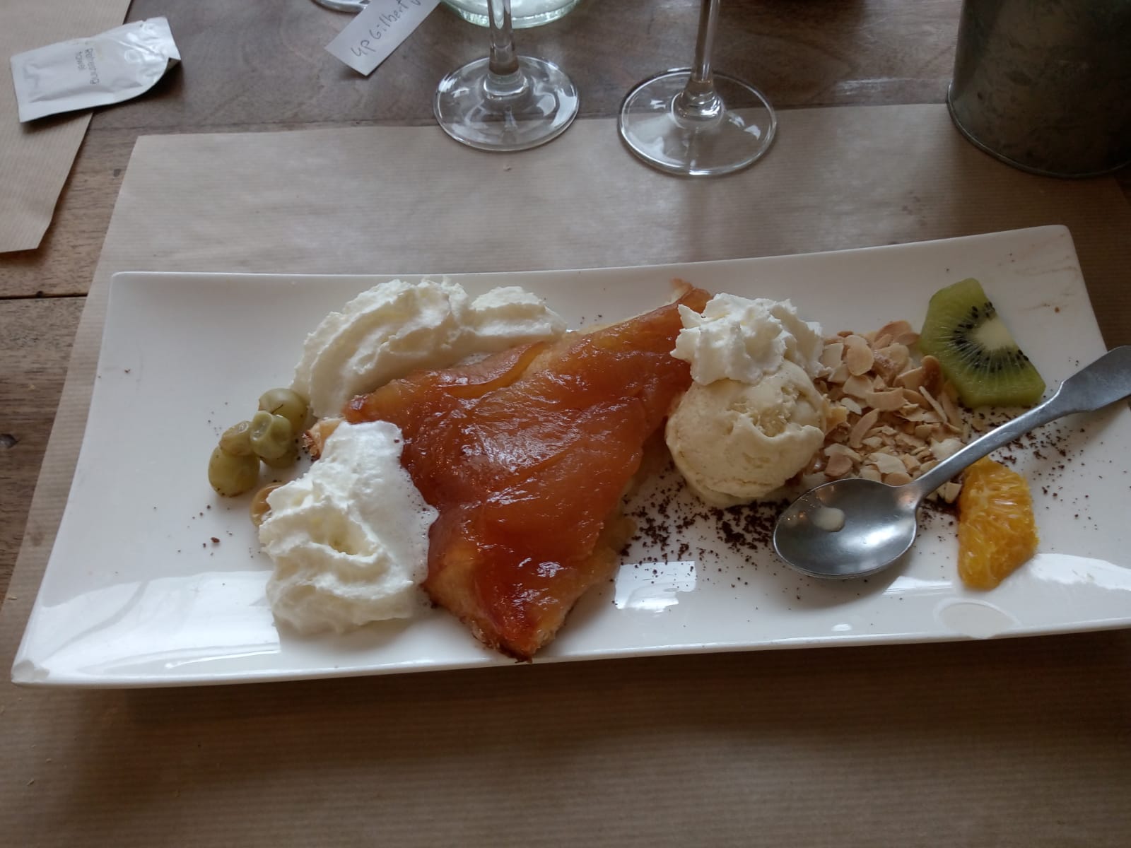 Un très bon accueil, très bien installés sachant qu'une personne était handicapée d'une jambe... Le temps était avec nous, manger en terrasse un 03 novembre c'est exceptionnel. Une assiette très copieuse da grande qualité gustative. Idem pour le dessert. A recommander sans modération