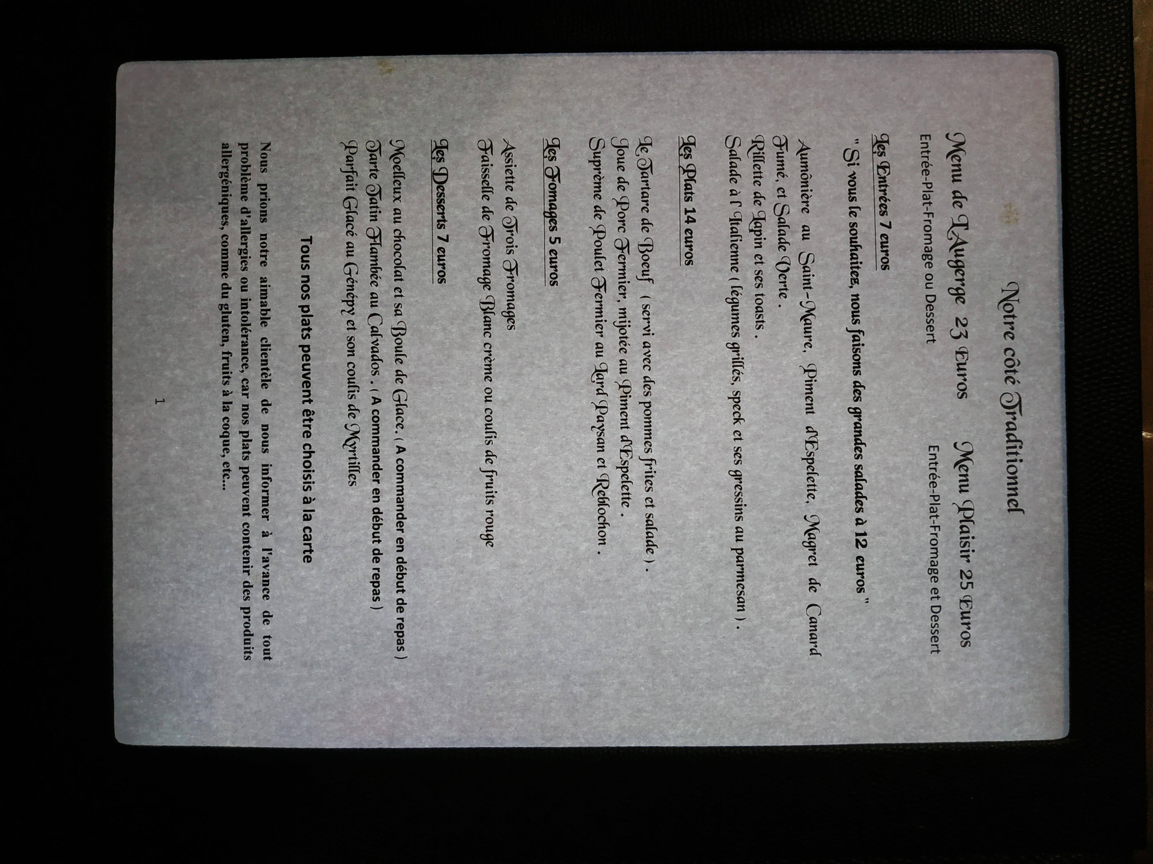 Cela faisait plusieurs fois que nous voulions y aller et nous avons beaucoup apprécié. Accueil bizarre au départ mais qui s'est révélé très sympa. La carte est variée et il y a des plats à partir de 15€ (suprême de volaille sauce Montmorency accompagné de bougnettes et salade) jusqu'à 25 pour des plats à base de boeuf ou de magret. Tout est maison. Ambiance familiale. Aujourd'hui, pas mal de personnes âgées habituées. C'est un signe... Je recommande 😉