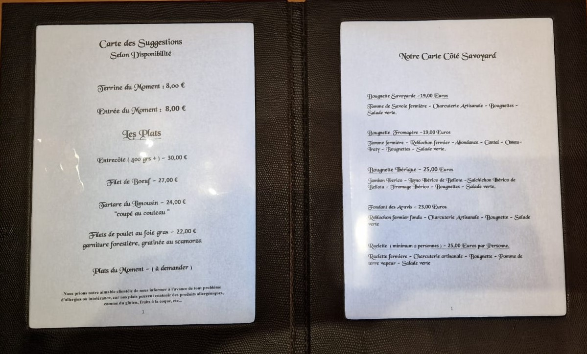 Petite auberge trouvée sur la route des vacances. Elle ne paye pas de mine de l'extérieur mais dedans les tables sont toutes mignonnes et dans l'esprit savoyard. Les repas sont typiques de la région et bien copieux. La serveuse est très souriante et agréable. Les bougnettes servies avec les plats sont excellentes. Tout est fait maison et de bonne qualité. Nous ne sommes pas déçu du tout. Très bon rapport qualité-prix.