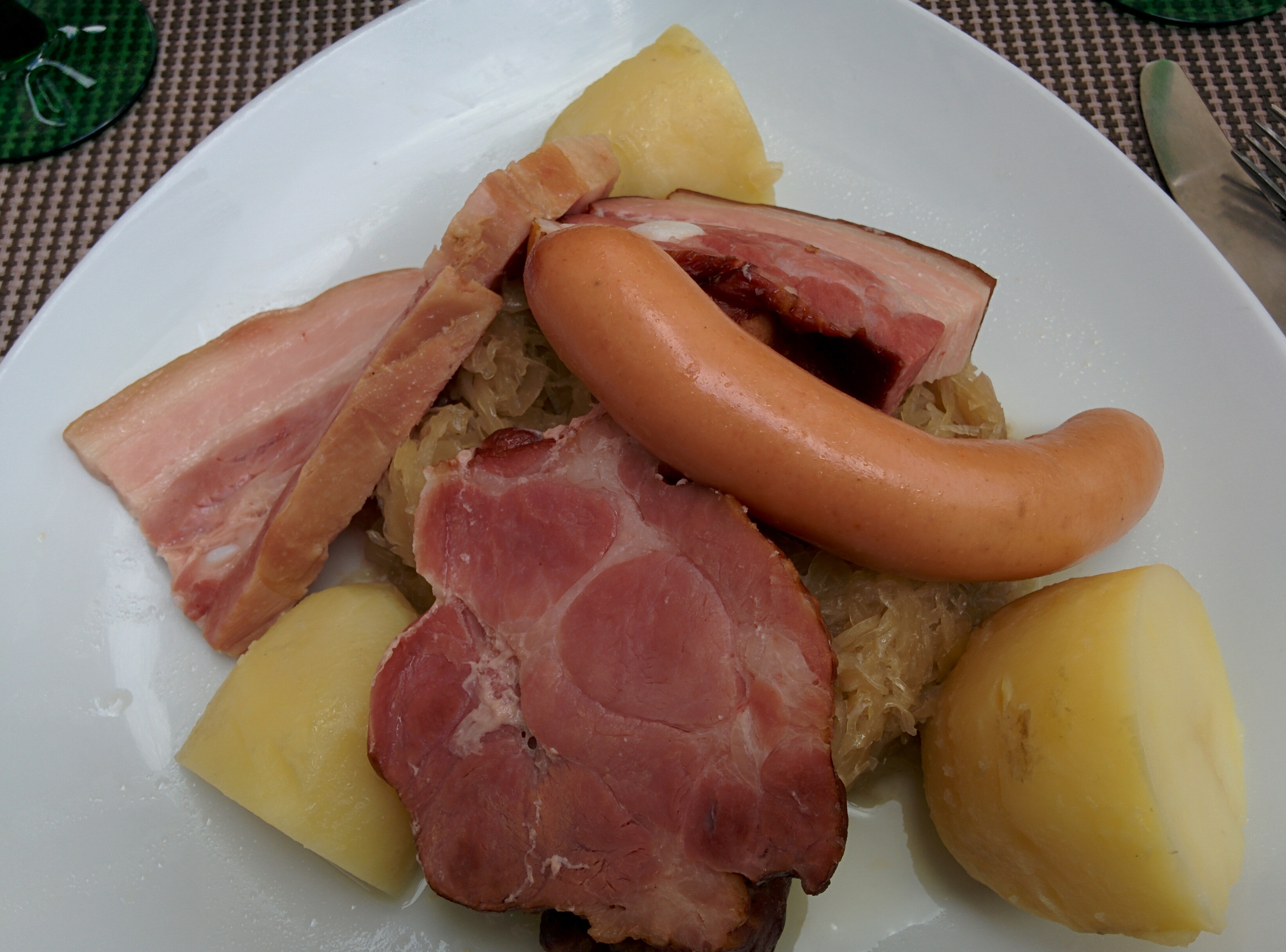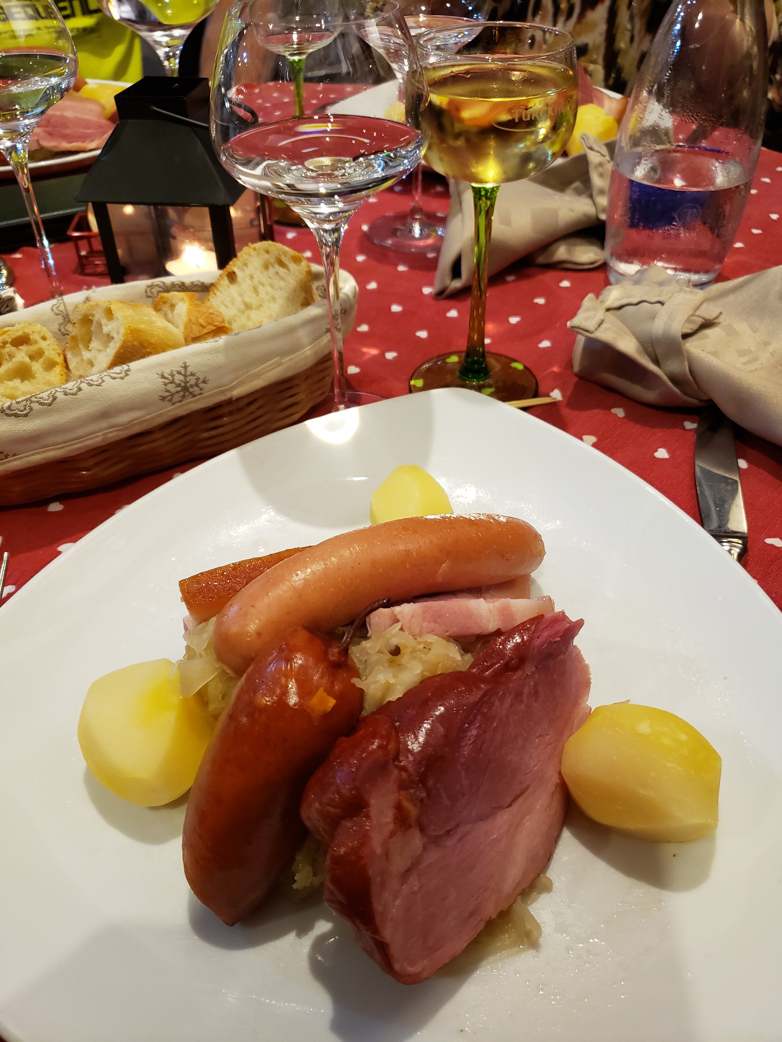 Nous avons mangé une très bonne choucroute, accompagnée d’un vin local. Le serveur était très sympathique, Mais à 21h disparition des autres convives.. le veilleur de nuit entame sa ronde ! Adaptez votre planning pour souper 😁