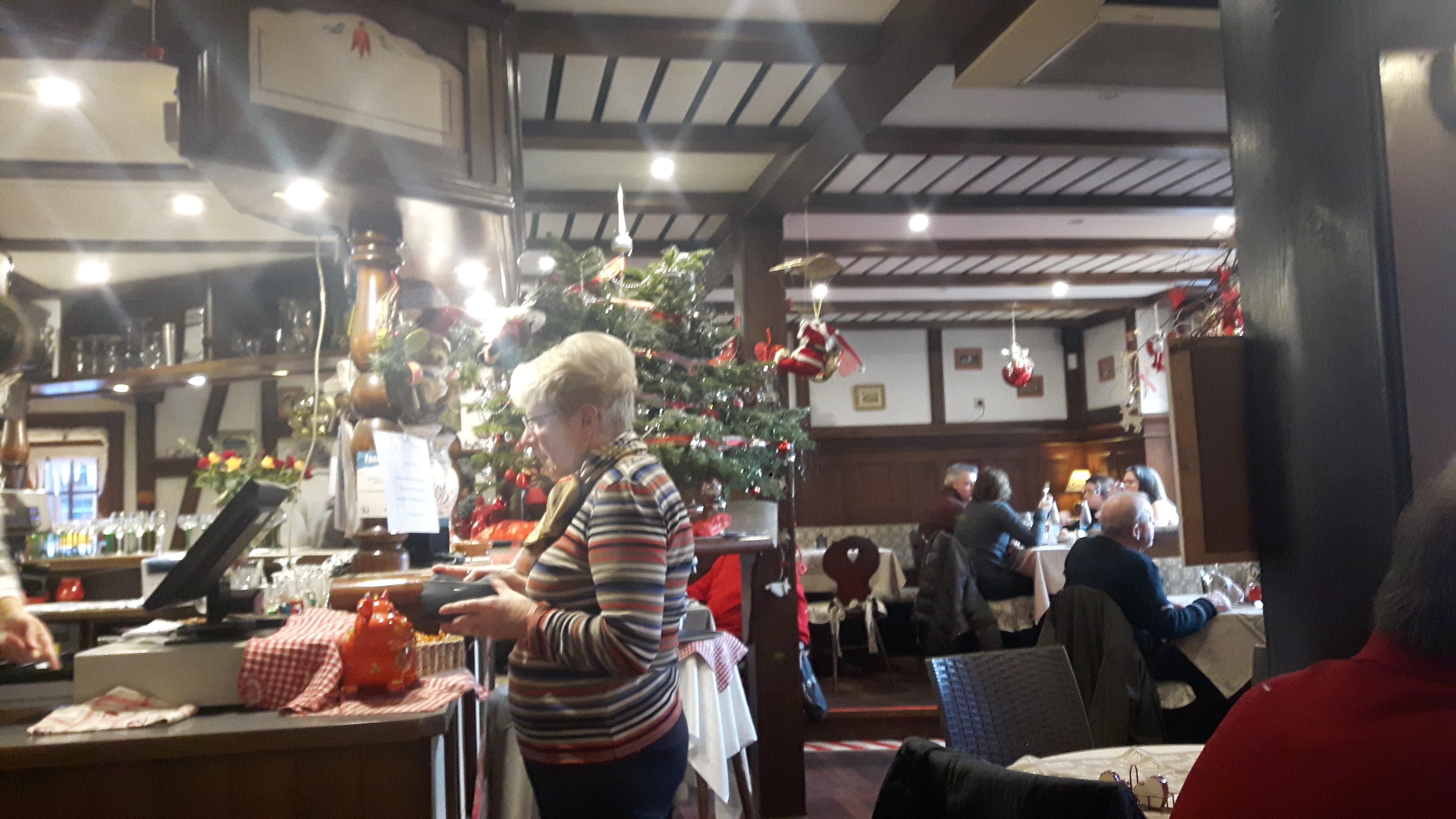 En plein marché de Noel, les places étaient chères. A l’accueil, on nous a proposé très aimablement une table qui nous avait été refusée à 20 m de là. Bonne table, service rapide malgré l’affluence. Bref un repas et une soirée qui, sans être exceptionnels, ont été agréables.