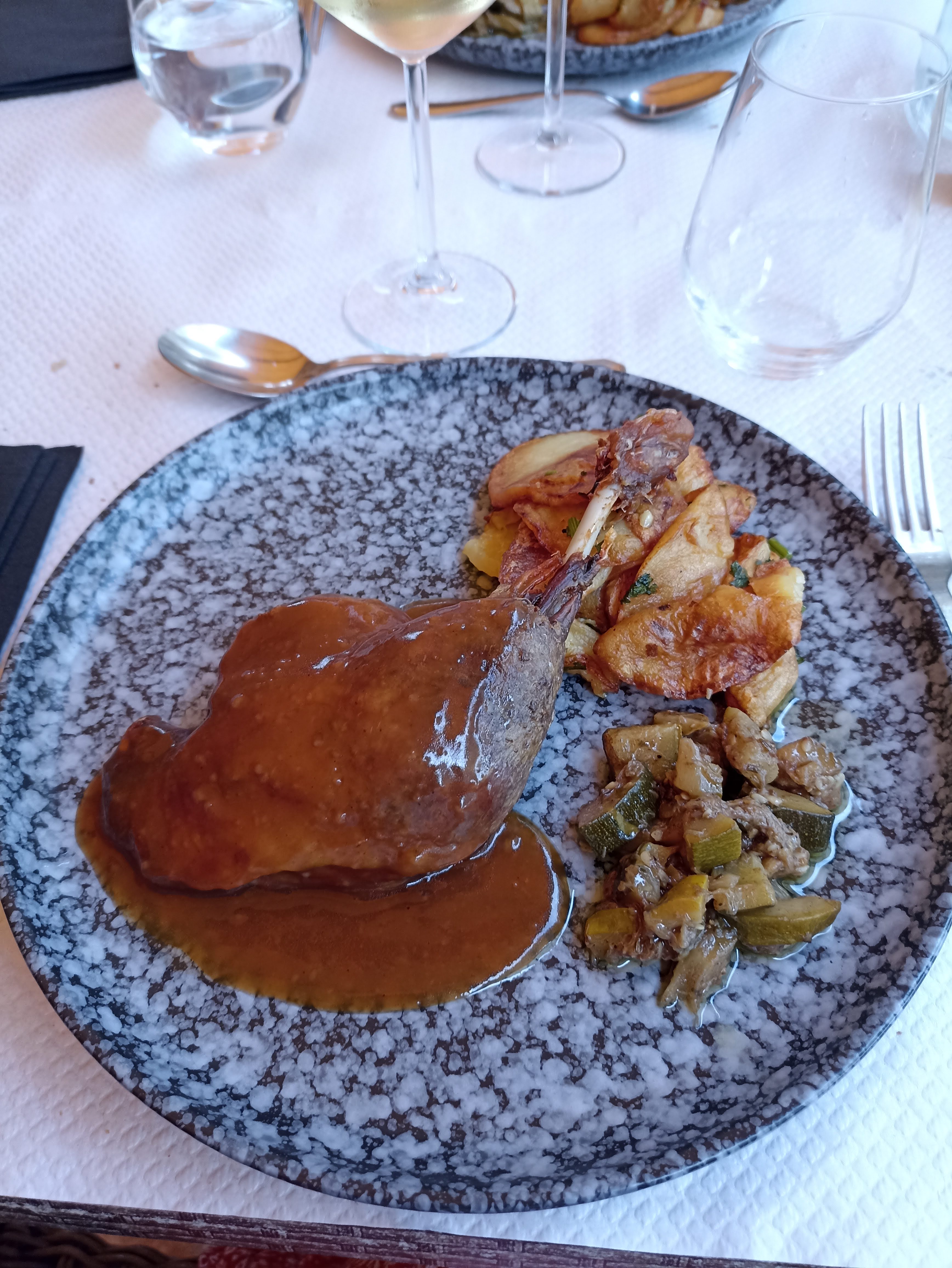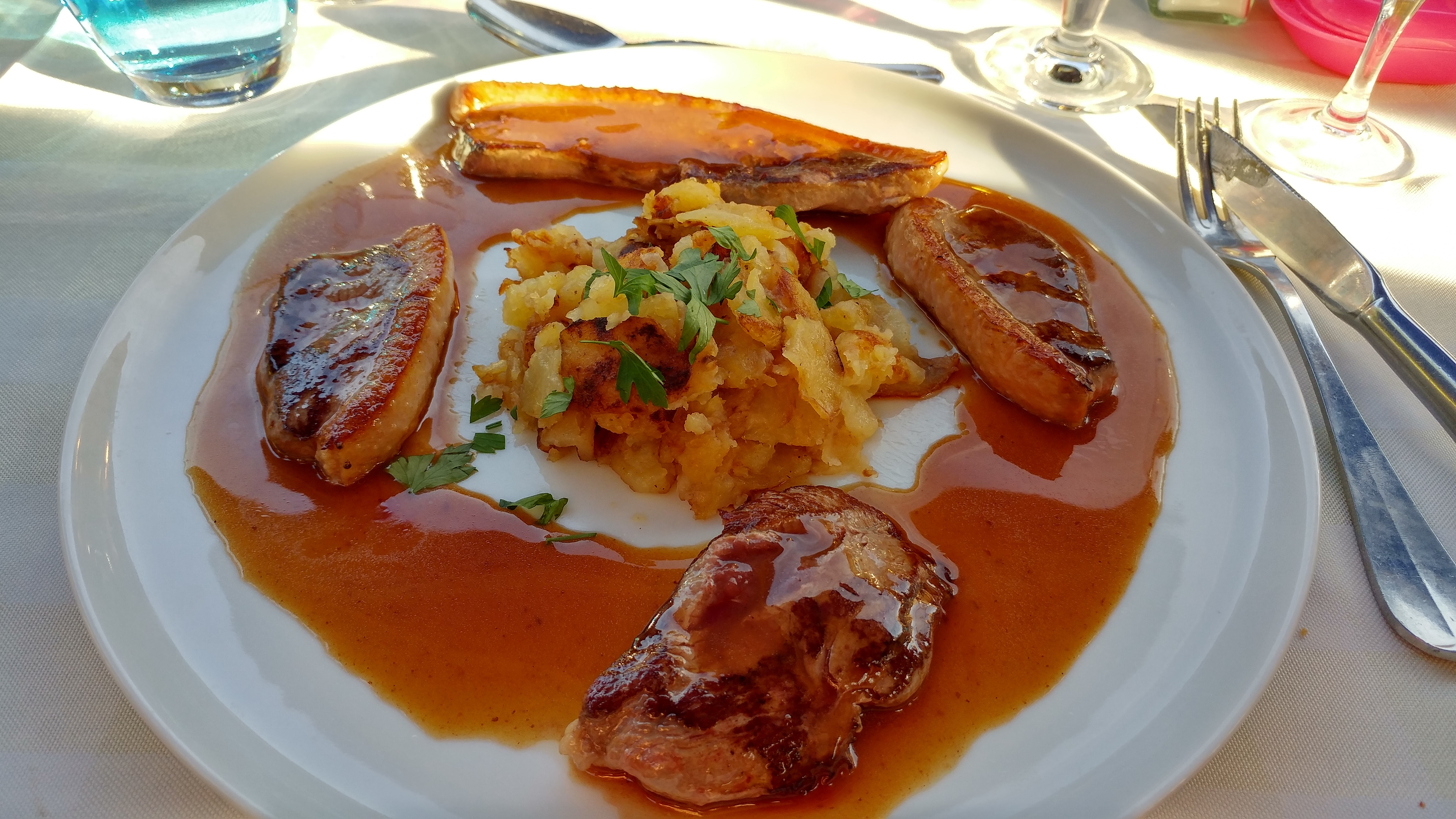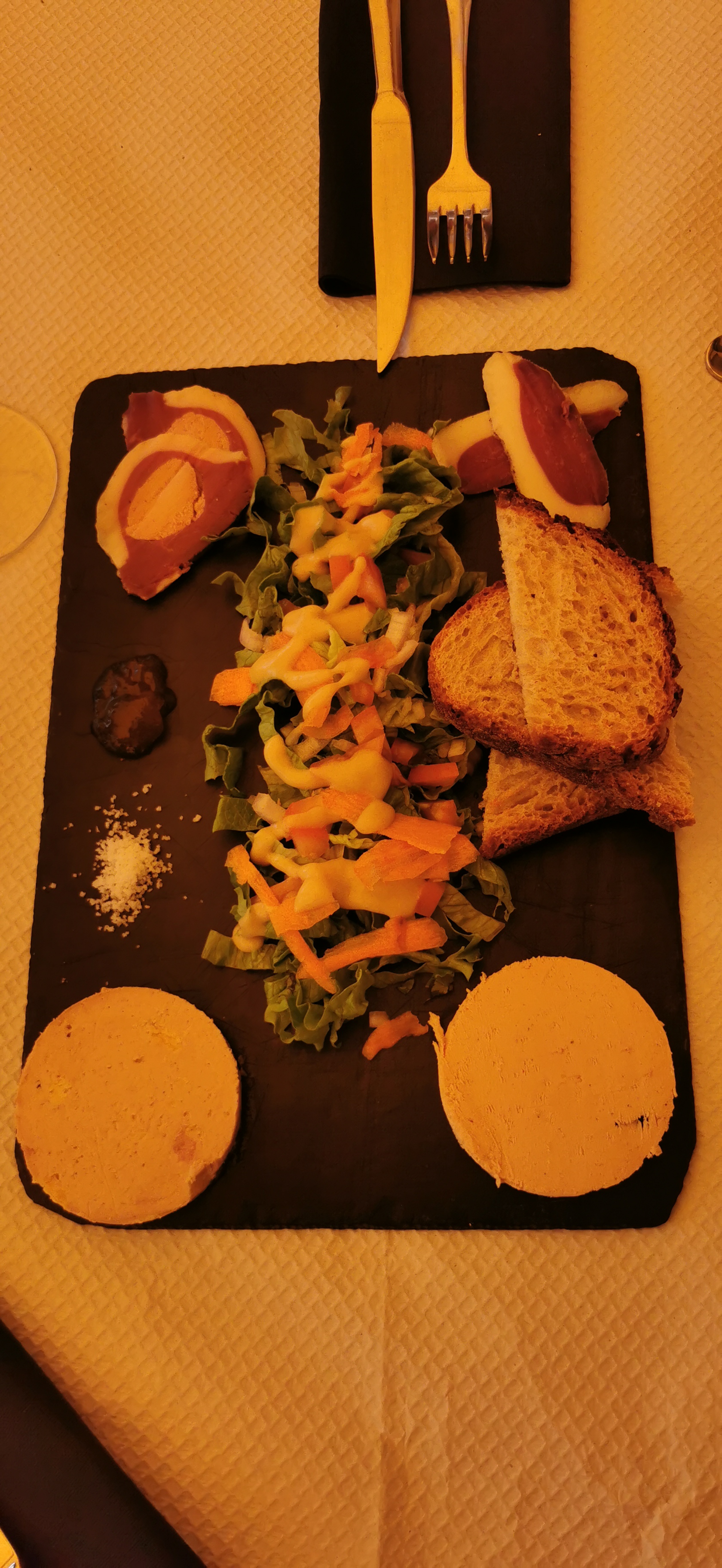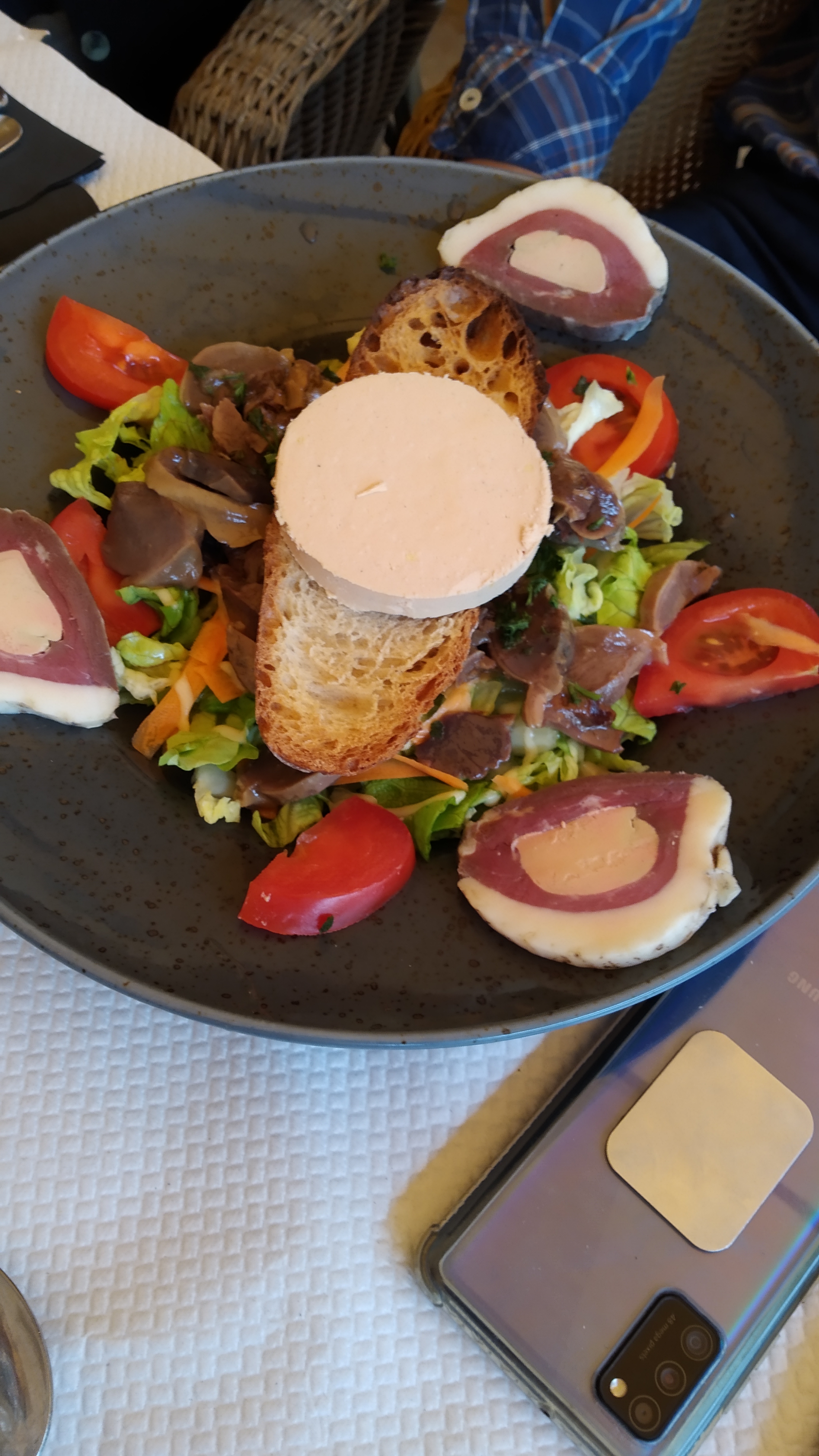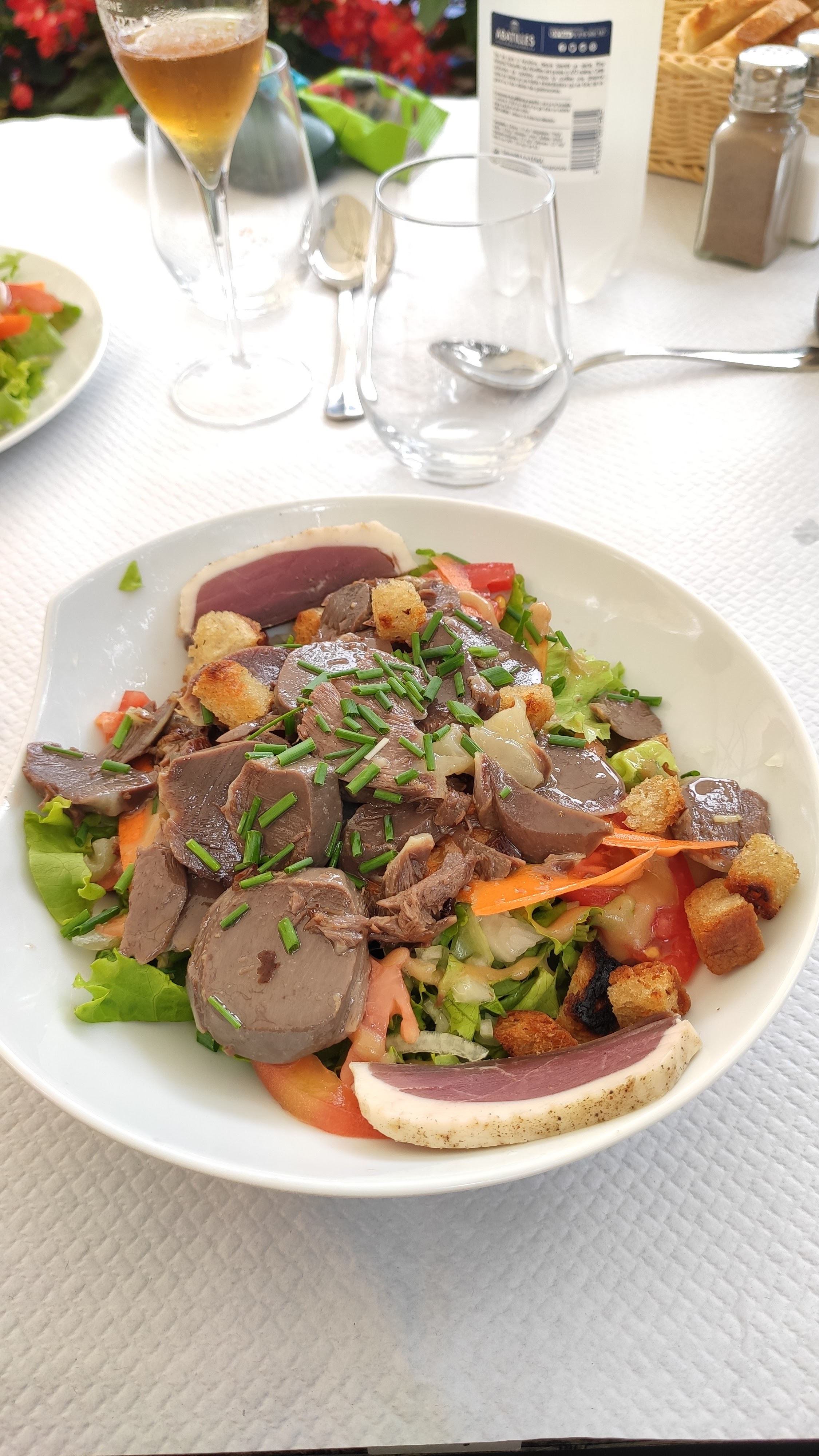 Nous avons reservé une table au dîner pour achever une journée de visites. Les avis Googles sont bons donc on s'est dit Go. Je dois dire que j'ai toutefois été déçu : des client avaient amené leurs chien qui se baladaient librement entre les tables, ce que je trouve moyen en terme d'hygiène d'autant que ma Femme y est allergique. Je reconnais que les plats sont bons, mais les quantités sont chiches. Par exemple si vous optez pour le magret Rossini qui vous coûte 5€ de plus que le magret standard, vous n'avez plus que 2 morceaux de magrets au lieu du magret complet : cela fait cher le bout de foie gras et je suis ressorti en ayant faim. Les 24€ de la salade m'ont dissuadé autant que les 50cl de bière plus cher qu'à Paris.