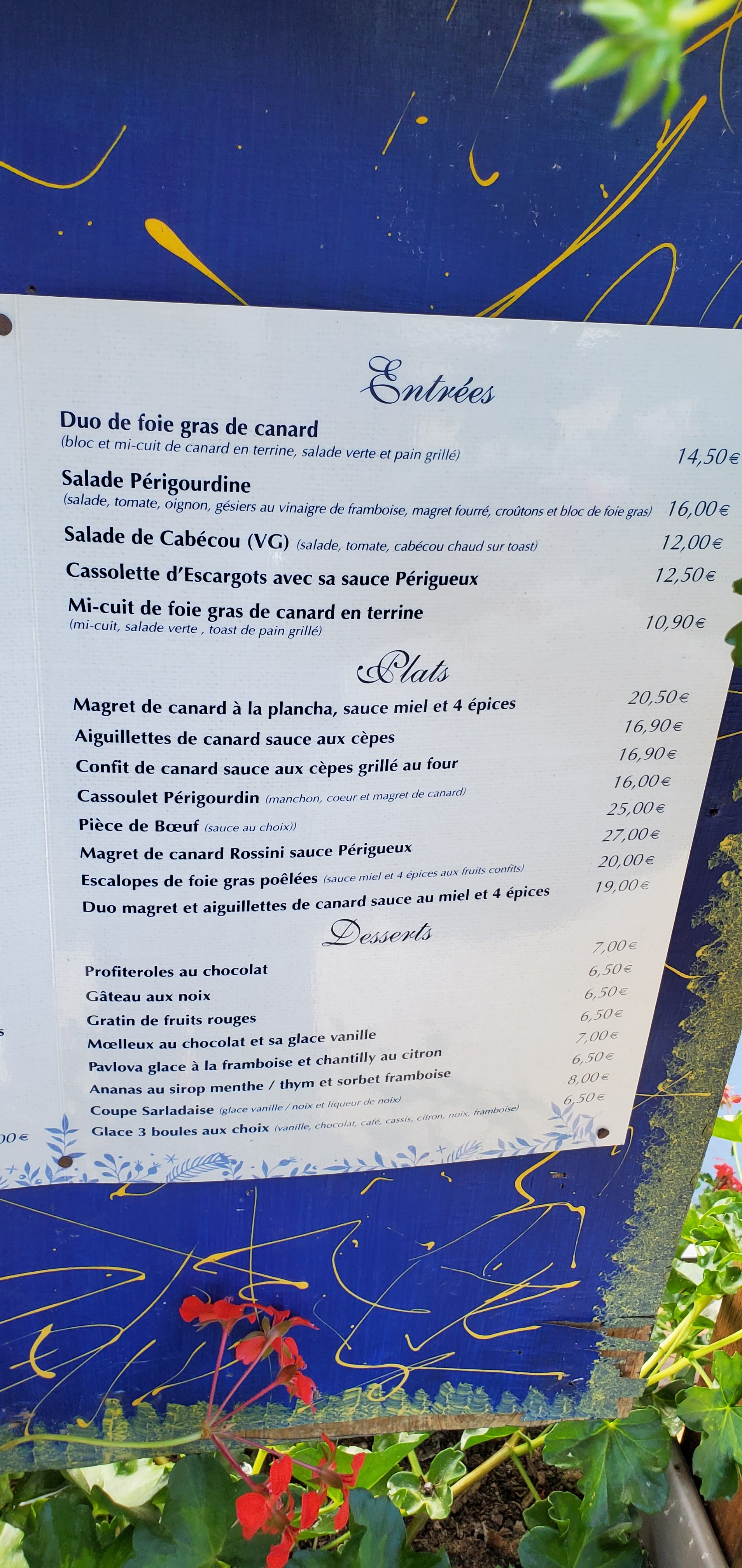 un accueil sympathique, un service au top : rapide, précis, attentif. des plats essentiellement centrés sur le canard (ils les élèvent ainsi que les oies ! donc essentiellement une cuisine maison ! ) une cuisine traditionnelle. La cuisine périgourdine est cependant assez simple et sans surprise. Mais elle était bien faite. Une mention pour la coupe sarladaise, excellente et originale !!!