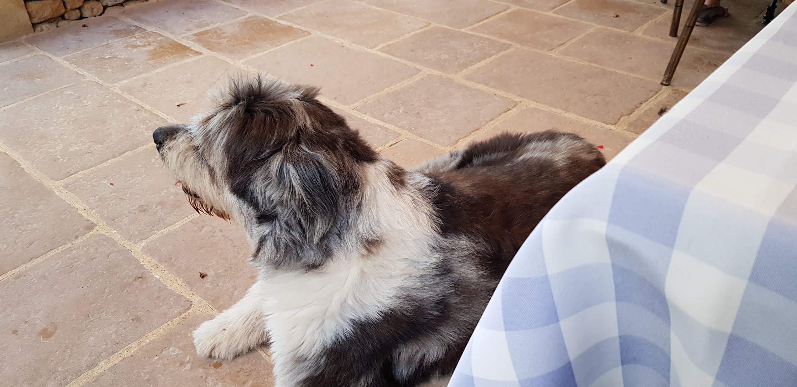 La présence de 4 chiens qui passent sous la table, qui bousculent tout qui salissent tes vêtements, inacceptable pour nous!!! Dommage
