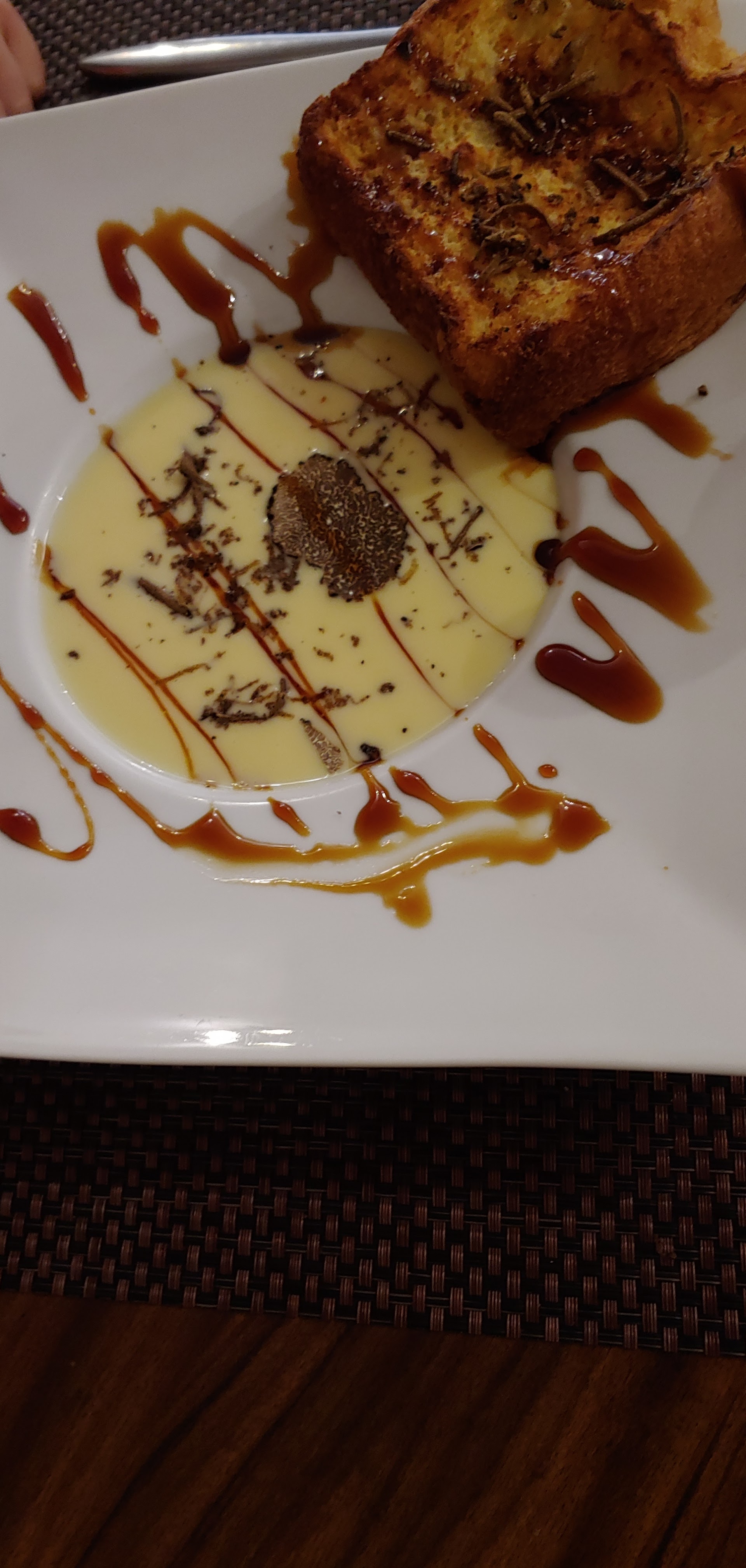 Posté le 23/07/2021 à 18:43"Super moment!!!! Un régal des papilles, brouillade à la truffe, pizza, linguine, pana cotta et crème brûlée à la truffe, une découverte culinaire au top 😊 en espérant la prochaine fois le moelleux au chocolat à la truffe et toujours avec une playlist de musique française au top 😉 même le vin rouge était super! Vraiment rien à redire service au top en salle et en cuisine ! Amateurs de truffe vous pouvez y aller les yeux fermés vous ne serez pas déçu !!! Vivement d'y retourner 😎"