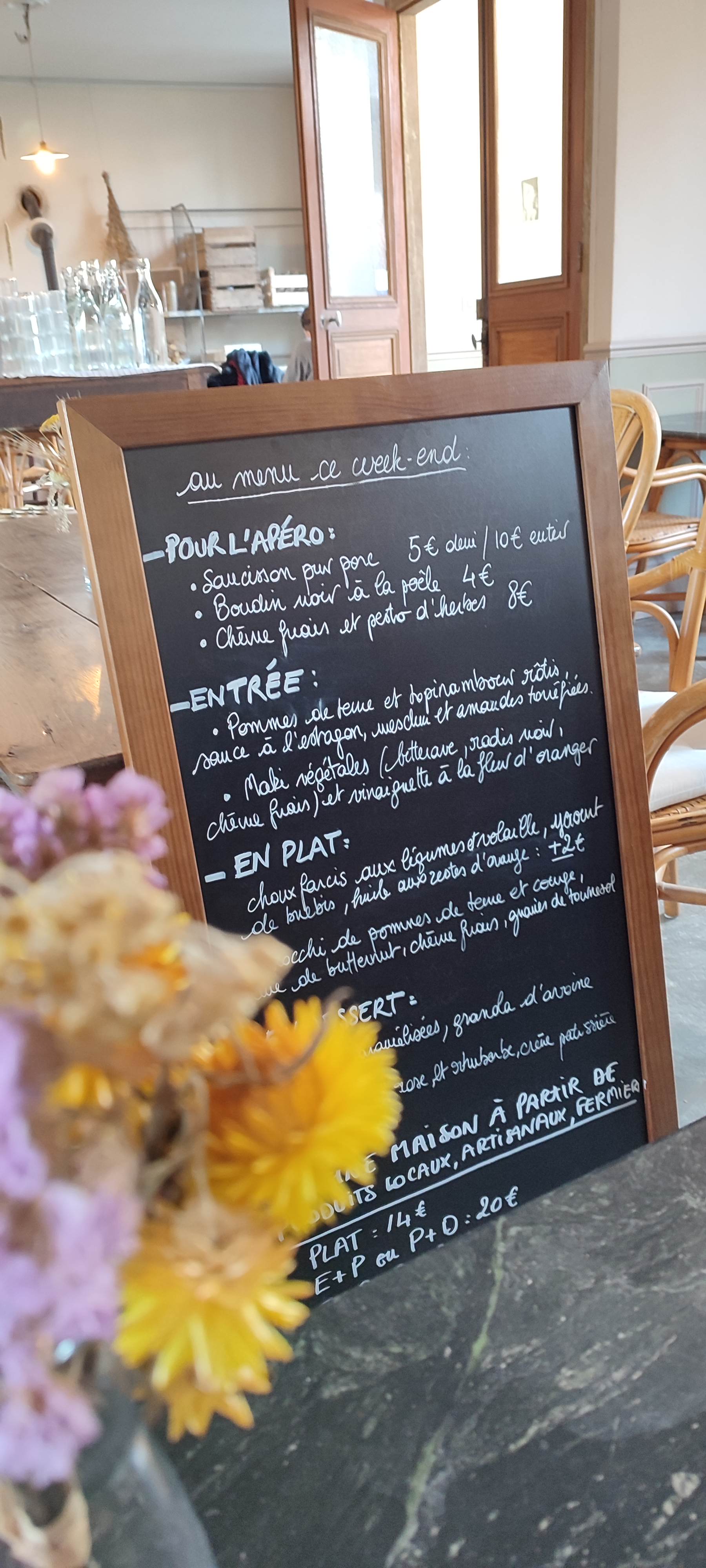 Ce commentaire très sévère aurait mérité que vous en parliez au moment de votre venue, ce qui nous aurait permis d’expliquer notre démarche (pourtant affichée !) : nous achetons en direct à des producteurs et artisans locaux et mettons un point d’honneur à ne pas négocier les prix pour que ces gens vivent de leurs métiers. Pour une entrée et un dessert autour de 5€ et un plat autour de 12€, nous garantissons un prix juste pour une cuisine 100% fait maison. Maintenir des petits commerces de bouche dans les villages est un défi compliqué à relever, surtout en basse saison. Votre commentaire a affecté l’équipe tout autant qu’elle impacte notre visibilité.