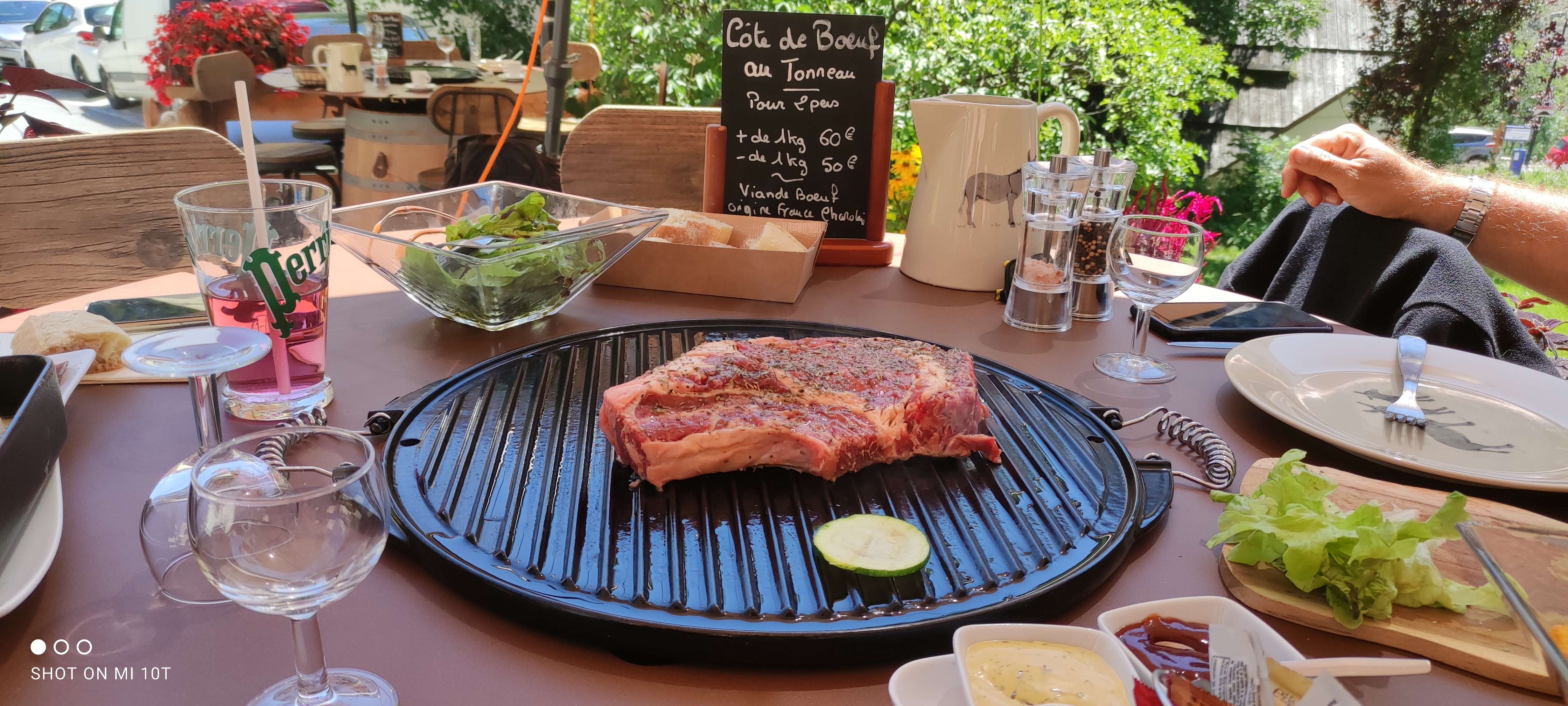 Alors encore une fois si vous arrivez dans un village pommé dans la montagne avec 1 restaurant.le mien qui me démène pour faire au mieux avec comme employé 1 personne en cuisine et moi même. Tout est faire minute avec des produit frais donc cela prend du temps et effectivement c'est long mais habituez vous a ça monsieur car vu comme le monde tourne je ne serai pas le seul endroit où vous allez atendre et la table dont vous parlez les gens se battent pour les avoir ce son des table grill tonneaux très agréable mais la prochaine fois je vous mettrais sur une table de pique nique je pense que vous serez mieux. A bientôt