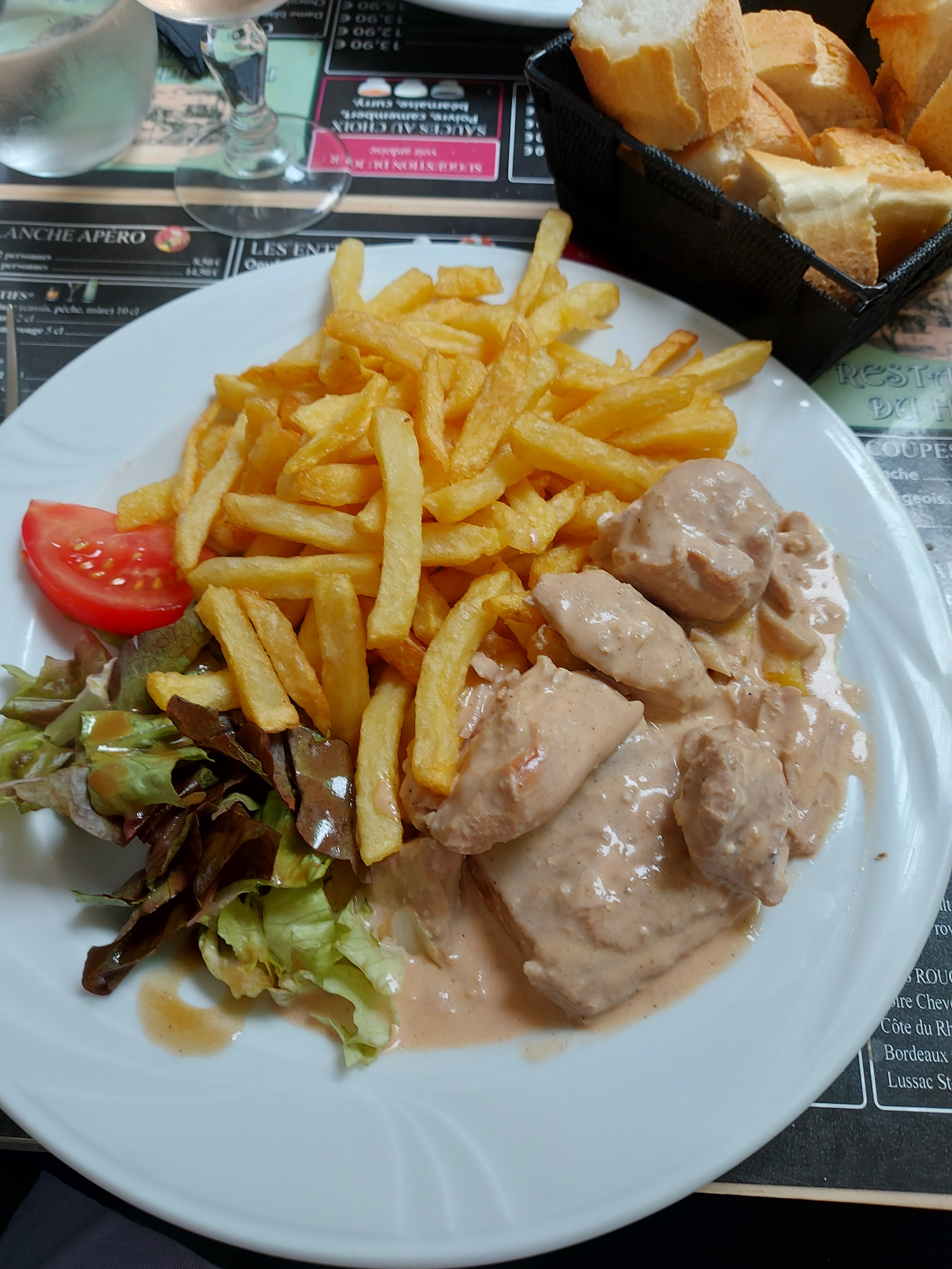 La salade était bonne mais le steak n'était pas le meilleur. Mais le service était bon même si le monsieur ne parlait pas anglais, il a fait un effort pour aider.