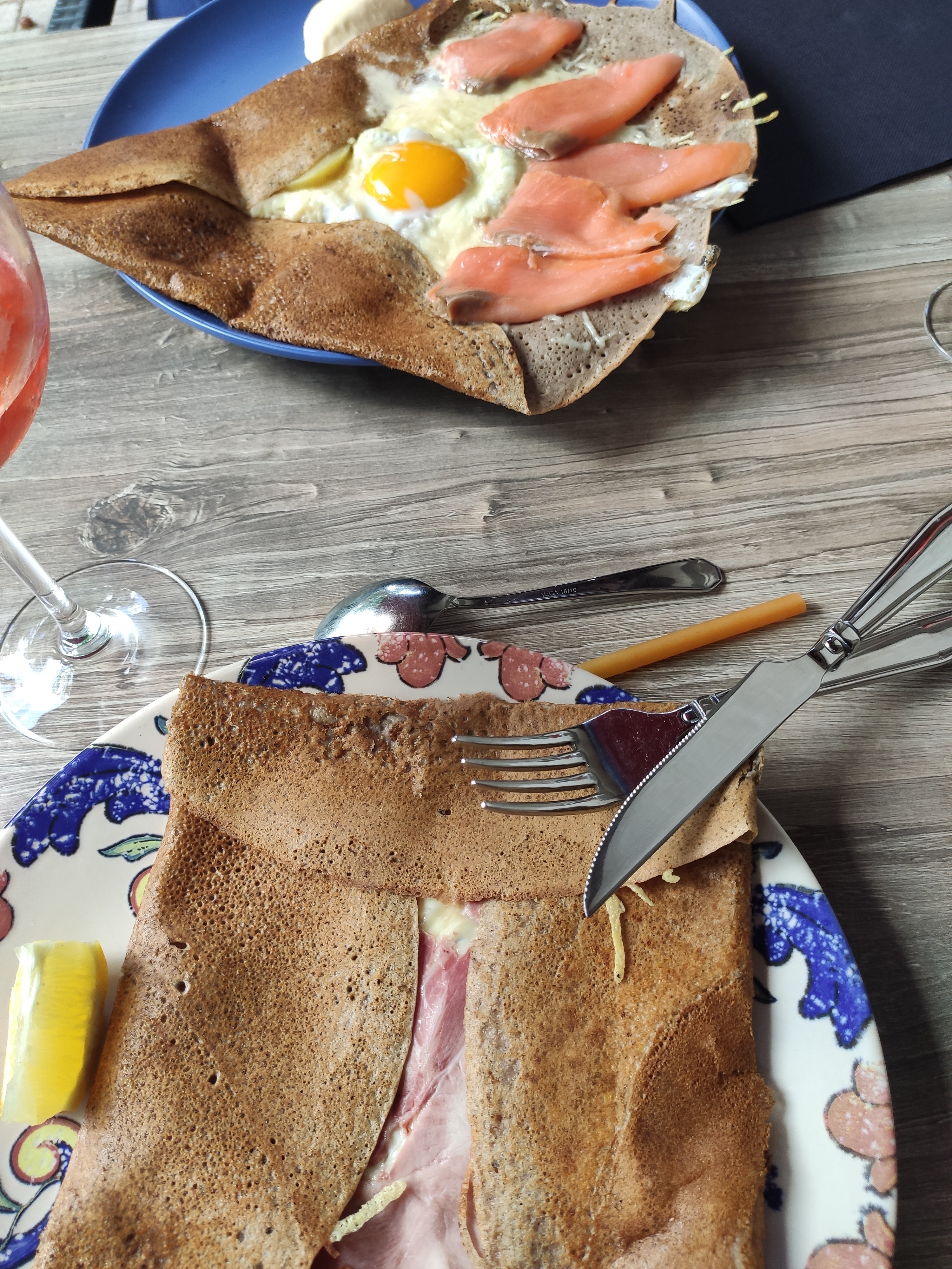 Très bonne crêpe repas. Dommage que nous n'ayons plus faim pour goûter les crêpes sucrées.