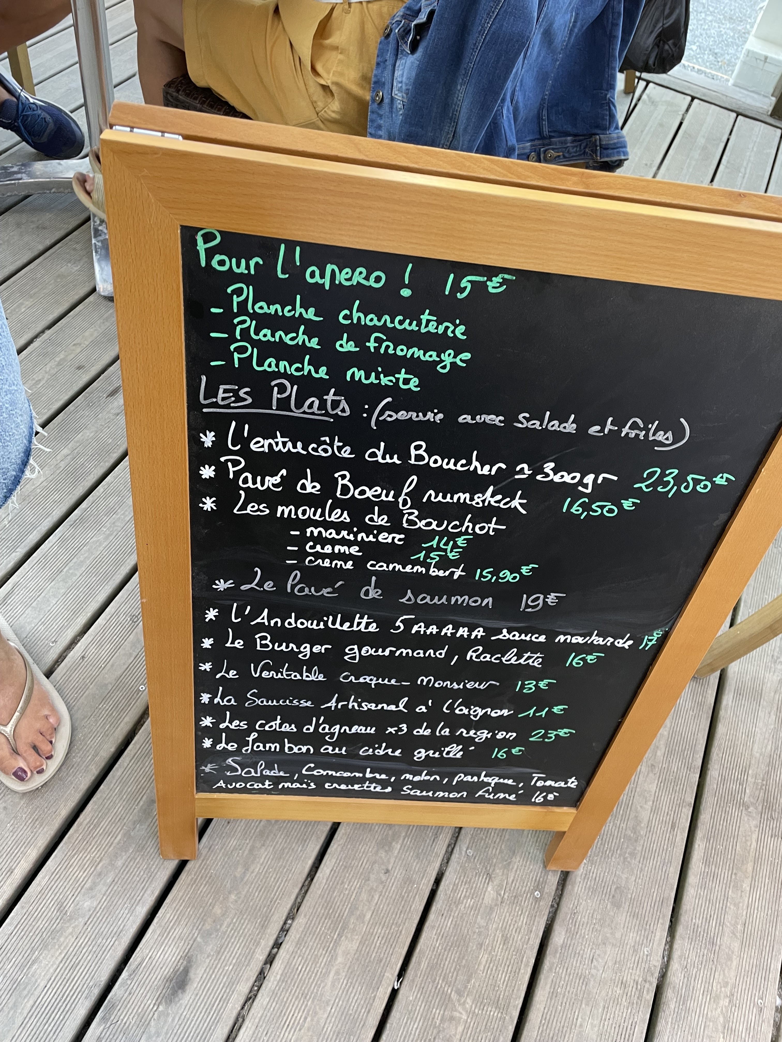 Posté le 17/08/2023 à 22:04"Arrivée un dimanche midi, ma déception fut grande en commandant d'abord, pour l'apéro, plus de bière à part de la 1664 , pas de jus d'orange, pas de cocktail maison(on en a pasfait aujourd'hui!), au moment du repas le pavé de bœuf demandé saignant est arrivé bien cuit et en plus plein de nerf , et pour le dessert , rien à part des glaces dans des vieux bacs qui n'avaient pas l'air tout frais Passez votre chemin , il y a tant d'autres adresse à découvrir"