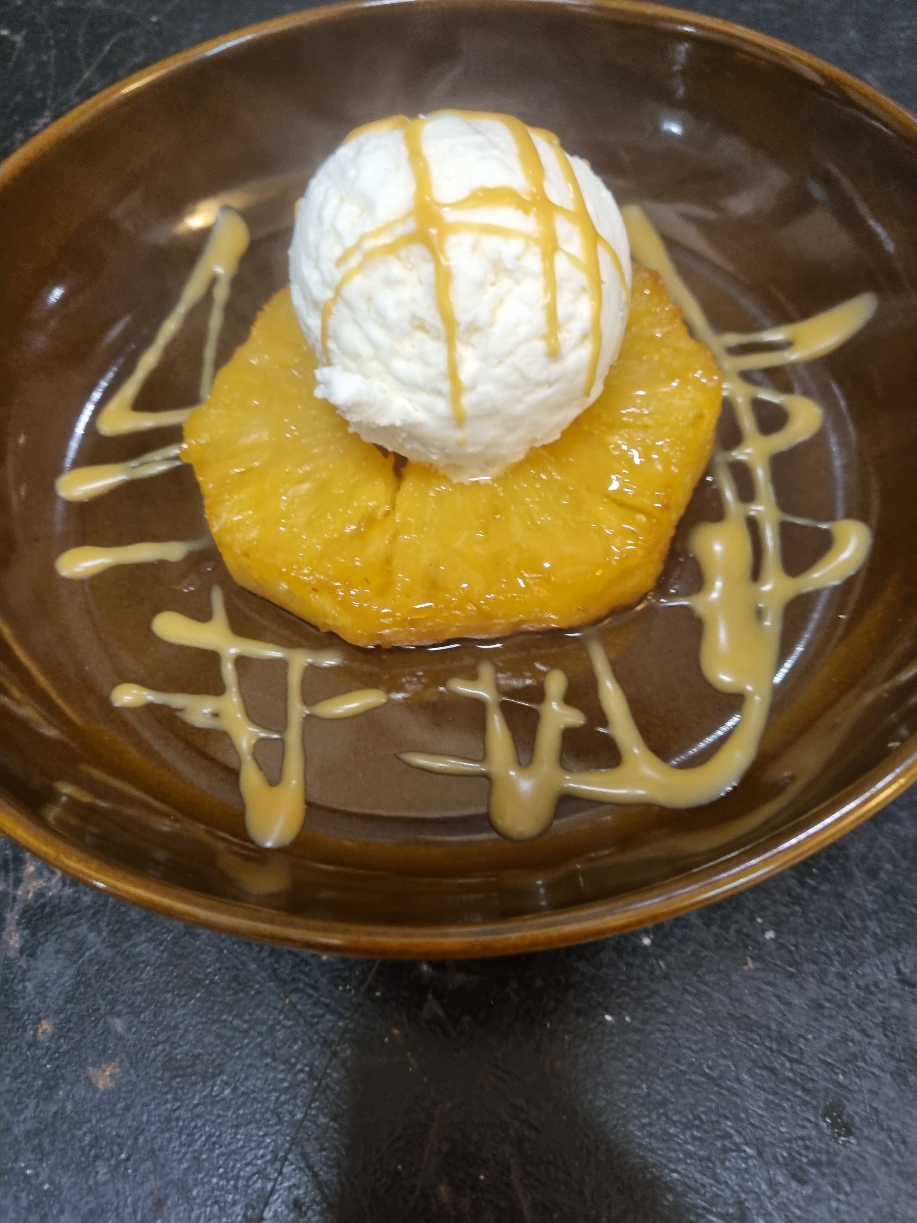 Cuisine très bonne L ananas rôti avec sa boule de glace coco un régal Serveuse très sympathique