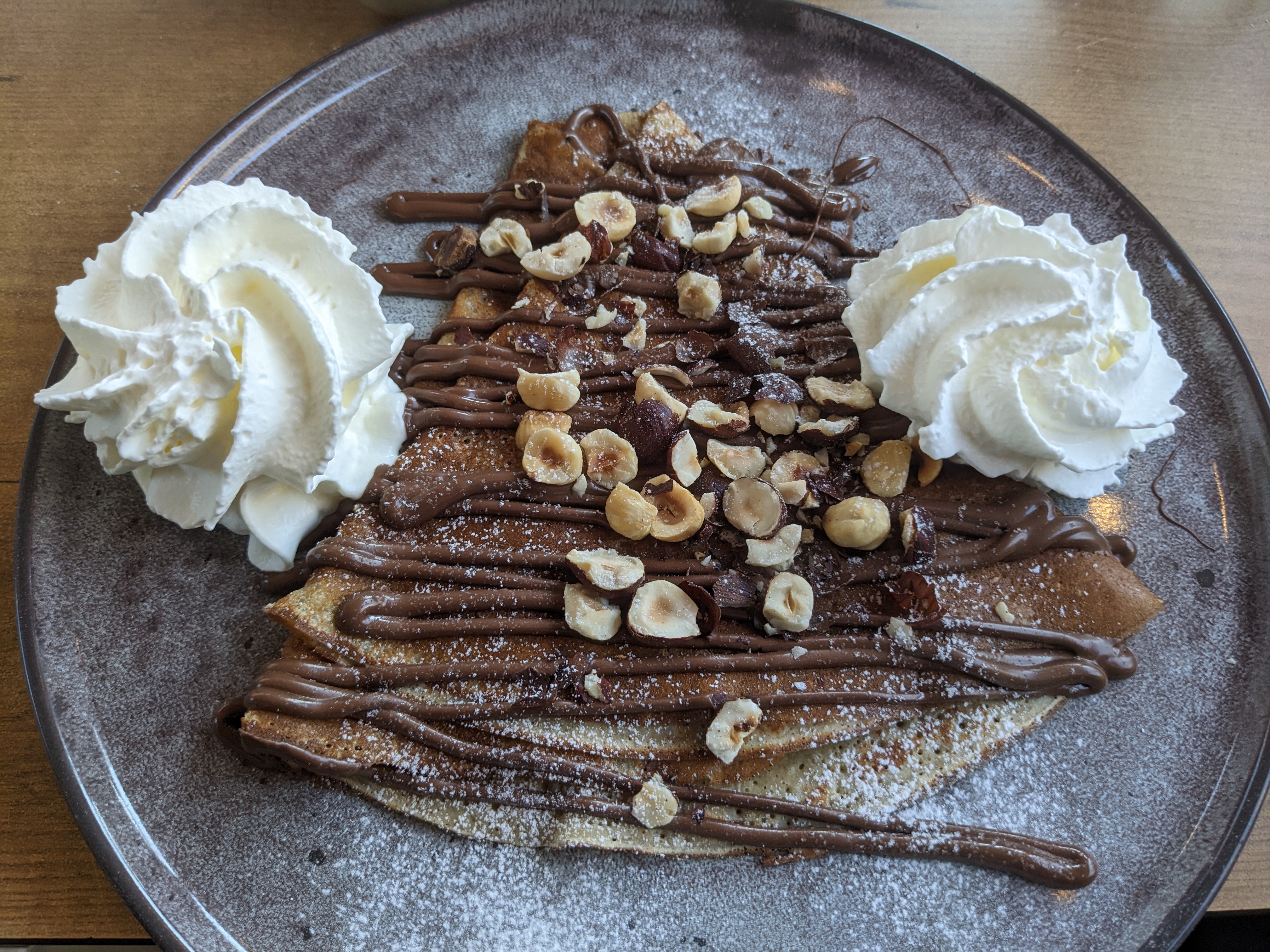 Le moccachino (une nouveauté pour Len K.) était très bon. La crêpe Bahamas également (banane, chocolat fondu maison ou Nutella au choix, noix, banane, chantilly). Je recommande vivement. L’équipe est sympathique et la terrasse bien située.