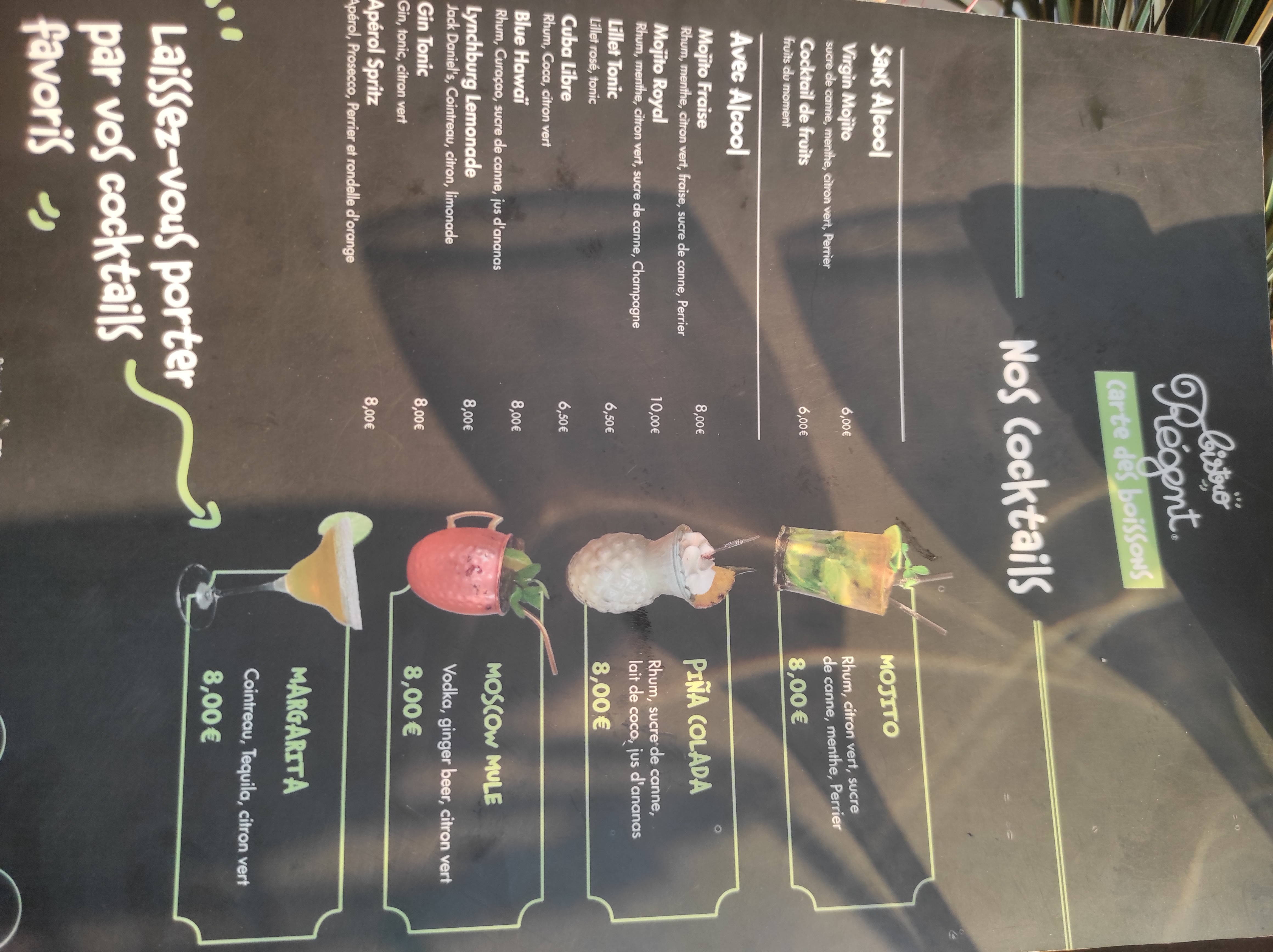 J’adore manger au Bistro Régent de divers ville quand je suis en voyage mais pour celui-ci j’ai était un peu déçu notamment pour les cocktails ou y’a même pas la moitié de sirop à l’intérieur…. Le verre et blinder de glaçon se qui donne l’impression d’avoir beaucoup de boisson….. Sinon à part sa la nourriture et très bonne Rapide à servir Personnelle très agréable Je recommande sauf pour les cocktails.