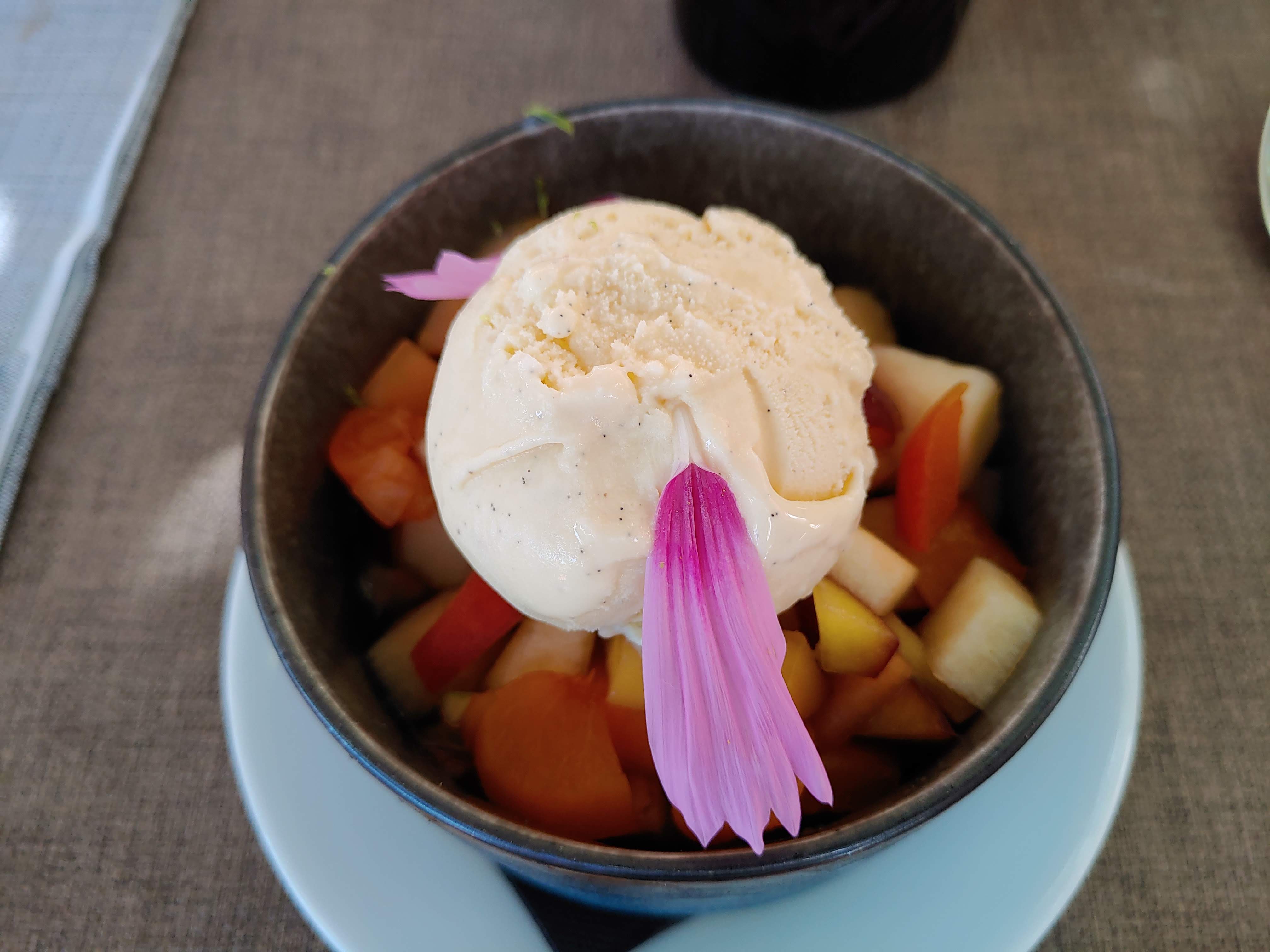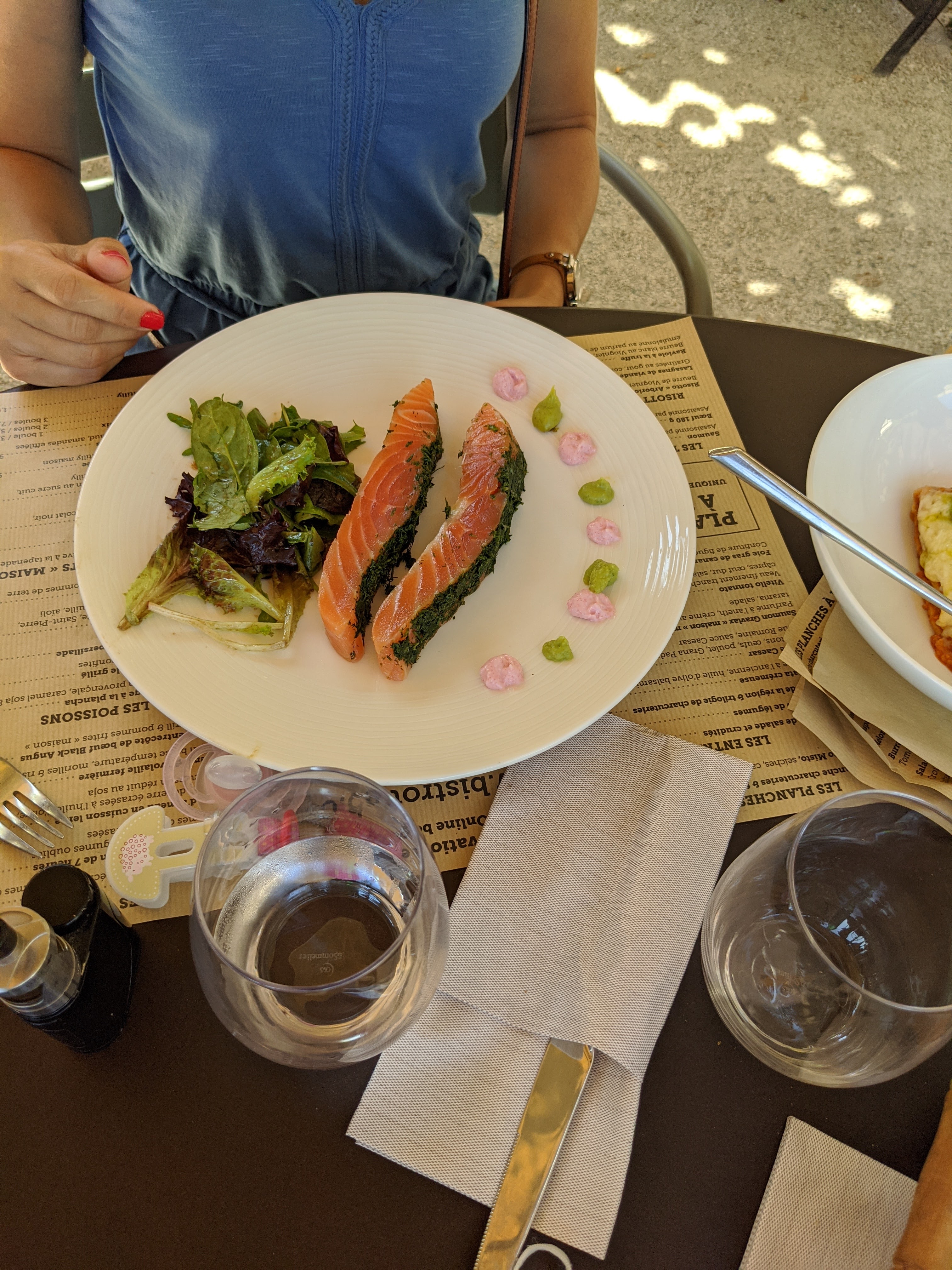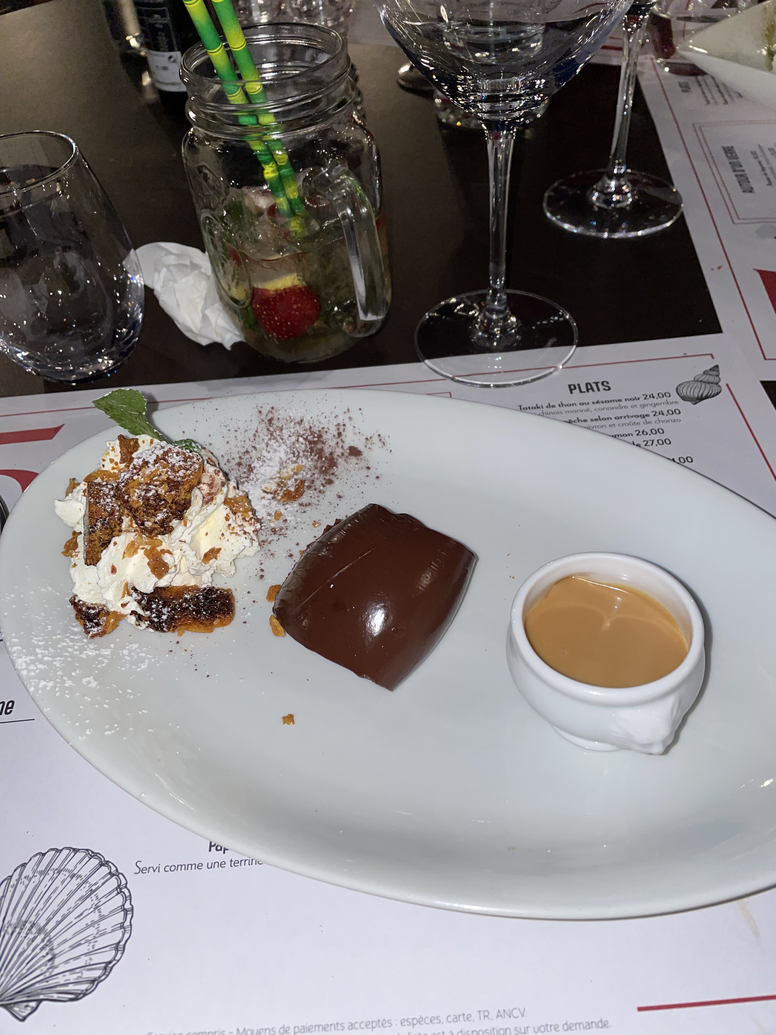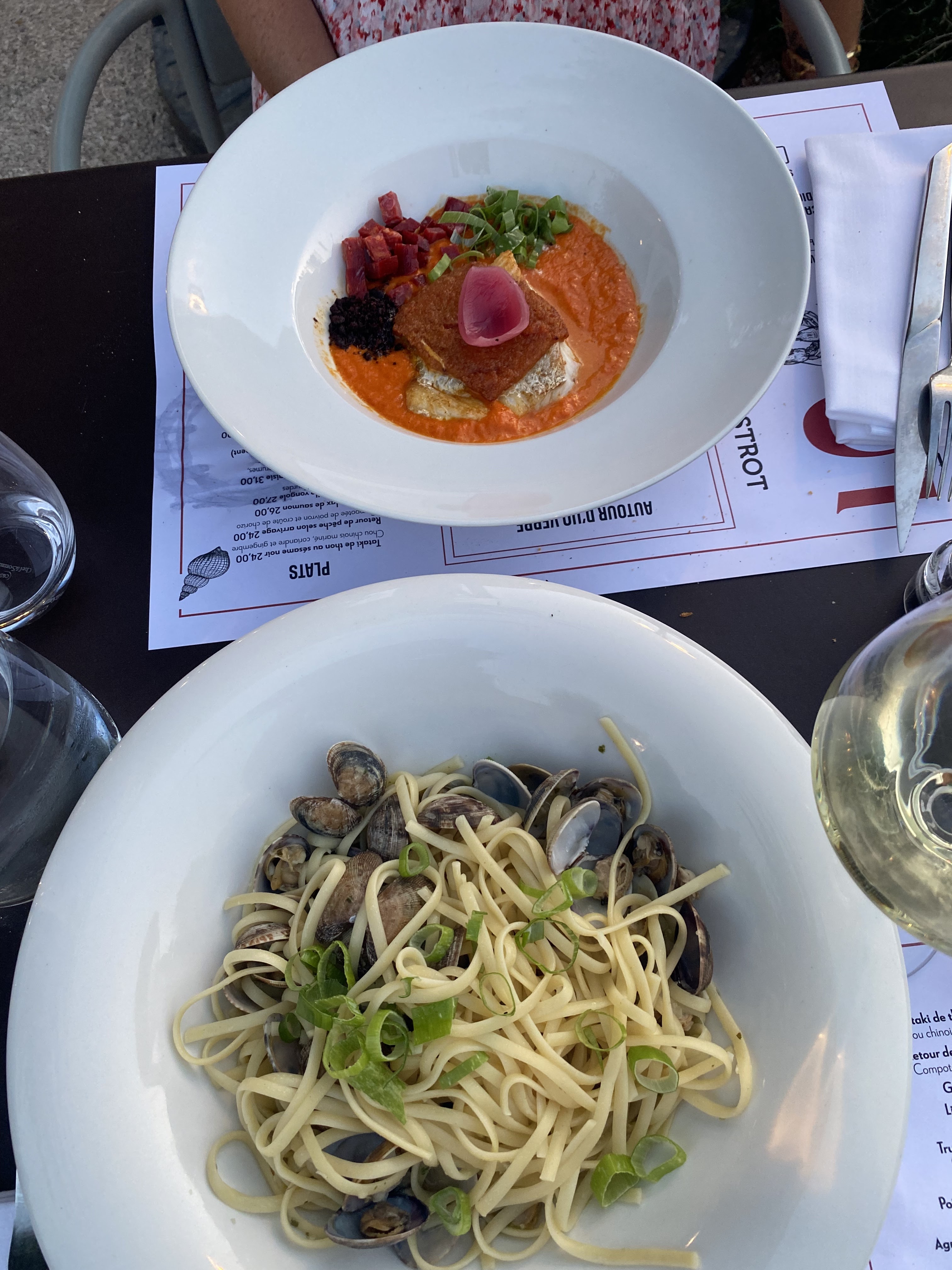 Déjeuner en terrasse. Service long. La terrasse est occupée à moitié. 6 serveurs. Ils sont tous passés à notre table mais personne n’apporte l’apéritif ou le plat ou ne prend la commande ou les desserts… On a failli prendre un apéritif pour attendre l’apéritif. 😂Heureusement que la vue est magnifique. J’ai pris des ravioles truffées; bien.