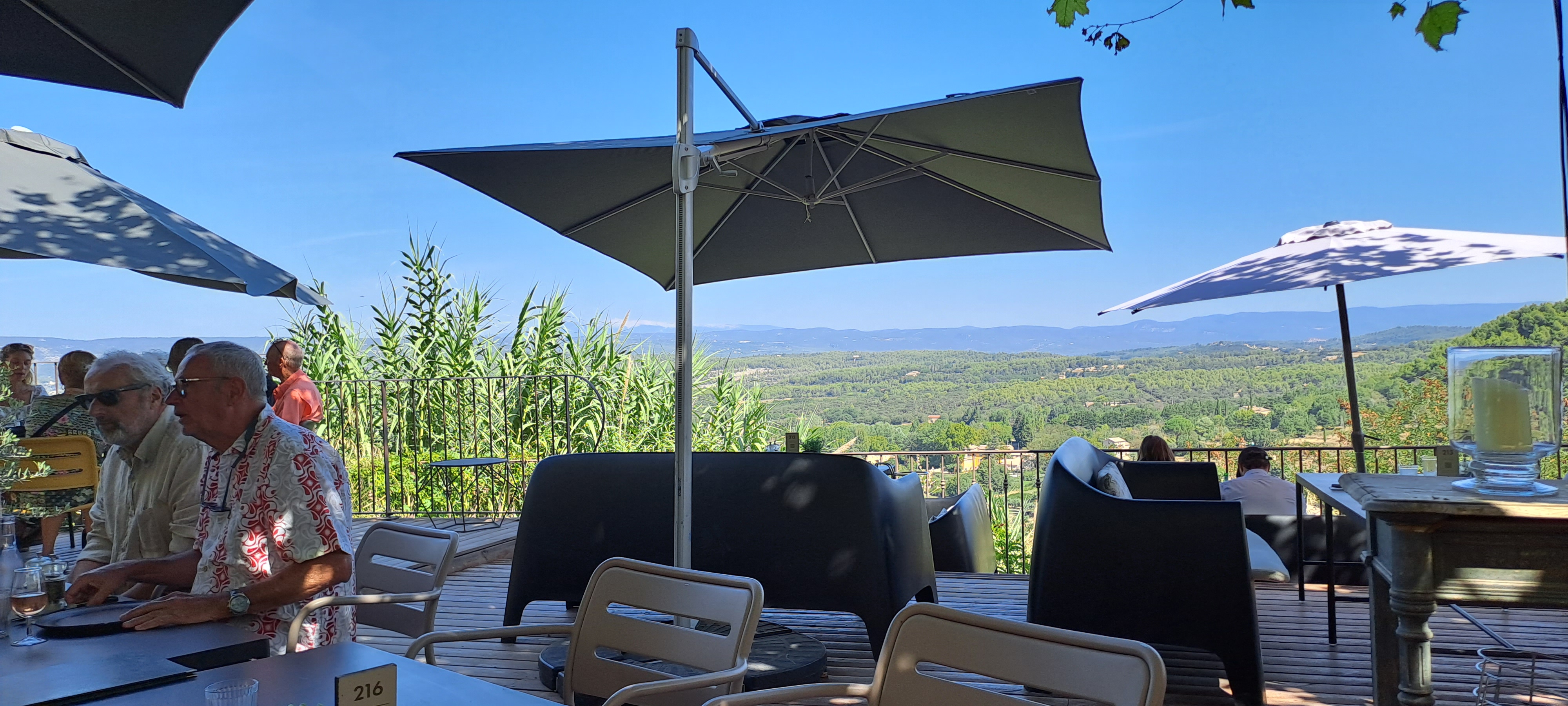 Très belle terrasse avec une splendide vue. Par contre, le restaurant n'est pas à la hauteur. La nourriture est à peine digne d'une cantine scolaire. Le service n'est vraiment pas bon, on nous a apporté les entrées en même temps que les plats principaux. Le chef de rang nous a offert un verre de vin pour compenser. Geste apprécié. Mais, après nous avoir débarrassé, personne n'est venu prendre notre commande pour les desserts. Résidents à Ménerbes, ce site magnifique mérite mieux.
