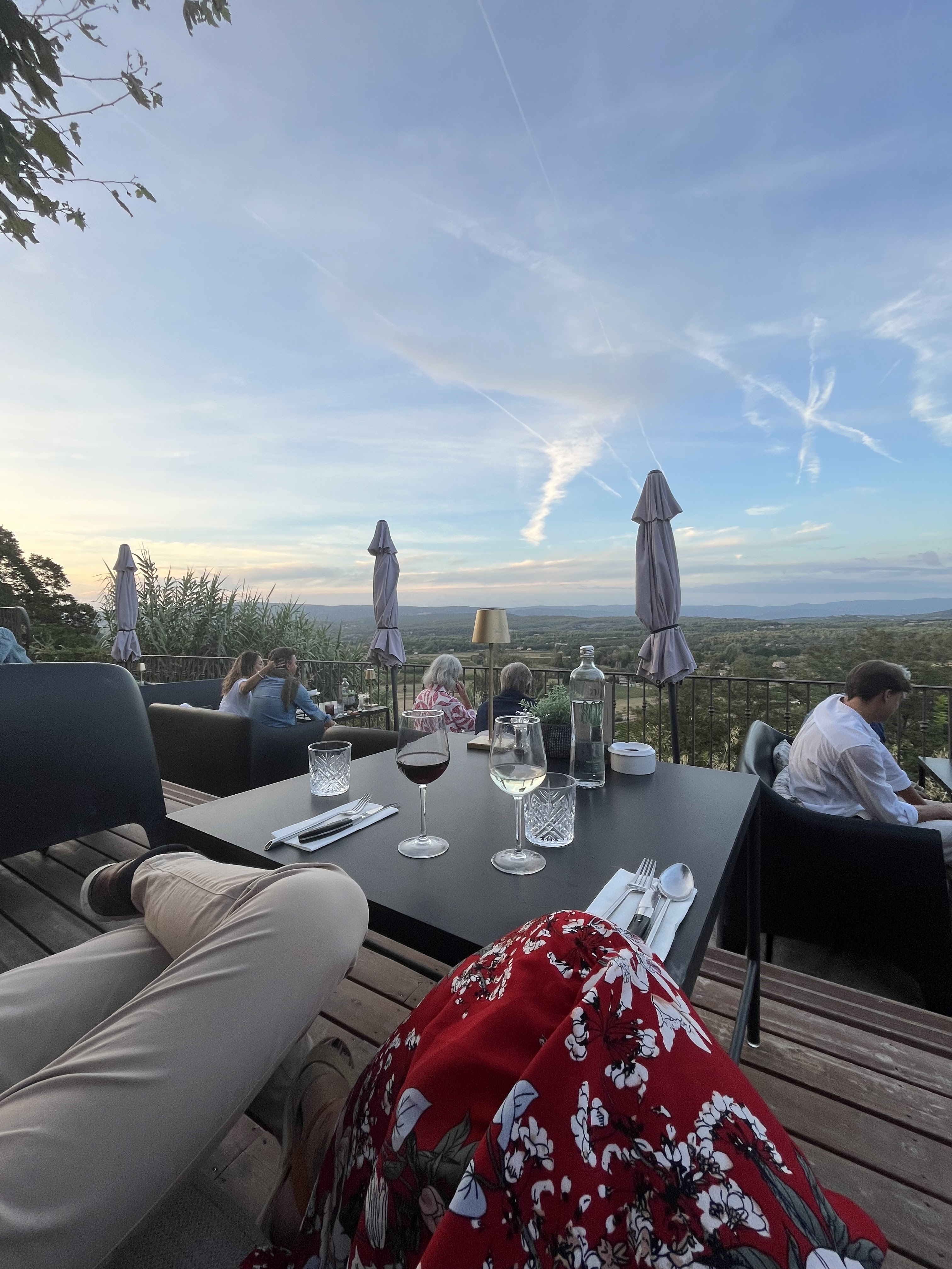Super soirée dans ce restaurant au cadre magnifique avec vue sur le Luberon et ces vignes. Personnels très sympathiques et repas délicieux.