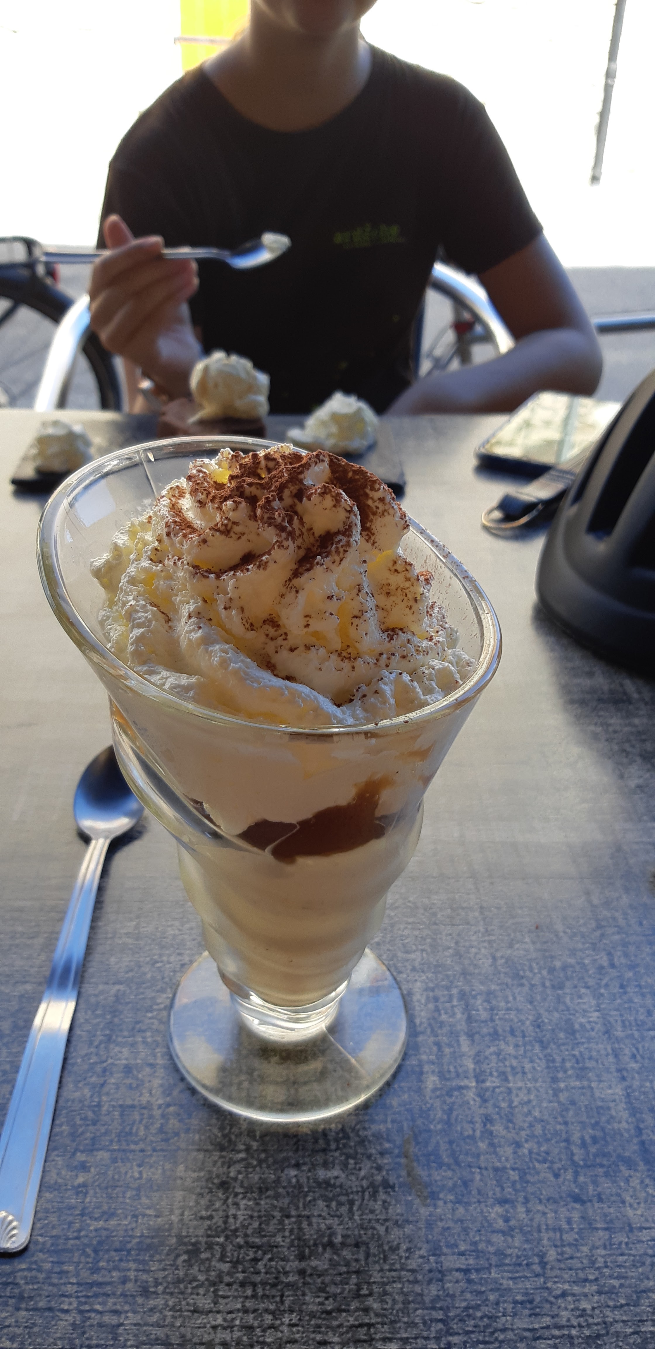 Serveur sympathique. Très bon goûter : glaces et gâteau