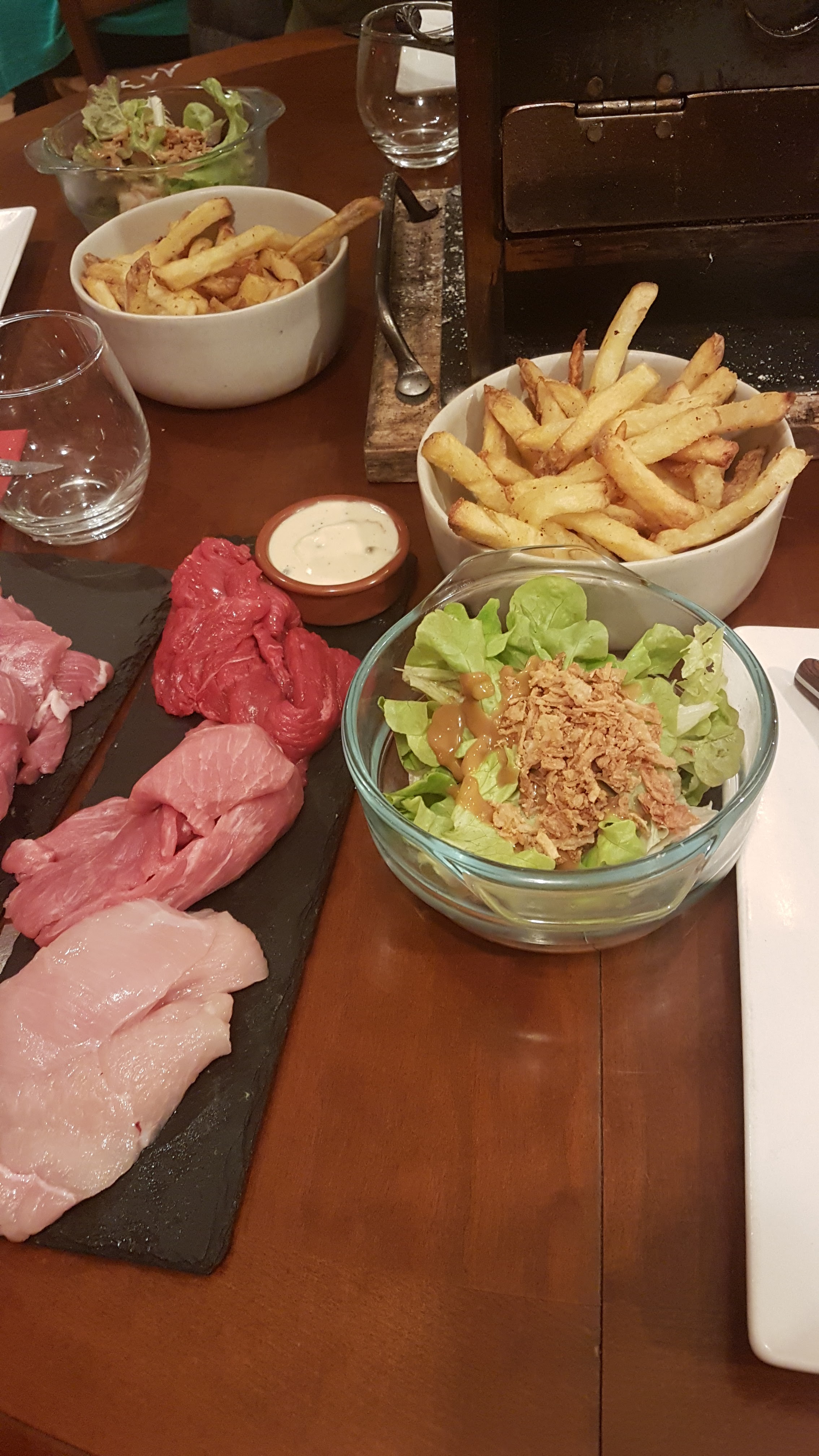 Arrivée à 20h, servie à 22h … c’est dommage car la fondue bourguignonne et les brasseros rien à dire, nous n’avons pas pris de dessert par peur de l’attente