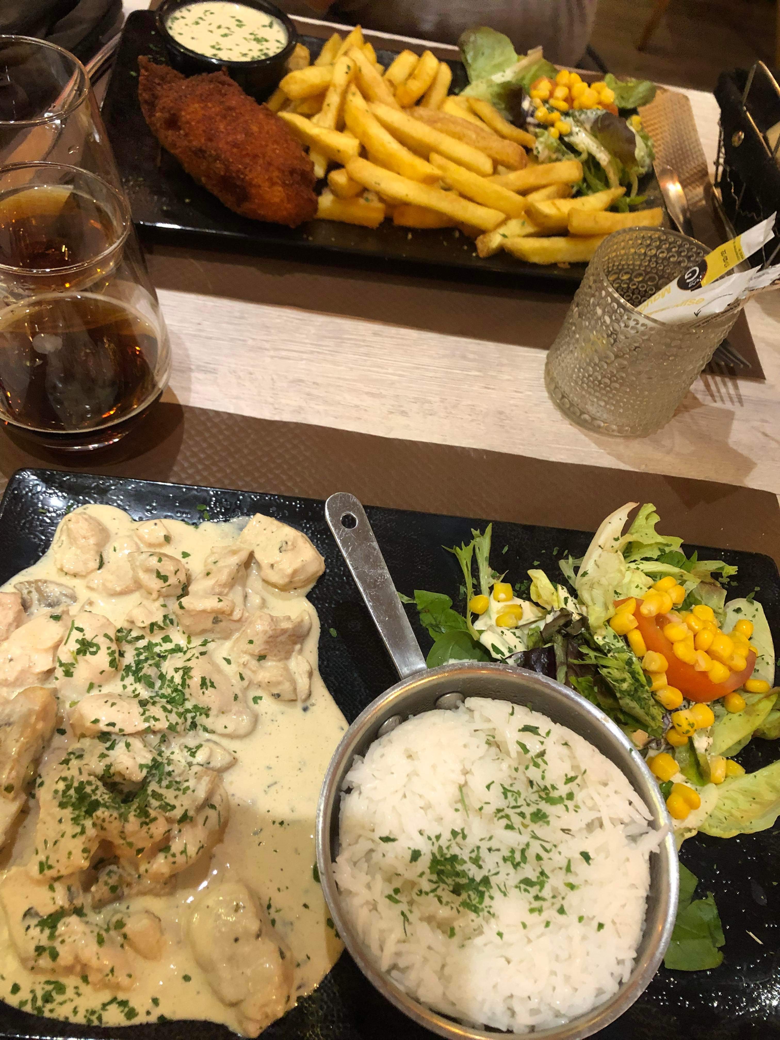Le restaurant est très sympathique. Le personnel est accueillant et souriant. Nous avons trouvé qu’il faisait très chaud à l’intérieur par contre. Concernant le plat, le poulet était bon mais un peu sec. De plus, ma copine a trouvé un poil (de barbe je pense?) dans son plat. Nous avons par ailleurs beaucoup patienté pour être prises en charge après le repas, pour le dessert.