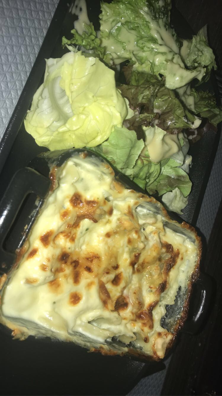 Gratinée de ravioles aux saint Jacques à tomber. Personnel très sympa