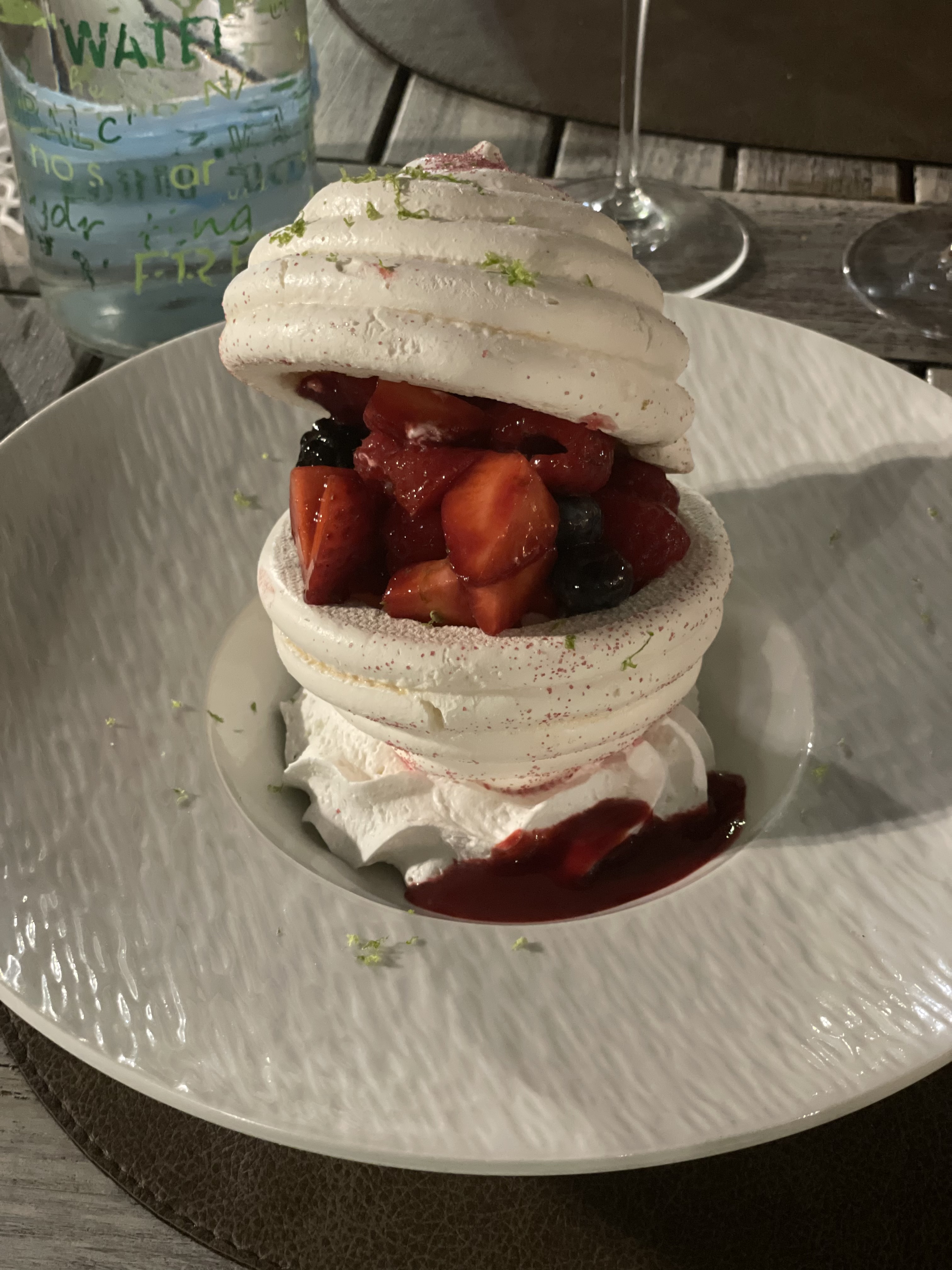 Anniversaire de mariage : ( en couple) Réservation établie via le site la fourchette. au vu des nouvelles conditions sanitaires nous sommes accueillis par Cédric qui contrôle notre pass avec une application smartphone 👏👏. Une fois à table et l’apéritif proposé : coupe de champagne et 2 verrines . Nous choisissons : -entrée : un ceviche de dorade royale aux agrumes. Des asperges poêlées et un oued bio poché et son crémeux de parmesan . Dès l’entrée le niveau est placé : non seulement les produits sont de qualités et de surcroît très bien travaillés - plat: crumble de filet de loup au parmesan et une entrecôte d’argentine . Les plats sont servi dans de très belles assiettes , et vous êtes émerveillés par le dressage de mets façon gastronomique. De très bons produits encore une fois très raffiné et très copieux. Je tire mon chapeau pour le crumble parmesan qui est excellent( je ne mange habituellement pas de parmesan👏👏👏) fin et subtil . Une fois l’entrée et le plat dégustés , vous hésité à prendre un dessert et pourtant la carte vous appelle: hummmm🤤🤤. -dessert: un Pavlova aux fruits rouges et un croustillant citron et framboise . Les fruits rouges sont frais le coulis et la chantilly sont excellentes en revanche j’aurais apprécié avoir une Meringue un peu plus fondante ce qui aurait fait toute la différence pour ce Pavlova. Le croustillant : très sablé et citron subtil et les fruits rouges super frais . Merci encore à Cédric : un service dans une fluidité exceptionnelle: les boissons arrivent au bon moment pour accompagner nos plats , il sait être disponible à la moindre sollicitation et sait se faire discret.. merci encore pour ce moment ( et merci votre geste quant au pavlova) je recommande vivement