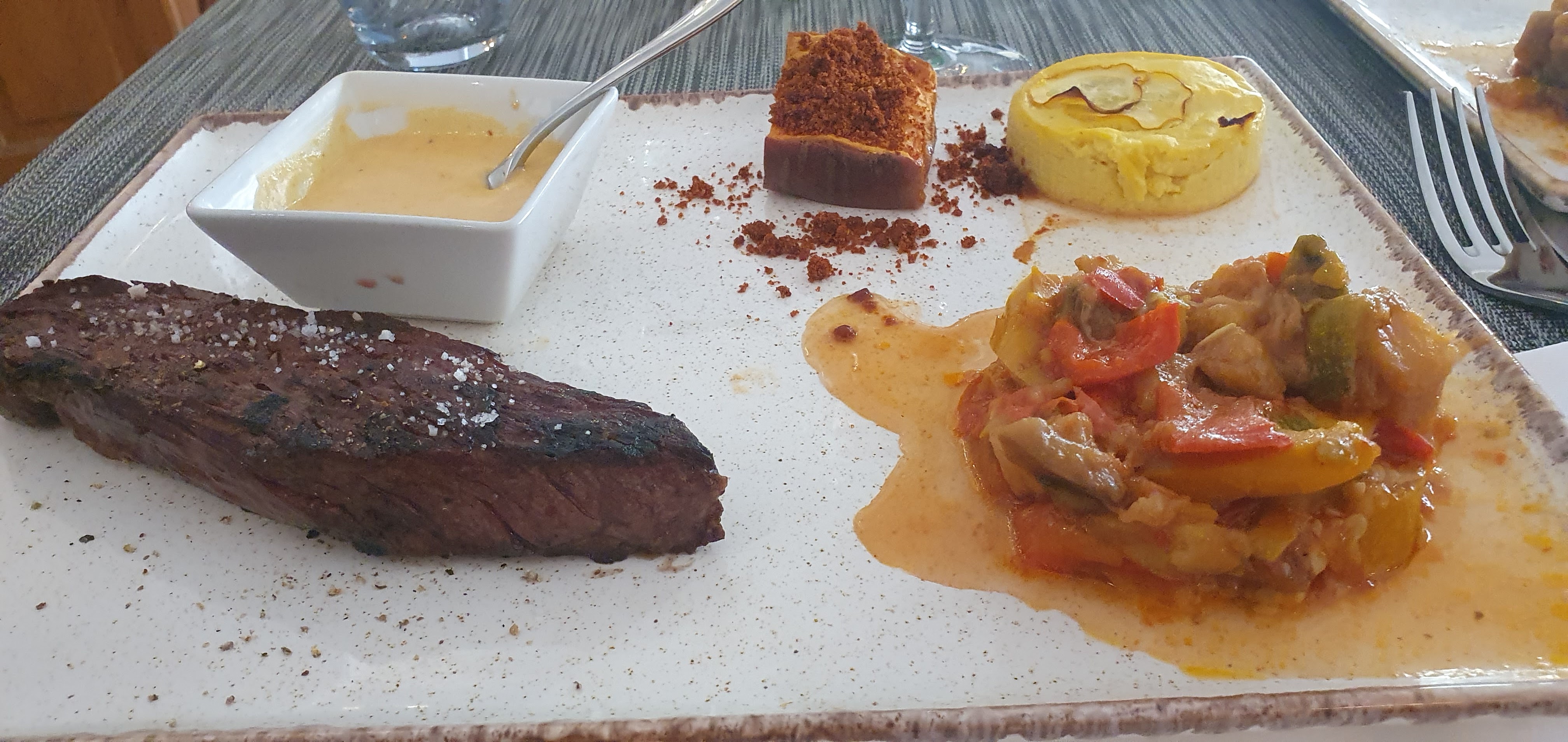 .Tout est réuni pour passez un bon moment que ce soit au niveau de l’accueil ( responsable du restaurant et serveur très professionnel et souriant) , la décoration très sympa , les plats servis : la viande et les légumes de saison un régal . Je vous recommande vivement ce restaurant .