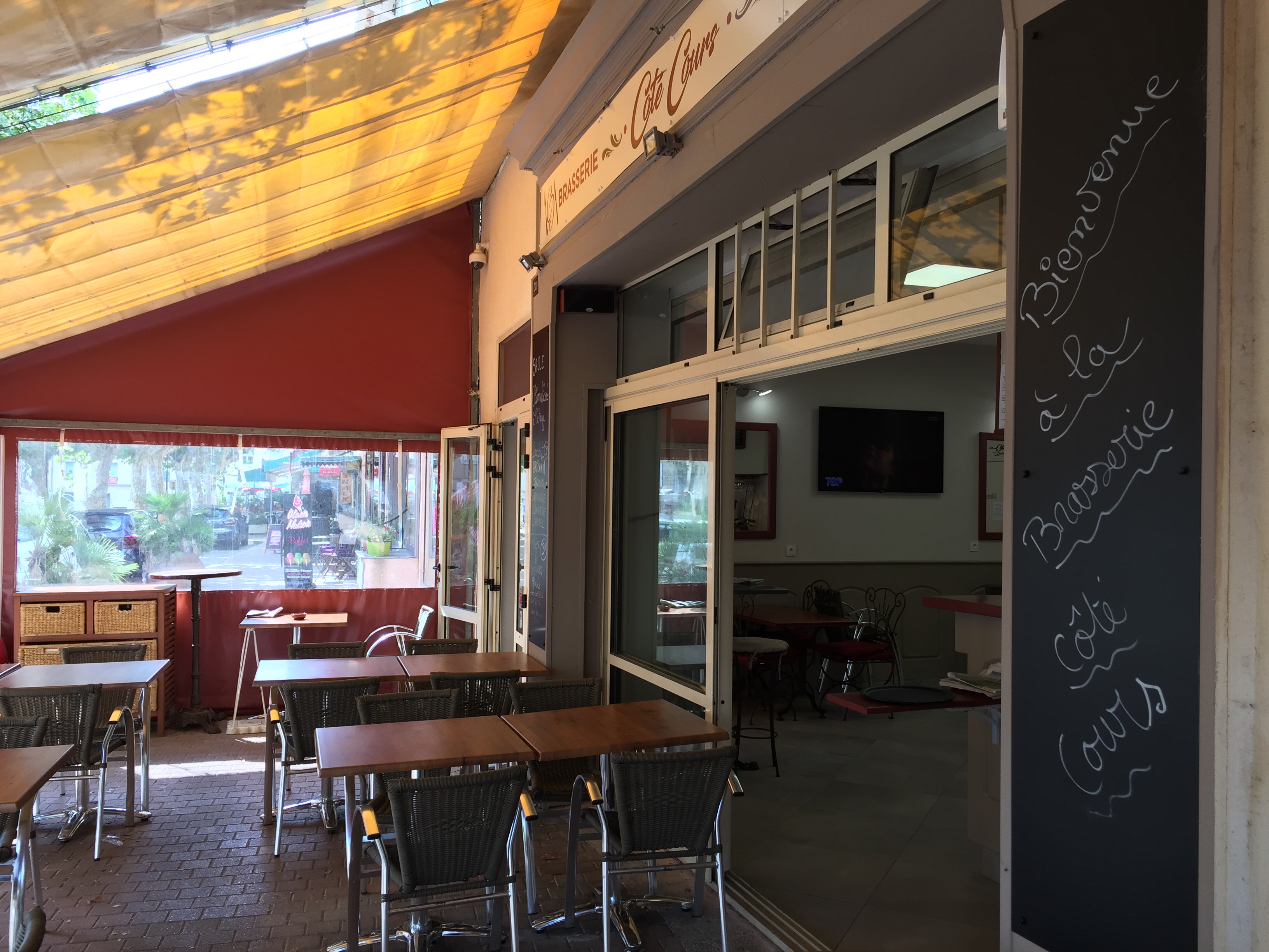 Brasserie sympathique, accueille agréable, Tout est fait maison, terrasse extérieure, salle côté bar et une salle à l'étage. Sur la place du village à l'ombre des platanes, je recommande les yeux fermés.