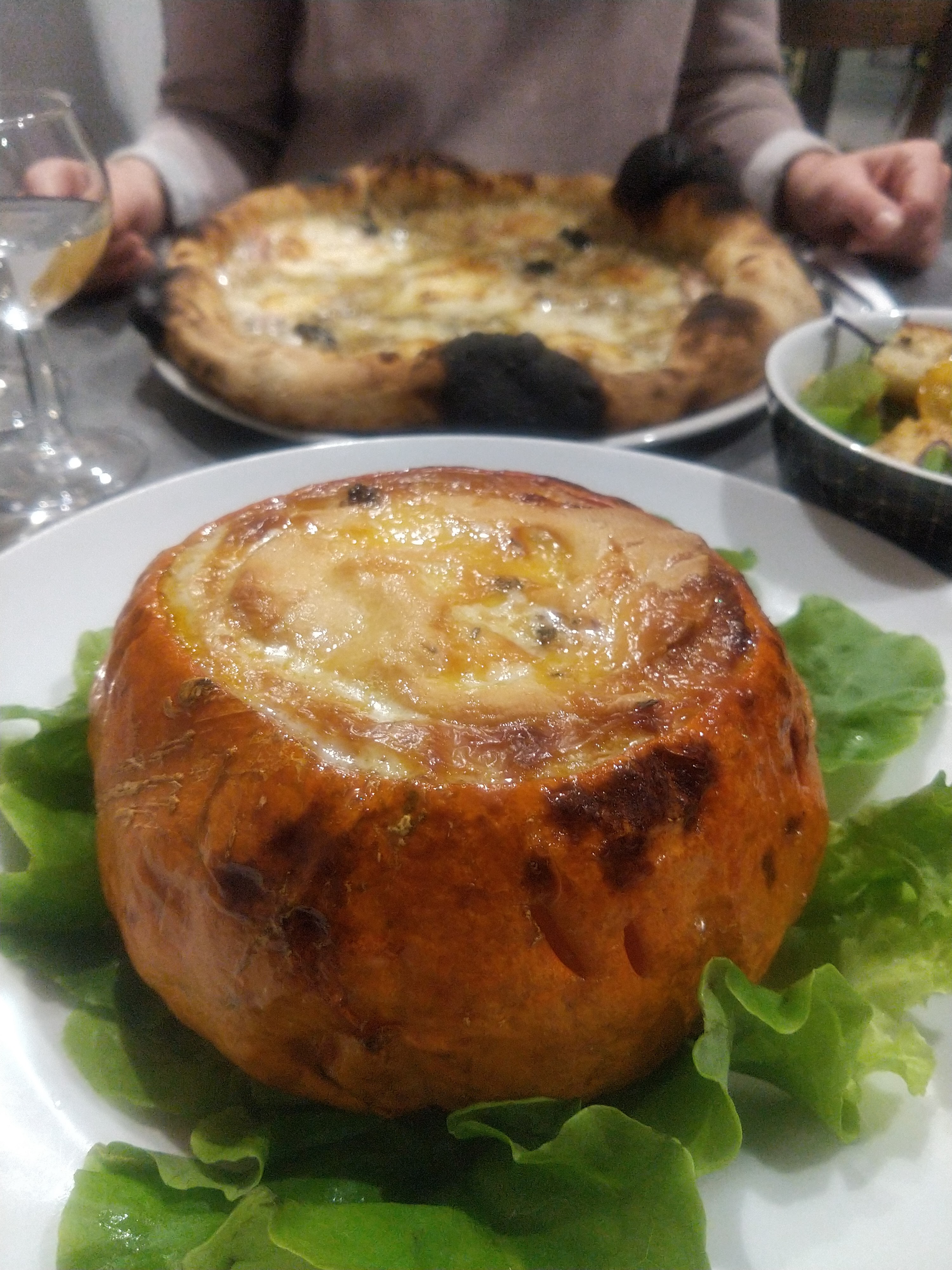 Pizza excellente et plats (farci et travers de porc) bien cuisinés